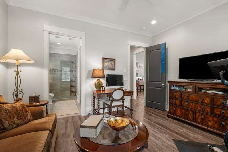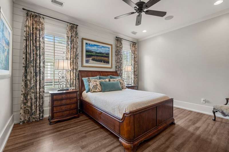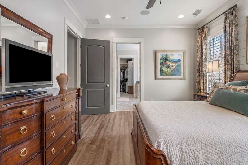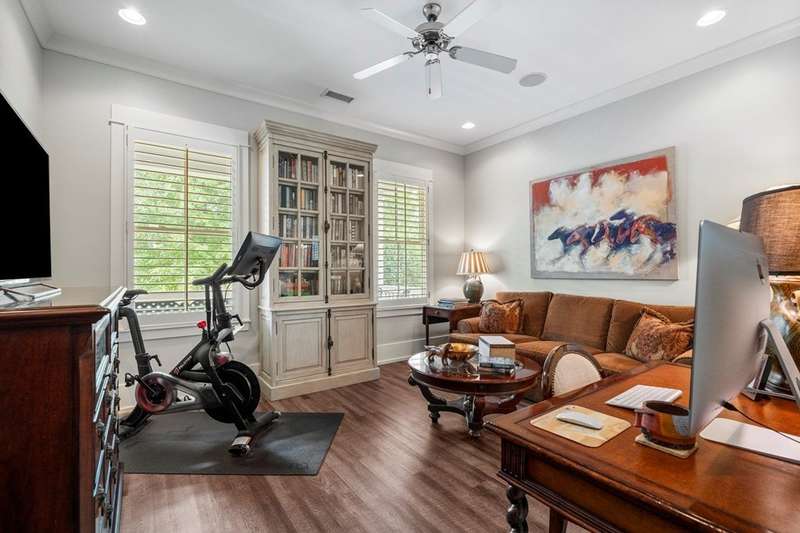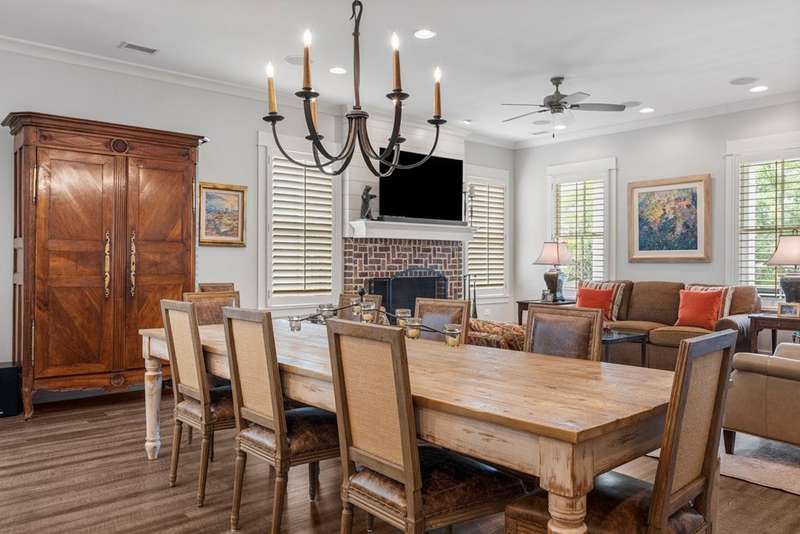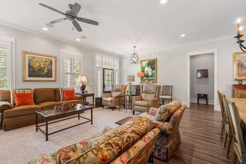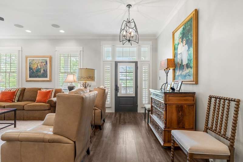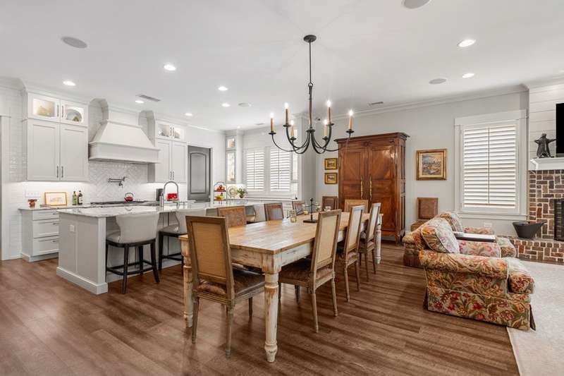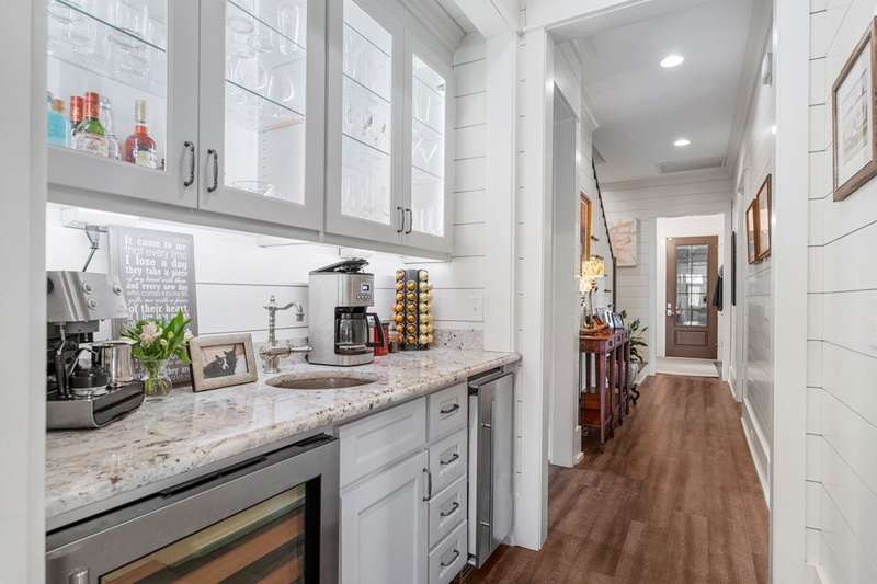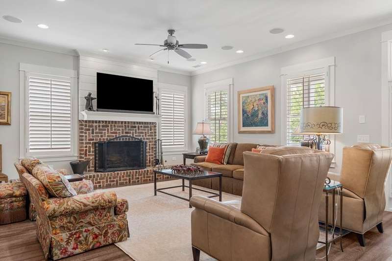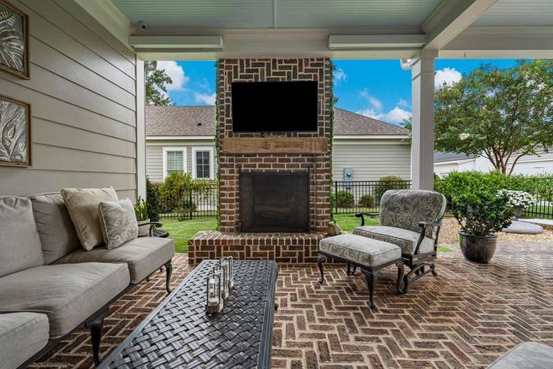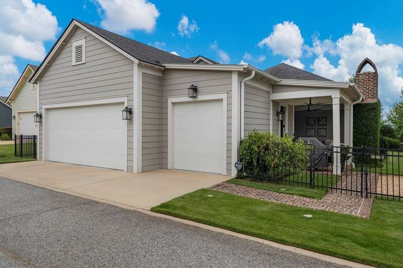 Discover the perfect blend of casual Southern charm and contemporary sophistication in this stunning 2016 custom home, meticulously crafted by a premier builder as his personal residence. This remarkable property showcases fine workmanship throughout, enhanced with an abundance of thoughtful updates & premium amenities. The heart of this home features a magnificent open floor plan anchored by a gourmet kitchen that will inspire your culinary creativity. An abundance of custom cabinetry provides exceptional storage, while elegant lighted glass-front cabinets, a well-appointed pantry, & high-end appliances ensure both beauty & functionality. The oversized island with breakfast bar creates the perfect gathering spot, seamlessly connecting to the spacious great room where soaring ceilings & a welcoming fireplace create an atmosphere of warmth.Floor-to-ceiling windows bathe every room in natural light, highlighting the home's architectural beauty. The thoughtfully designed wet bar adds an entertaining element perfect for hosting friends & family.The primary bedroom offers a true sanctuary, featuring a fabulous oversized custom closet that rivals high-end boutiques & a luxurious bathroom designed for relaxation. Three additional well-appointed bedrooms on the main level provide comfort & privacy for family and guests. A remarkable bonus awaits in the very large climatized attic space, already plumbed for future expansion, offering endless possibilities for customization to suit your lifestyle needs. Step onto the charming front porch, newly remodeled with beautiful composite planking, perfect for morning coffee or evening conversations. The rear of the home features a cozy outdoor patio with fireplace, privately tucked away to create your own personal oasis for year-round enjoyment.The 2.5-car garage maximizes functionality with an impressive array of built-in cabinets, demonstrating the same attention to detail & smart use of space found throughout this exceptional home.
