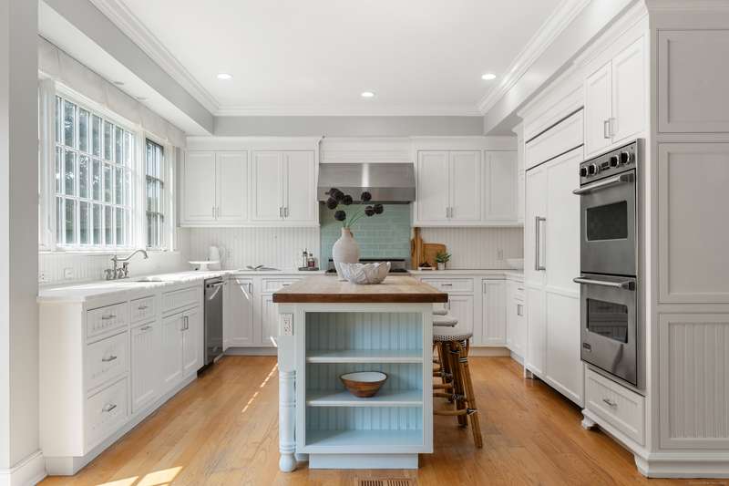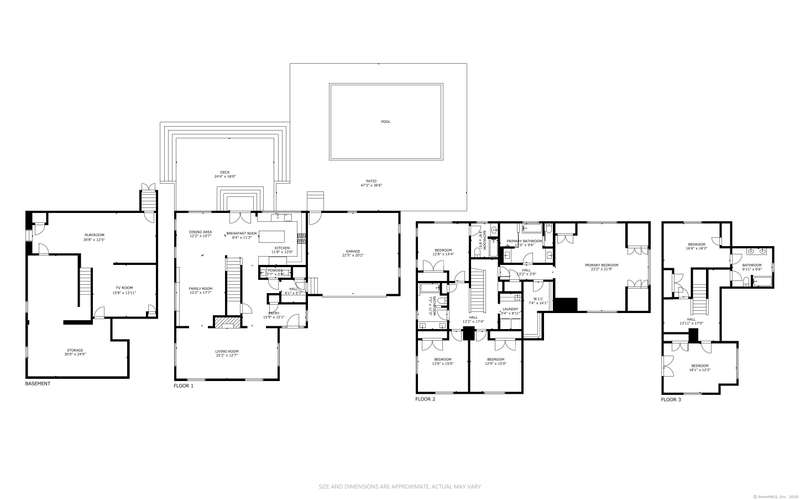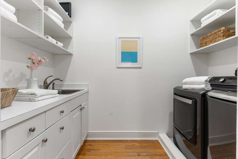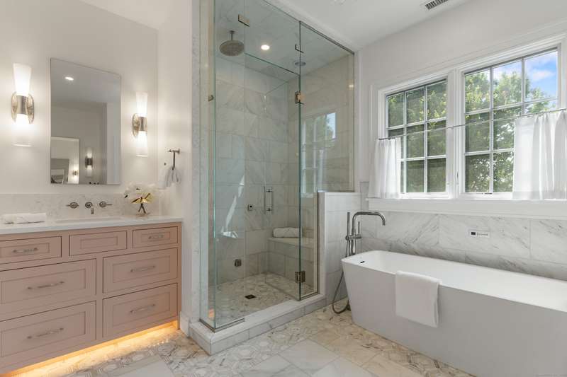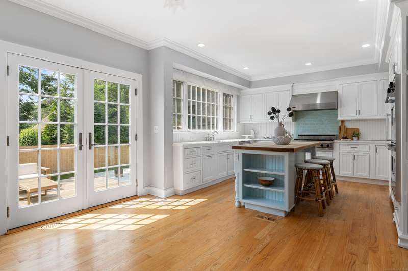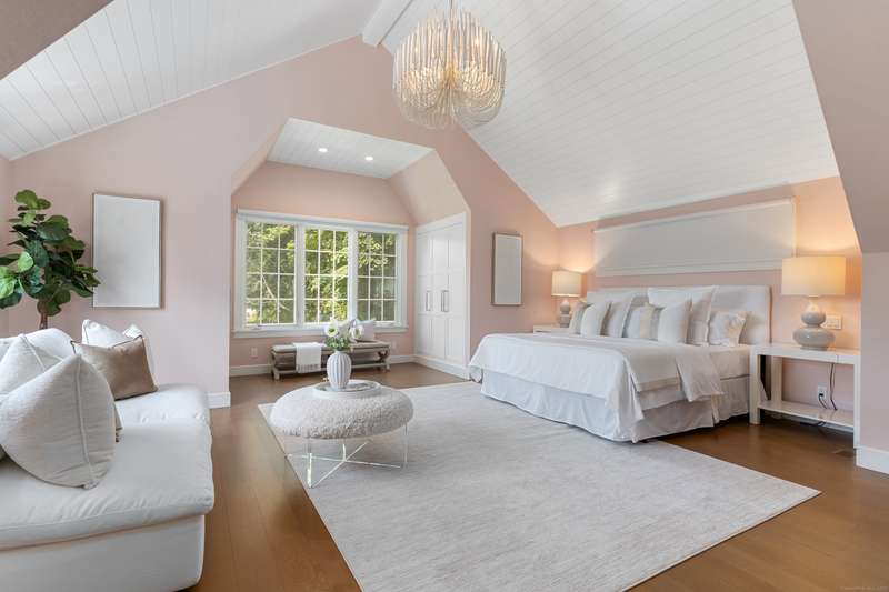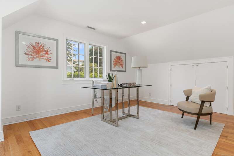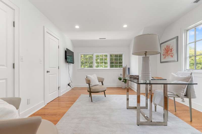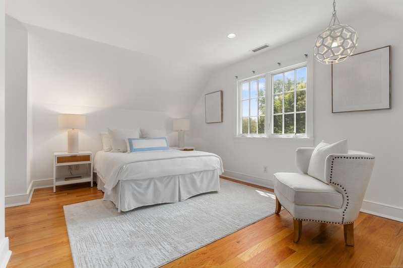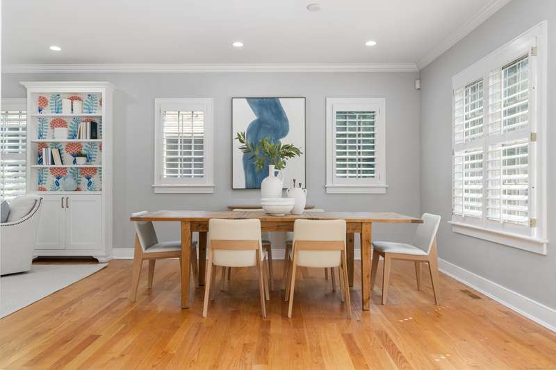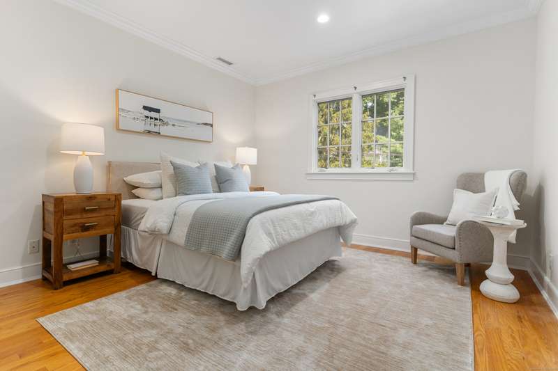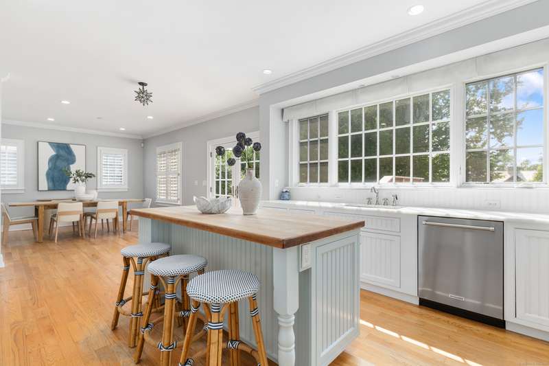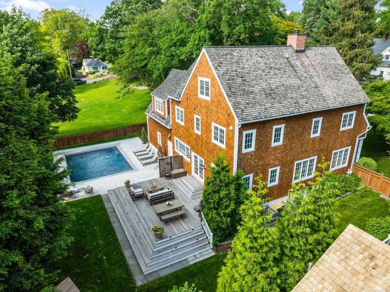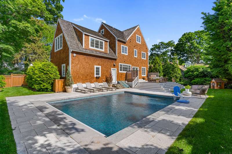 This is the one you've been waiting for in Rowayton! Walk to town with sea breezes guiding the way. Freshly painted and professionally staged, this sun-filled Colonial with many updates and in-ground pool is perfect for those who want extra room for friends and family, but offers a cozy feel when it's 'just you'! The open-concept kitchen and spacious dining area overlook the private backyard and pool, with French doors opening to lushly landscaped grounds-perfect for indoor-outdoor living. The main level features a generous living room with fireplace and an inviting sitting room with desk area, plus ample mudroom. Upstairs, the second floor offers four large bedrooms, including a fully renovated primary suite with vaulted ceilings, large walk-in closet, and a luxurious spa-like bath. All bathrooms have been updated, and two additional bedrooms are ensuite. The third floor provides a fifth bedroom with beautiful full bath, and office. The finished basement includes a bright playroom wit