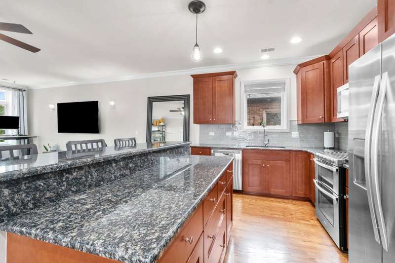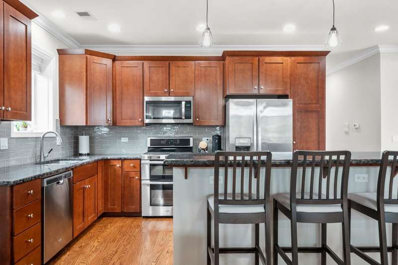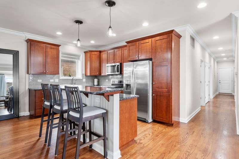 MULTIPLE OFFERS RECEIVED: Welcome to this expansive 3bed/2bath home in a solid all-brick building. High ceilings and abundant natural light highlight the open layout, which features a generous living and entertaining area with a separate dining space - perfect for gatherings. The huge kitchen is equipped with granite countertops, stainless steel appliances, and plenty of storage. The primary en suite offers a true retreat with a double vanity, separate shower, and soaking tub. Additional highlights include a hardwood floors, crown molding, full size side-by-side washer and dryer, large private deck, and one garage parking space included. With low monthly assessments and an unbeatable location near the Jefferson Park CTA and Metra stations, parks, dining, and more, this condo is the perfect combination of space, style, and convenience.