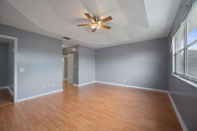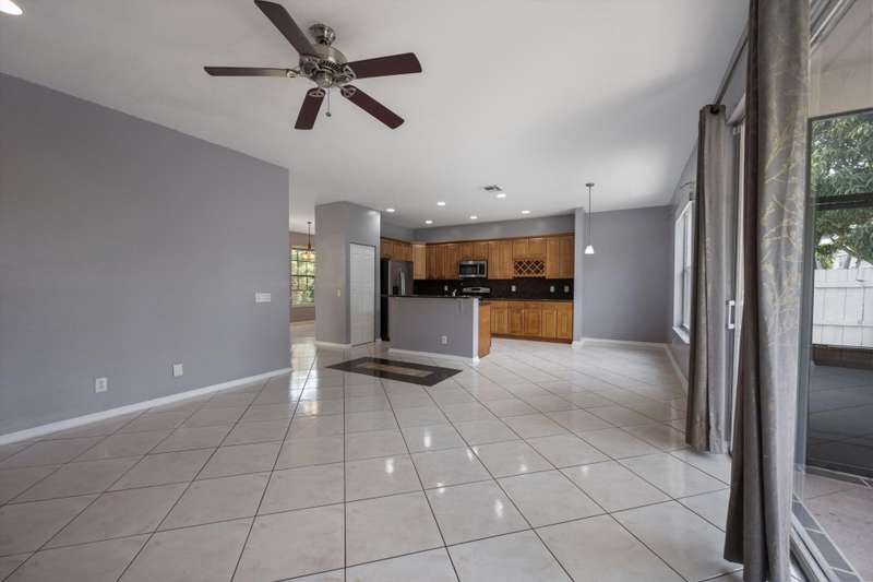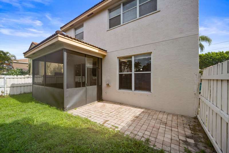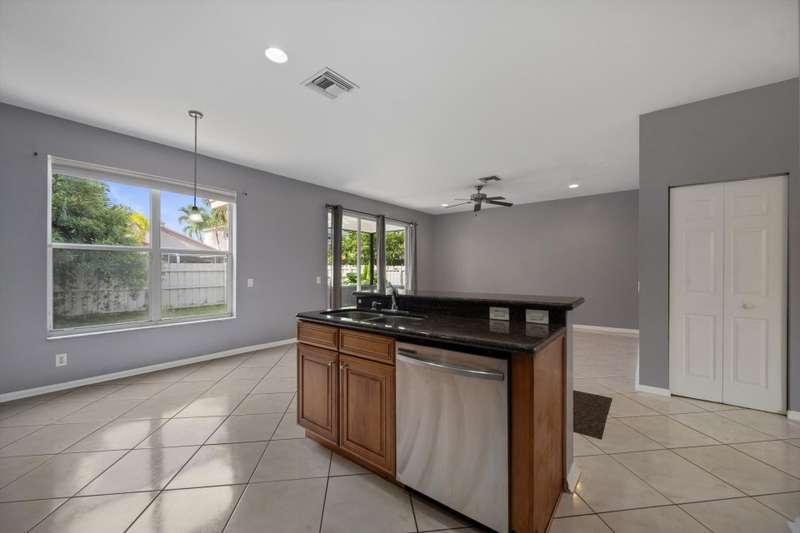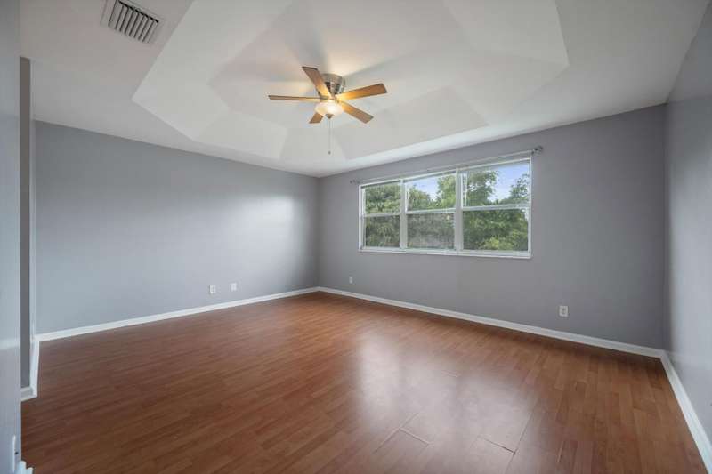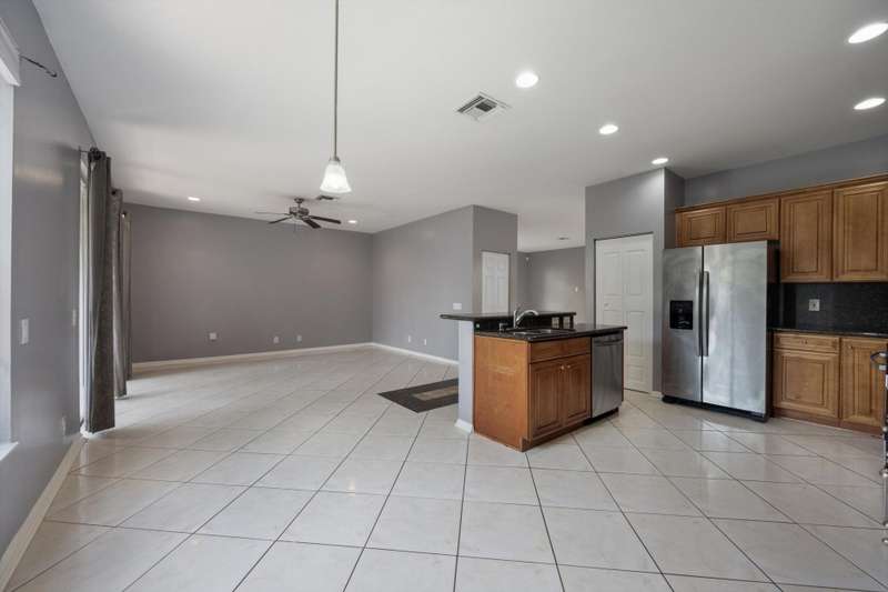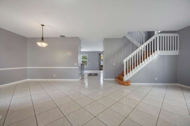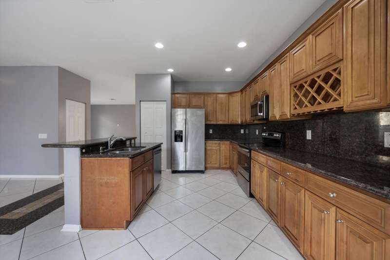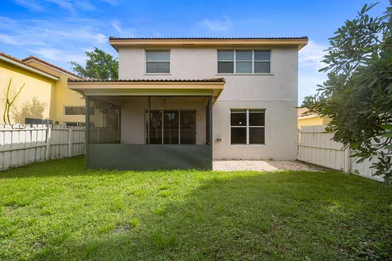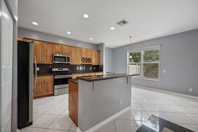 Discover this remarkable 4-bedroom, 2.5-bath residence designed with an inviting open floor plan and elegant neutral ceramic tile flooring throughout the main level. The expansive eat-in kitchen features stunning granite countertops and a functional island, effortlessly merging style with practicality. Step outside to enjoy a fully fenced yard and a screened patio, perfect for outdoor relaxation.Upstairs, youll find beautiful bamboo flooring throughout, including a luxurious master suite that boasts a spacious bathroom equipped with a Roman tub and dual walk-in closets. This home also includes a cozy living room, a formal dining area, and a family room, along with a convenient two-car garage, all without any carpet!