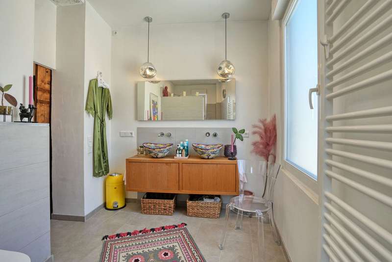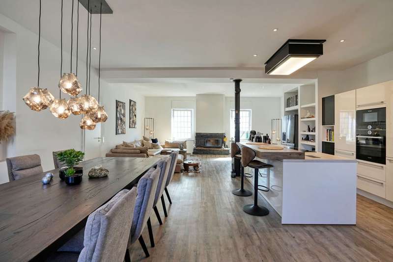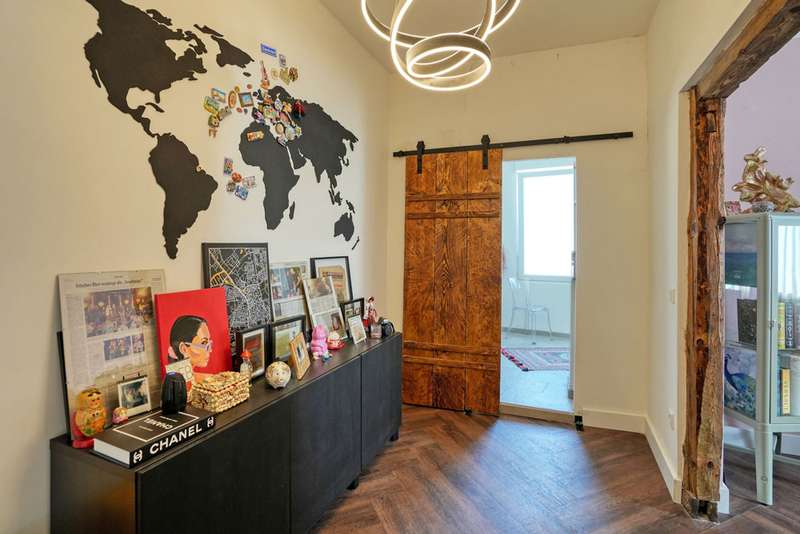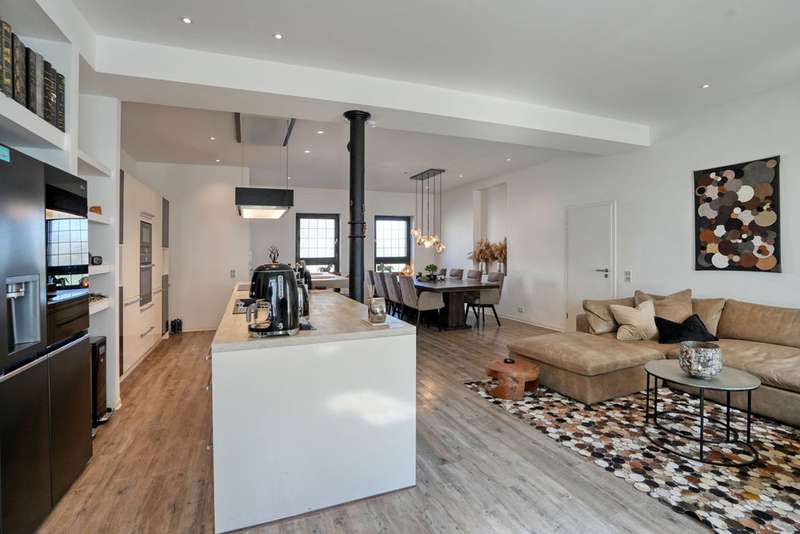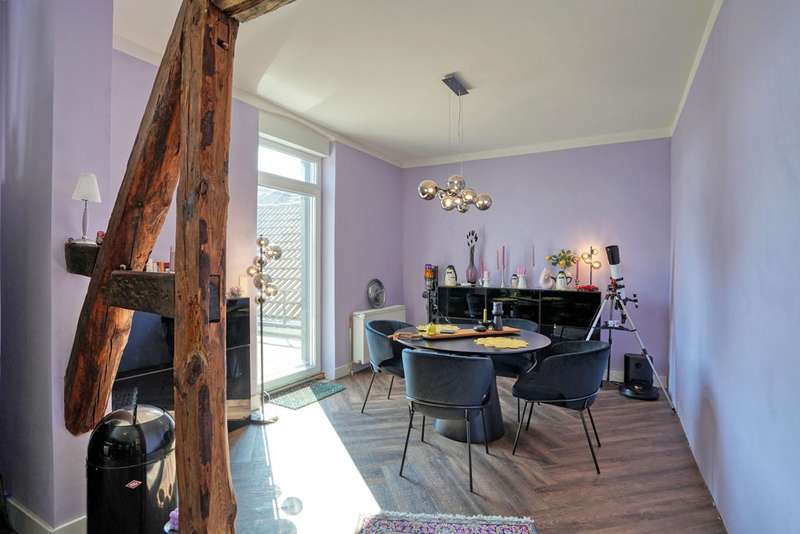 This attractive multi-family house was built around 1907 in solid construction. It contains three apartments and has a full basement. It was extensively renovated by 2024. The apartment on the first floor was created by converting a former restaurant. It has a loft-like layout and a room height of approx. 3.20 meters. Living, eating and cooking take place in a room measuring approx. 60 m². During the redesign, great importance was attached to preserving the character of the room, which radiates great hospitality. A cast-iron pillar in the area of the high-quality kitchen has been retained, as have the classic windows, some of which are fitted with stained glass. The living area is grouped around the large fireplace. The private area with bedroom and dressing room adjoins this room. From there, there is access to the terrace behind the house. The bright bathroom is equipped with a floor-level shower area. There is also a separate study on the first floor, which is accessible from the hallway. The apartment on the upper floor has a significantly different characteristic. With a room height of approx. 2.75 meters, the functions of the rooms are more clearly separated. The apartment has a special charm, particularly because the half-timbering has been left exposed in parts of the interior walls. The living area is generously proportioned. From the dining area, which adjoins the cooking area, there is access to a large south-facing roof terrace. A bedroom and children's room or study complete the room program. The bathroom in this apartment is also equipped with a floor-level shower area. The attractively laid out apartment on the top floor is creatively designed. The small bathroom is equipped with a shower.