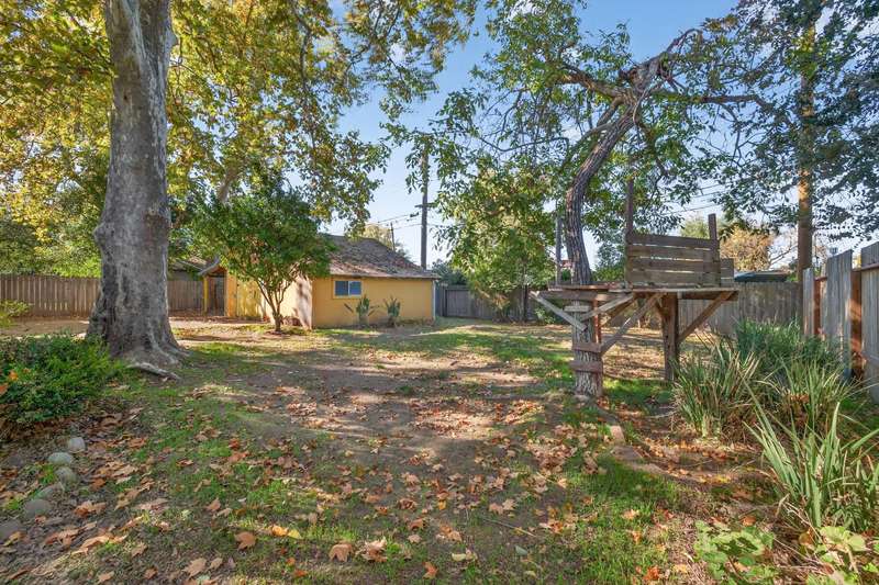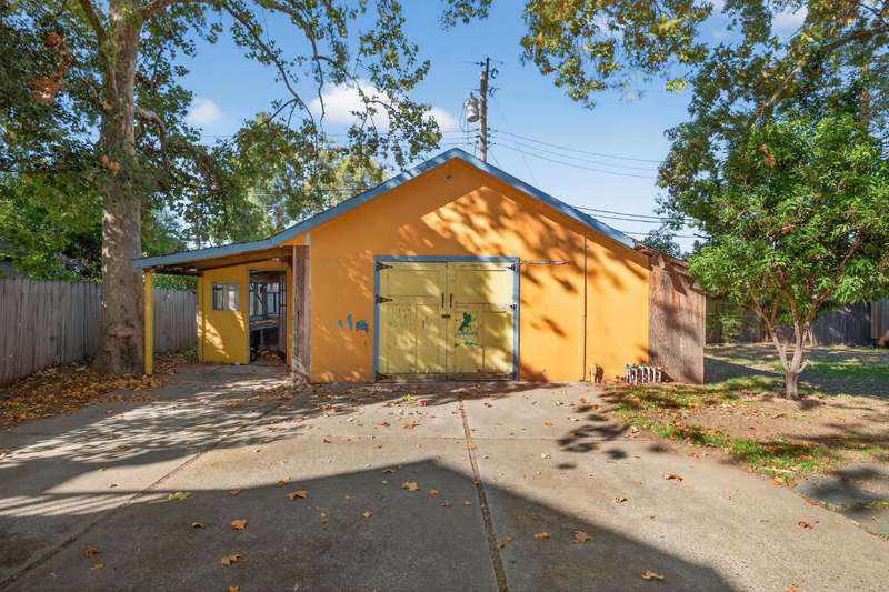 Full of warmth, character, and potential, this 1925 cottage - likely one of the original homes in the neighborhood - rests on a tree-studded 0.28-acre lot near American River College. Step inside to a spacious living room with a cast-iron fireplace, built-in bookshelves, vintage wallpaper, and skylights that fill the space with light and charm. The home offers two comfortable bedrooms and two full baths, including a private ensuite in the primary. The hall bath features a classic clawfoot tub and a small standing shower that's ready for a refresh. The light-filled kitchen and dining area create a welcoming space for gathering, opening to a large patio perfect for hosting get-togethers or enjoying a relaxing evening under the trees. The detached garage structure needs repair, but with updated electrical - including a 220-volt outlet - it's easy to imagine as a creative workshop, studio, or even explore options for a future ADU (buyer to verify). With a newer roof, updated windows, upgraded 200-amp panel, indoor laundry, and central A/C, this home blends modern function with nostalgic charm. Whether you embrace its quirky details or reimagine them in your own style, this property offers a rare mix of history, personality, and potential.