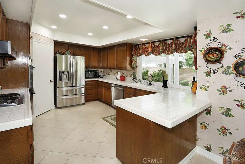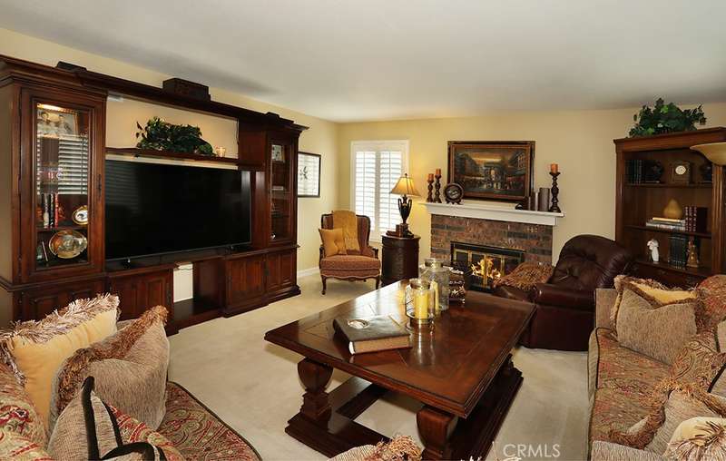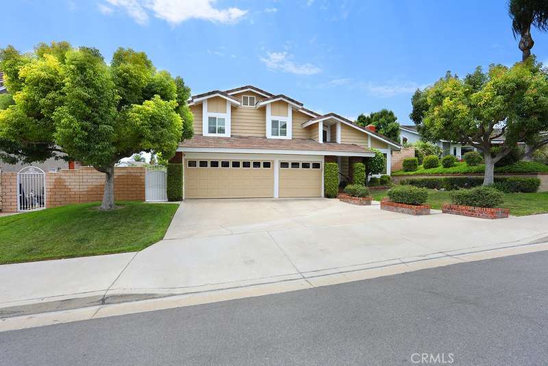 Welcome to this beautifully appointed 4 bedroom 3 bathroom home primely situated in the heart of Yorba Linda. Spanning 2,484 sq. ft. on a generous 8,100 sq. ft. lot, this property offers a perfect blend of comfort combined with traditional elegance. As you enter, you're greeted by a spacious formal living room featuring vaulted beamed ceilings, custom etched windows and a cozy fireplace with custom mantel which seamlessly flows into the formal dining room. The charming kitchen is pristinely maintained with rich wood cabinetry, sparkling white tile counters, stainless steel dishwasher and refrigerator, recessed lighting, a walk in pantry and a delightful eat in kitchen area which overlooks the private backyard. Down a few steps you'll find a separate family room with fire place, wet bar and patio slider with backyard access. There is also a spacious downstairs bedroom and a full bath, perfect for guests or multi-generational living as well as an interior laundry room with additional storage. Head upstairs and discover the enviable primary suite with vaulted ceilings, dual closets, and a bright and luxurious bathroom with an oversized soaking tub, walk-in shower, and dual vanities. Two additional bedrooms share a secondary bathroom equipped with dual sinks. Step outside to your private backyard with ample space for entertaining! There is a large grassy area, a built in BBQ, lush landscape and plenty of room to dine al fresco under the a new patio cover. Completing the exterior is a spacious side yard with RV potential. Additional improvements include newer exterior paint, upgraded windows throughout, plantation shutters, custom baseboards, newer air conditioning, heating, and water heater. This home is zoned for prestigious award winning schools, and is conveniently located near shops, entertainment, and easy access to the 91 and 241 freeways. Don't miss this incredible opportunity to own a remarkable home in the land of gracious living!