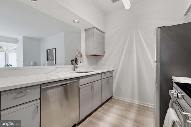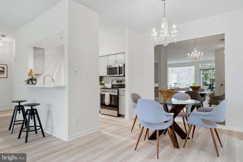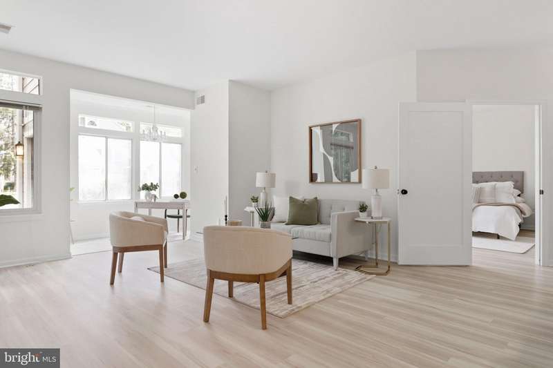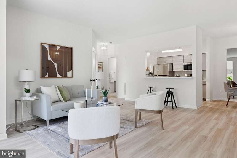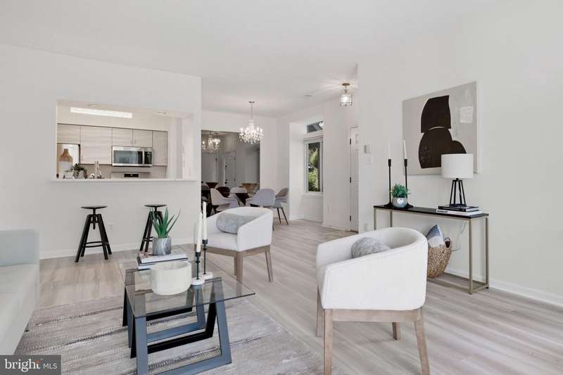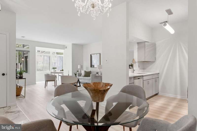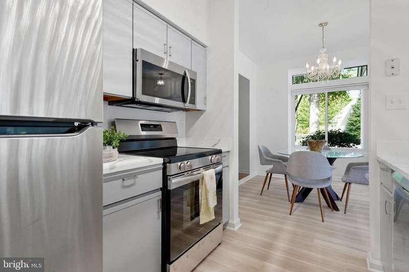 Location! Location! Location! Rarely available villa-style one bedroom plus DEN condo featuring soaring ceilings and a bright, open layout. This beautifully updated home offers brand-new LVP flooring, fresh designer paint, and a fully remodeled kitchen with new stainless-steel appliances and Quartz counters. The bathroom has been tastefully renovated with contemporary finishes and fixtures with clothes washer and dryer in unit. Enjoy the flexibility of a spacious den-perfect for a home office, guest space, or reading nook. Parking is conveniently located directly in front of the unit for easy access. Located in a sought-after community with a sparkling neighborhood pool and plenty of green space, just 0.25 miles to shopping, grocery stores, and restaurants in Fairfax Town Center. The perfect blend of comfort, convenience, and style-move-in ready and waiting for its new owner!