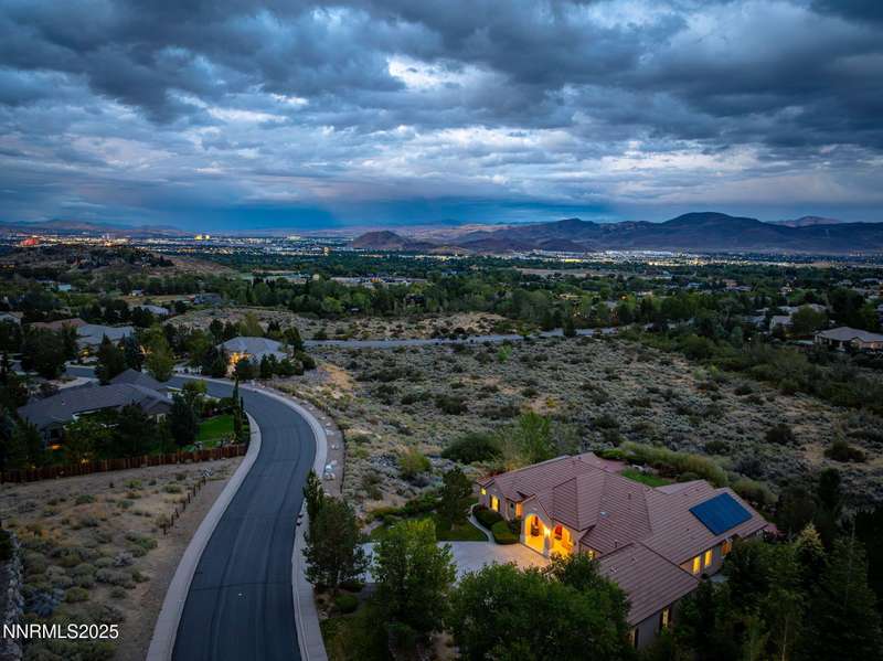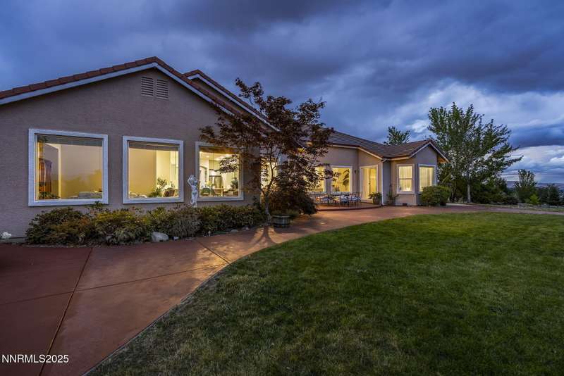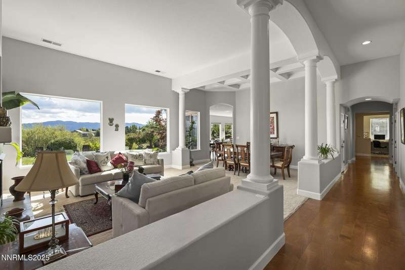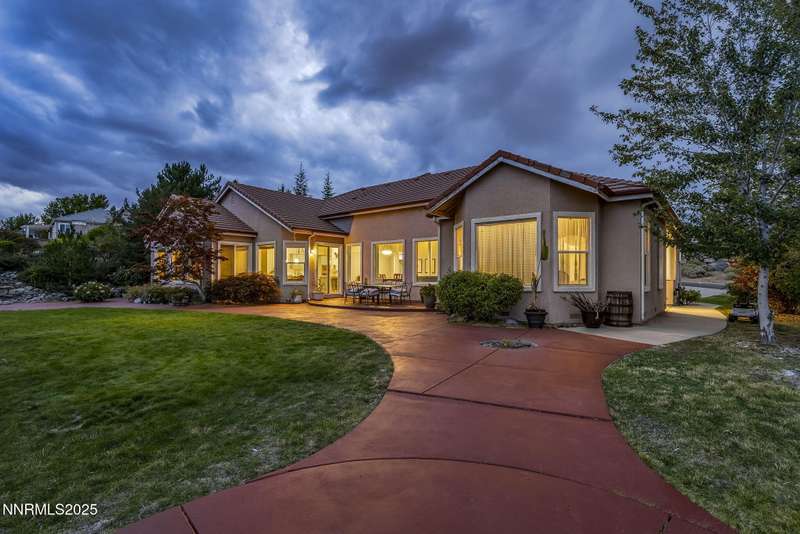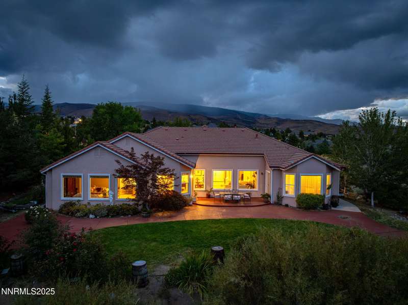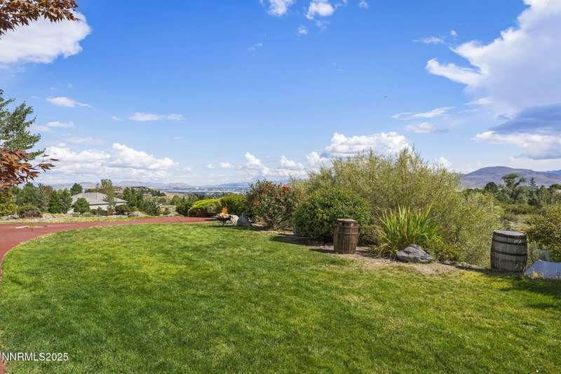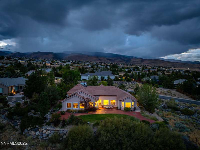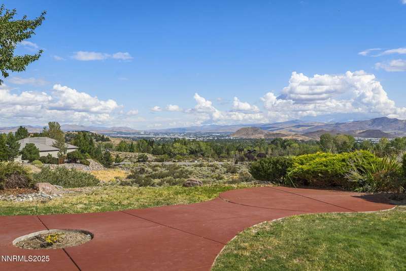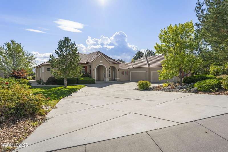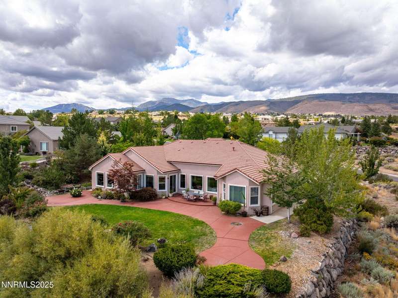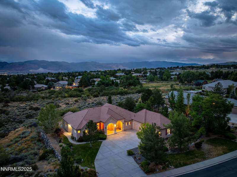 Experience elevated living in this elegant single-story home perched in the desirable Southwest Reno foothills in the prestigious community of Southwest Vistas. Perfectly situated on a spacious lot, this property offers unobstructed panoramic views of the surrounding mountains, valleys, and sweeping Nevada skies—creating a serene backdrop for everyday life. Close to top rated schools, major shopping and quick access to Mt. Rose. From the moment you arrive, the circular driveway and stately covered entry welcome you inside to soaring ceilings, architectural columns, and a bright, open floor plan designed for both comfort and style. The formal living area features expansive windows framing breathtaking vistas, a cozy gas fireplace, and an effortless flow into the dining space—ideal for hosting gatherings or enjoying quiet evenings in. The open kitchen is both functional and inviting, with a center island breakfast bar, abundant cabinetry, double ovens, and a walk-in pantry. It seamlessly connects to casual dining and family spaces, making it the heart of the home. Retreat to the luxurious primary suite, where picture windows capture the views and the spa-like bath features a soaking tub framed by columns, dual vanities, and a generous walk-in closet. Additional bedrooms are spacious and private, perfect for family, guests, or a home office. Step outside to your own slice of Nevada beauty. Expansive patios and walking paths meander through mature landscaping and natural rock features, offering multiple spaces to relax, entertain, or simply take in the fresh mountain air. Whether you're sipping morning coffee while watching the sunrise or hosting sunset dinners, the views will never disappoint. Located in a tranquil, established neighborhood with easy access to hiking trails, golf, shopping, dining, and top-rated schools, this home blends privacy, comfort, and convenience. With its timeless design, generous living spaces, and unmatched scenery, 5350 N Elk River Road is more than just a home—it's a lifestyle.