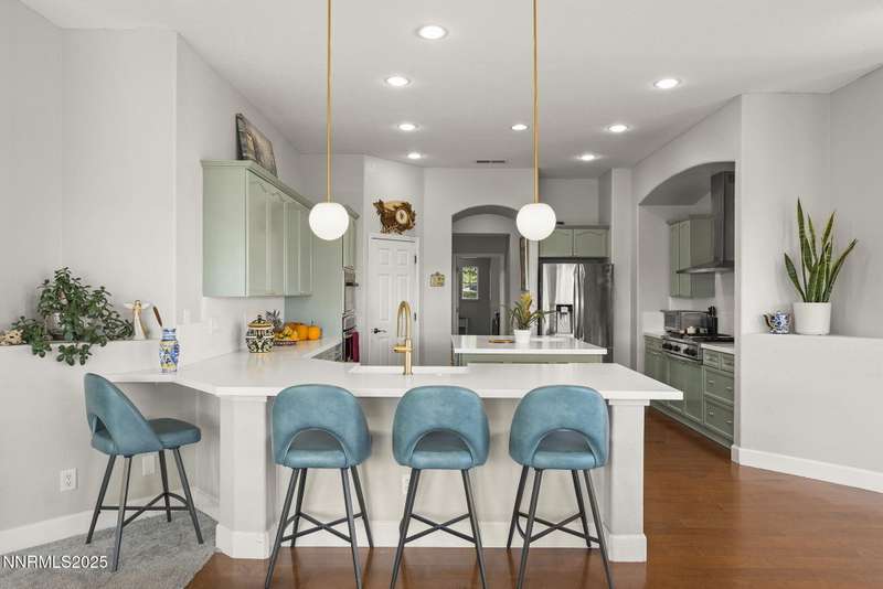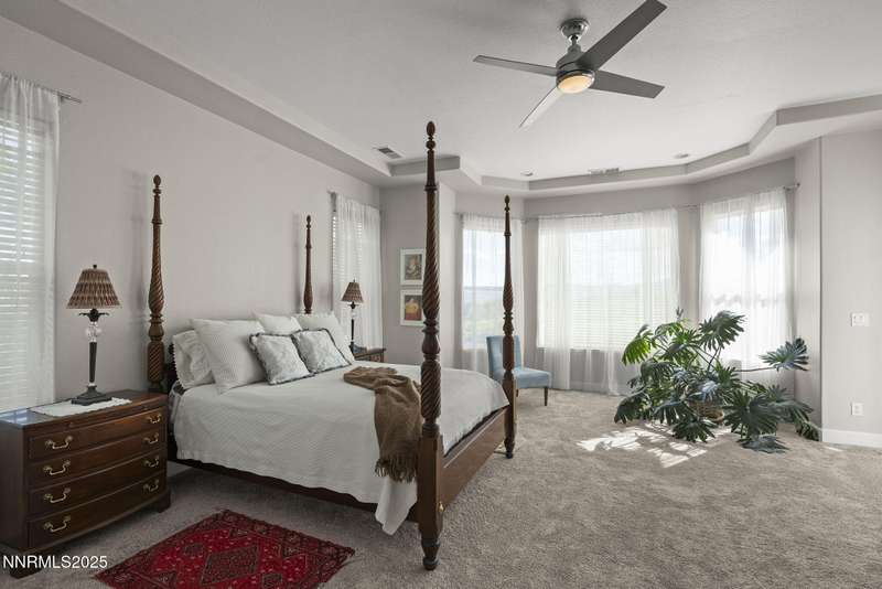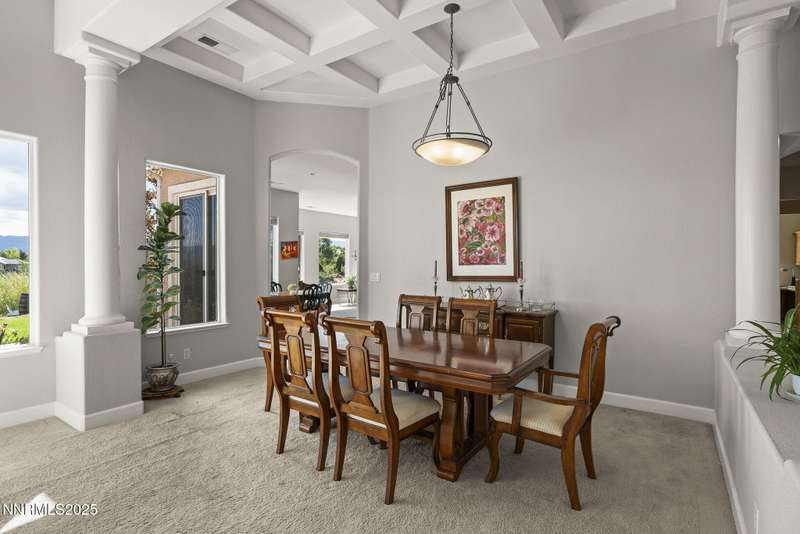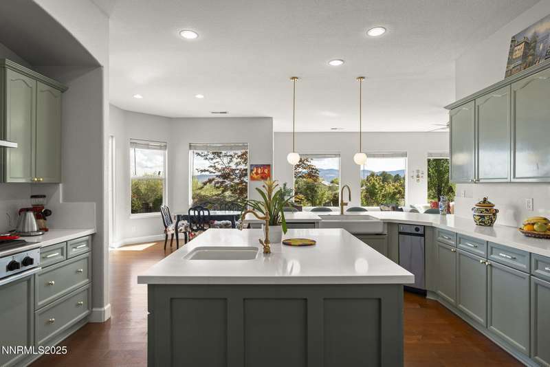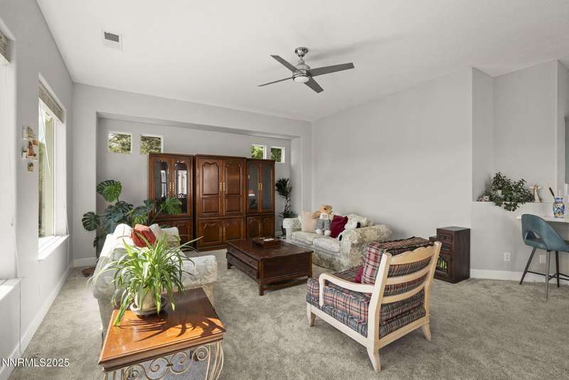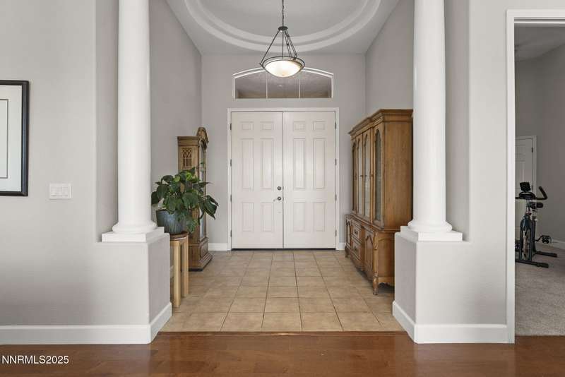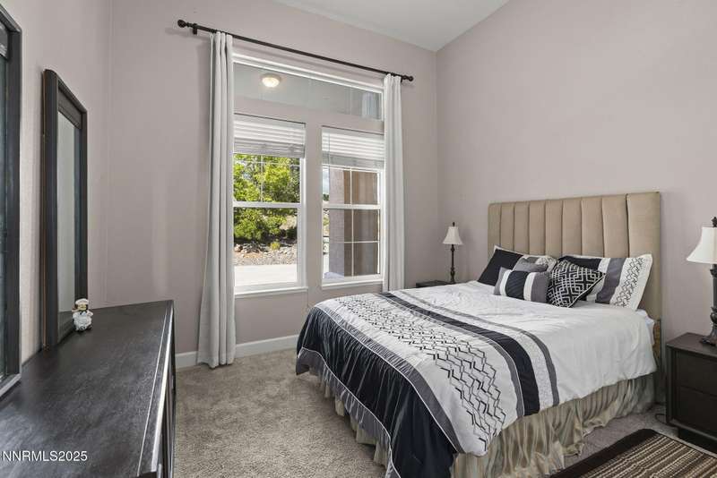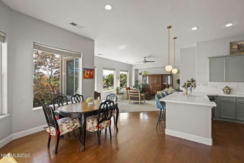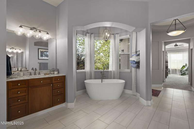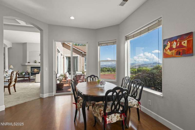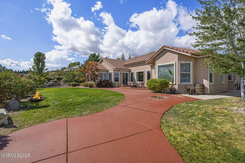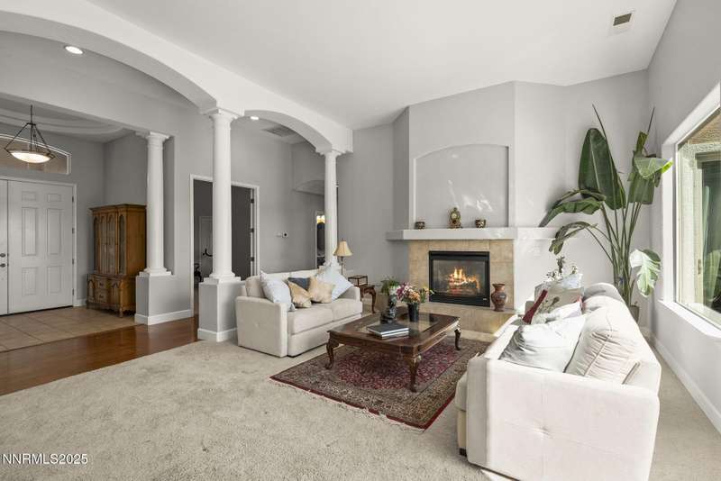 Experience elevated living in this elegant single-story home perched in the desirable Southwest Reno foothills in the prestigious community of Southwest Vistas. Perfectly situated on a spacious lot, this property offers unobstructed panoramic views of the surrounding mountains, valleys, and sweeping Nevada skies—creating a serene backdrop for everyday life. Close to top rated schools, major shopping and quick access to Mt. Rose. From the moment you arrive, the circular driveway and stately covered entry welcome you inside to soaring ceilings, architectural columns, and a bright, open floor plan designed for both comfort and style. The formal living area features expansive windows framing breathtaking vistas, a cozy gas fireplace, and an effortless flow into the dining space—ideal for hosting gatherings or enjoying quiet evenings in. The open kitchen is both functional and inviting, with a center island breakfast bar, abundant cabinetry, double ovens, and a walk-in pantry. It seamlessly connects to casual dining and family spaces, making it the heart of the home. Retreat to the luxurious primary suite, where picture windows capture the views and the spa-like bath features a soaking tub framed by columns, dual vanities, and a generous walk-in closet. Additional bedrooms are spacious and private, perfect for family, guests, or a home office. Step outside to your own slice of Nevada beauty. Expansive patios and walking paths meander through mature landscaping and natural rock features, offering multiple spaces to relax, entertain, or simply take in the fresh mountain air. Whether you're sipping morning coffee while watching the sunrise or hosting sunset dinners, the views will never disappoint. Located in a tranquil, established neighborhood with easy access to hiking trails, golf, shopping, dining, and top-rated schools, this home blends privacy, comfort, and convenience. With its timeless design, generous living spaces, and unmatched scenery, 5350 N Elk River Road is more than just a home—it's a lifestyle.