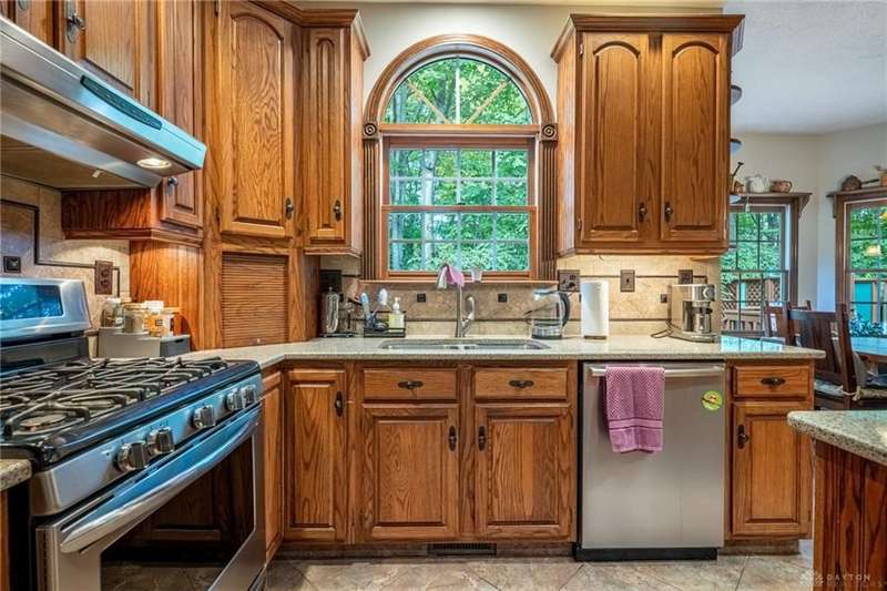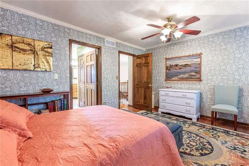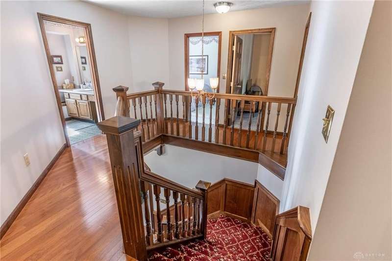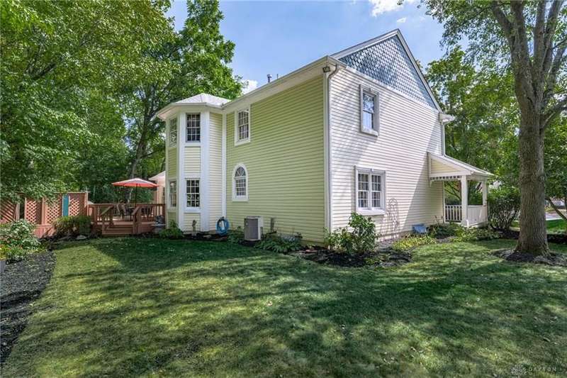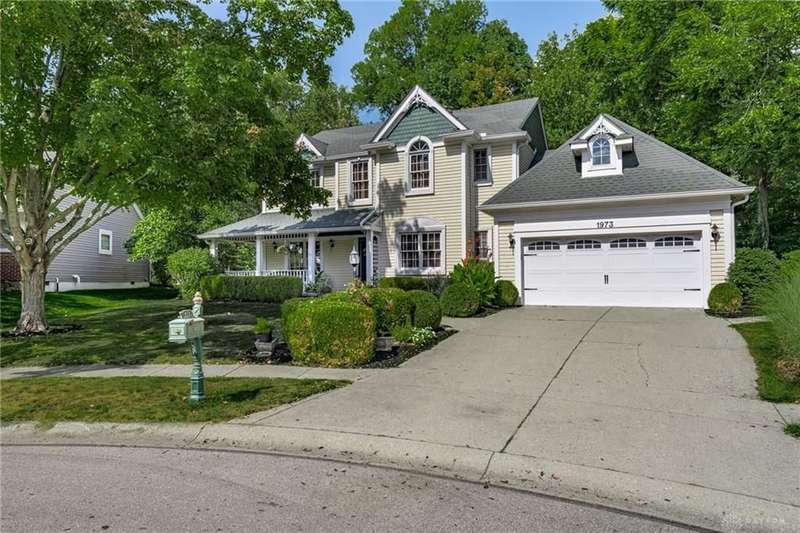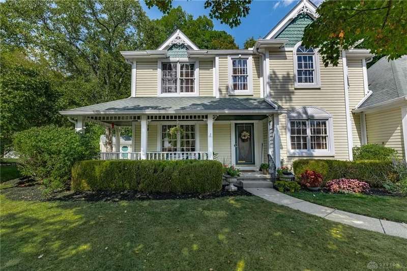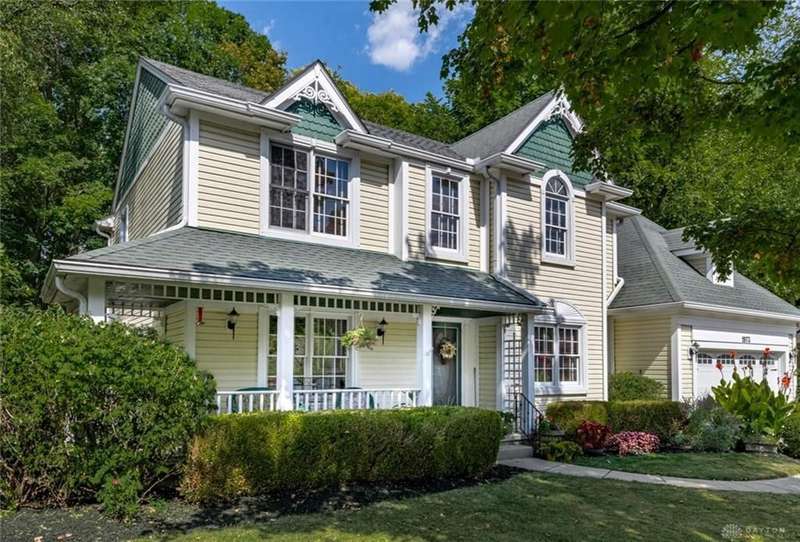Welcome to Your Forever Custom Home by Tom Peebles in Desirable Nestle Creek! Nestled on a quiet cul-de-sac, this beautifully maintained 4-bedroom, 2.5-bath Colonial offers timeless elegance, modern comfort, and serene privacy. With its inviting wrap around covered front porch and exquisite craftsmanship throughout, this home is a true gem in the heart of Centerville. Enter inside to discover extraordinary woodwork and a warm, welcoming floor plan. The main level features a versatile office with French doors for privacy, a formal living room with tray ceiling, an elegant dining room, a convenient laundry room and a powder bath. The spacious kitchen boasts 42-inch cabinets, a gas range, planning desk, island, and a large breakfast room. The open-concept family room is a showstopper complete with built-in bookcases, a gas fireplace, and a stunning antique mantle, creating the perfect space for relaxing or entertaining. Venture out onto the peaceful backyard deck (wired for hot tub), surrounded by mature trees, offering a tranquil escape for morning coffee or evening gatherings. Upstairs, the primary suite features a large walk-in closet & a spa-inspired ensuite bath with double vanities, a soaking tub, a tiled walk-in shower & linen closet. Three additional bedrooms share a full bath with a tub/shower combo. The landing provides views of the dramatic staircase adding to the home's unique charm. The unfinished basement offers endless potential for customization, with ample space for a recreation room, gym, or home theater plus a workshop area and bonus pantry space. Additional features include: Attached two-car garage, storage shed, abundant storage throughout, and a lush private back yard. Located just minutes from Miami Valley South Hospital, I-675, shopping, dining, award-winning Centerville Schools, and only 20 minutes to WPAFB, this home offers the perfect blend of peaceful living and everyday convenience. Don't miss your opportunity to own this special property!