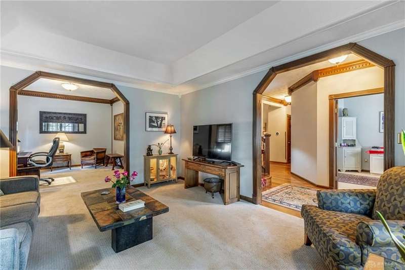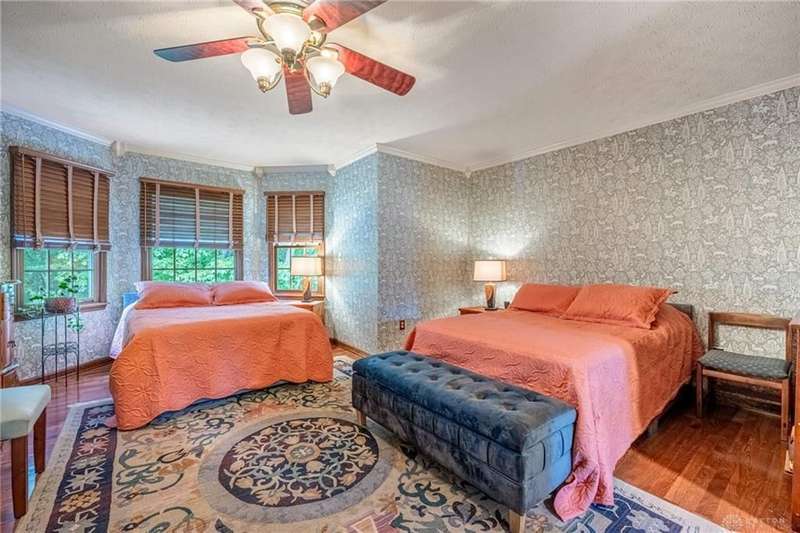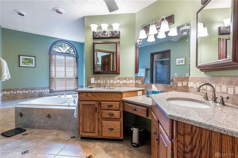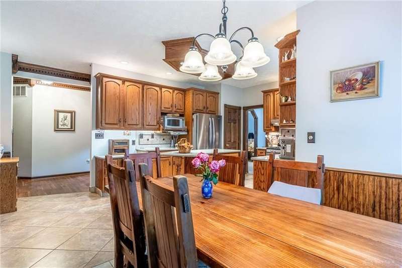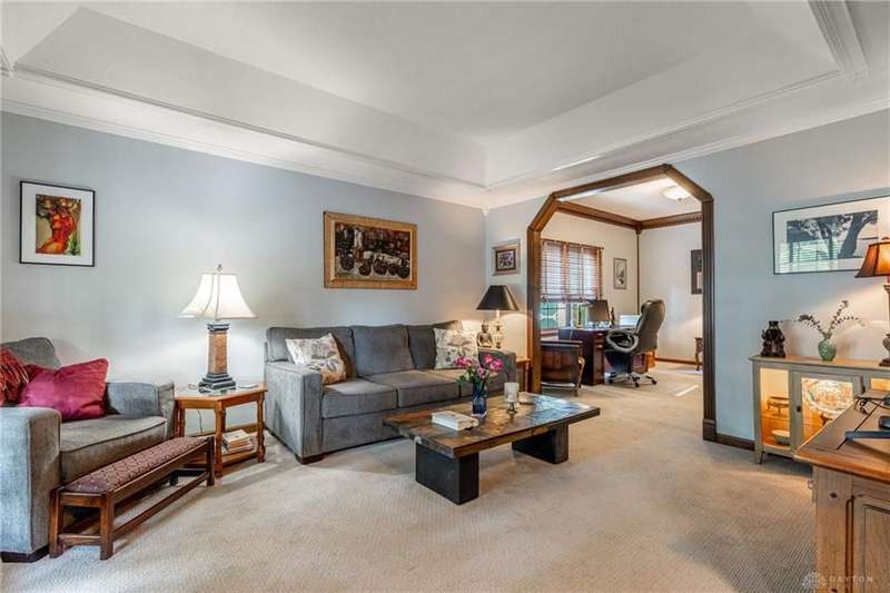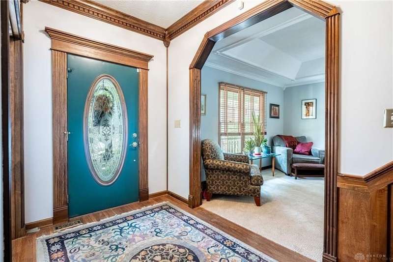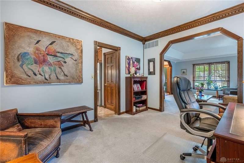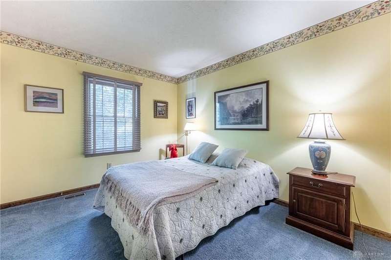 Welcome to Your Forever Custom Home by Tom Peebles in Desirable Nestle Creek! Nestled on a quiet cul-de-sac, this beautifully maintained 4-bedroom, 2.5-bath Colonial offers timeless elegance, modern comfort, and serene privacy. With its inviting wrap around covered front porch and exquisite craftsmanship throughout, this home is a true gem in the heart of Centerville. Enter inside to discover extraordinary woodwork and a warm, welcoming floor plan. The main level features a versatile office with French doors for privacy, a formal living room with tray ceiling, an elegant dining room, a convenient laundry room and a powder bath. The spacious kitchen boasts 42-inch cabinets, a gas range, planning desk, island, and a large breakfast room. The open-concept family room is a showstopper complete with built-in bookcases, a gas fireplace, and a stunning antique mantle, creating the perfect space for relaxing or entertaining. Venture out onto the peaceful backyard deck (wired for hot tub), surrounded by mature trees, offering a tranquil escape for morning coffee or evening gatherings. Upstairs, the primary suite features a large walk-in closet & a spa-inspired ensuite bath with double vanities, a soaking tub, a tiled walk-in shower & linen closet. Three additional bedrooms share a full bath with a tub/shower combo. The landing provides views of the dramatic staircase adding to the home's unique charm. The unfinished basement offers endless potential for customization, with ample space for a recreation room, gym, or home theater plus a workshop area and bonus pantry space. Additional features include: Attached two-car garage, storage shed, abundant storage throughout, and a lush private back yard. Located just minutes from Miami Valley South Hospital, I-675, shopping, dining, award-winning Centerville Schools, and only 20 minutes to WPAFB, this home offers the perfect blend of peaceful living and everyday convenience. Don't miss your opportunity to own this special property!