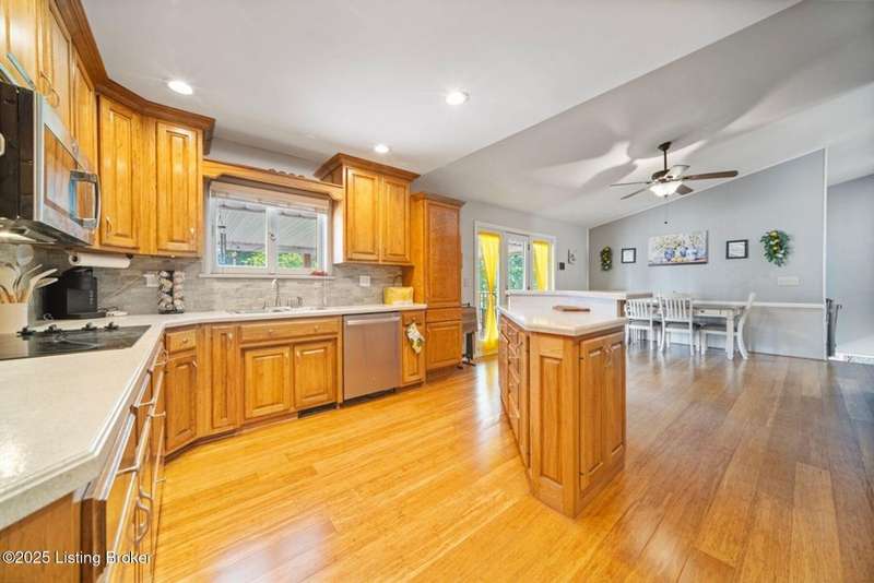 Welcome to 7510 Smyrna Road, a rare find offering not one, but two houses on a beautiful 3-acre lot. From the moment you drive up the long driveway, you'll be greeted by a wide front yard and peaceful surroundings. The main home features a bright, open living room with vaulted ceilings, a brick electric fireplace, and hardwood floors throughout the main level. The kitchen showcases a brick accent wall, matching stainless appliances, including a built-in double oven, refrigerator, and deep freezer- plus a spacious island and abundant storage. A large dining area leads to a large covered deck, perfect for relaxing or entertaining. Down the hall, you'll find the large primary bedroom with a private half bath, two more well spacious bedrooms, and a full bath. The finished walkout basement offers a second living area with a wood-burning fireplace, 4th bedroom (no egress), full bath, and a large flex room with kitchenette, laundry, and storage space. From here you can step outside to a beautiful paver stone patio. The main home also includes an oversized 2-car garage. The second home (carriage house/mother-in-law suite/ Airbnb) is ideal for guests, extended family, or rental income. It offers a living room, kitchen, bedroom, full bath, laundry area, and its own 2-car garage. Both homes are equipped with Generac generators(with warranty), and there's plenty of parking and open space to enjoy. The expansive backyard offers a separate shed for all of your lawncare needs. If you're looking a one of a kind oasis that is within minutes to the expressway and all of the amenities that you would need, this is the one! Properties like this- offering land, flexibility, and two full residences are a rare opportunity! Don't let this one pass you by! Schedule your showing today!