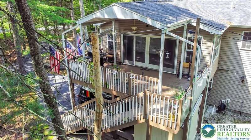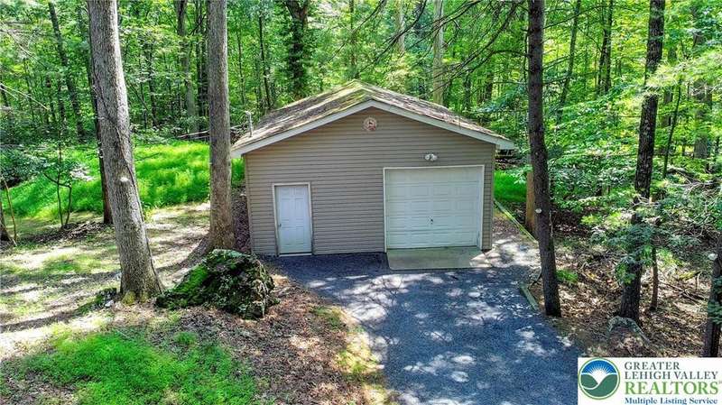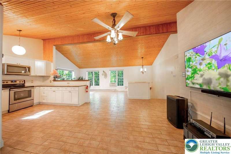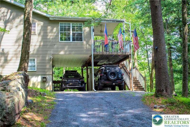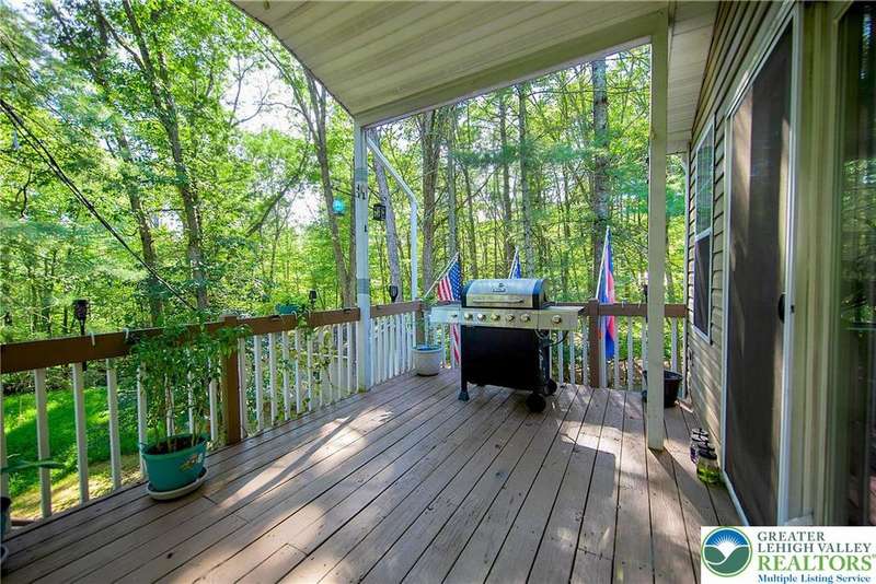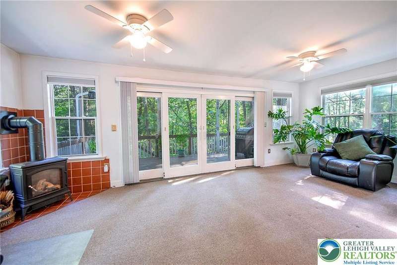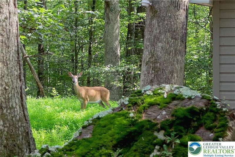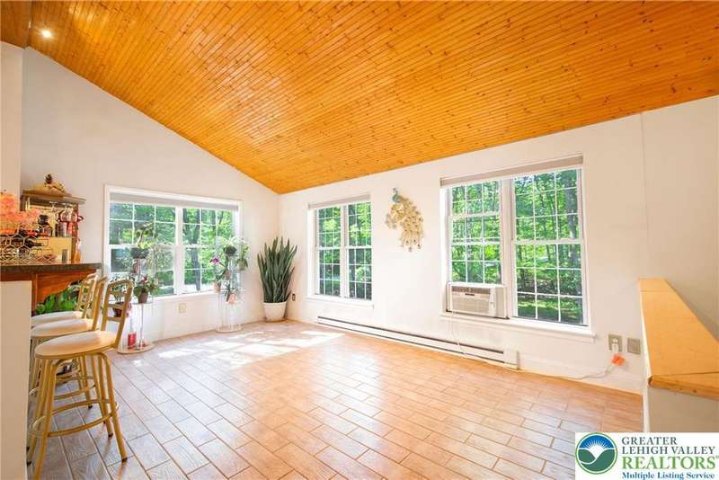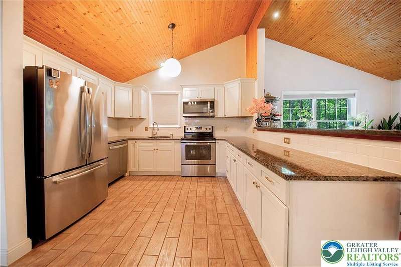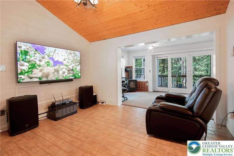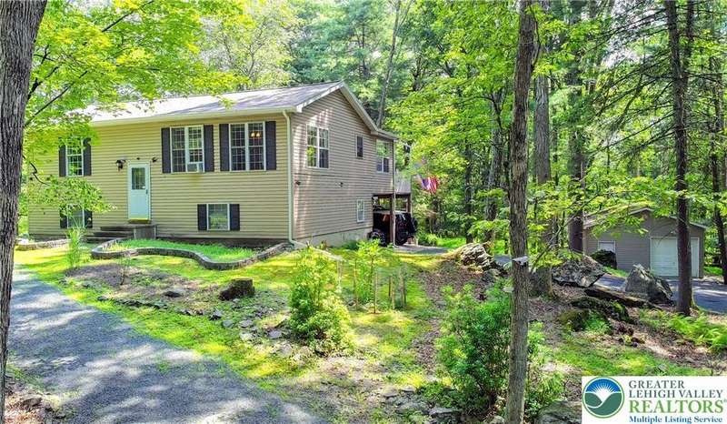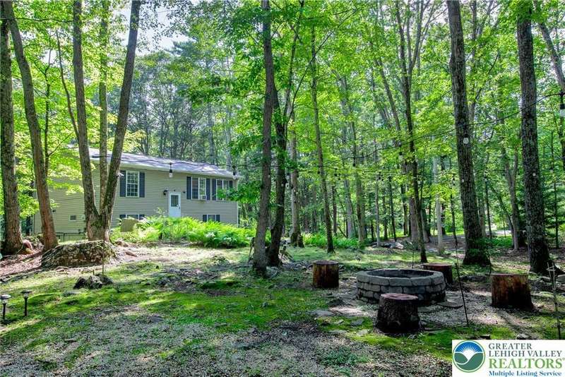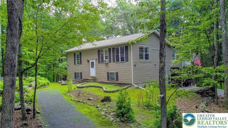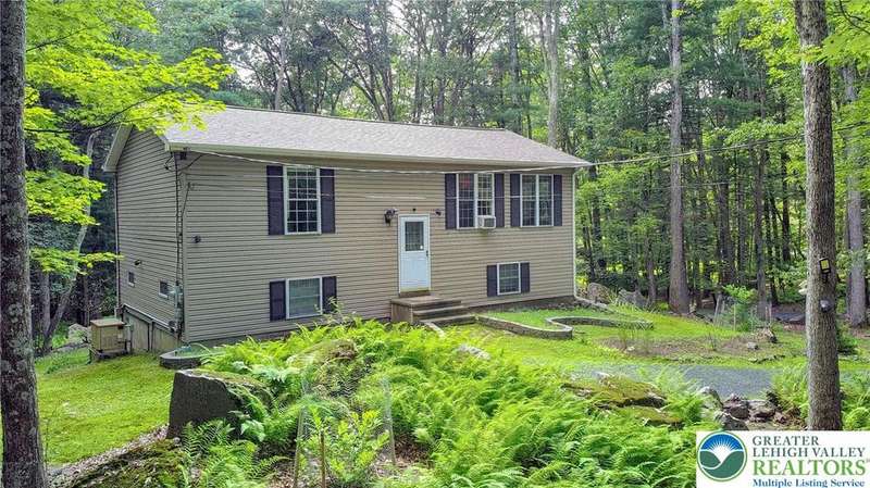 Enjoy Chic Living on a Private 2 acre lot. Welcome to this modern updated bi-level home offering approximately 2,140 square feet of stylish and comfortable living space. Nestled on a serene, wooded lot, this home features 3 spacious bedrooms and 2 full bathrooms, with a bright, open layout perfect for everyday living and entertaining. The main level boasts vaulted wood ceilings and an inviting living and dining area that flows seamlessly into a modern kitchen, complete with granite countertops and a classic subway tile backsplash. Step into the all-season room, where a cozy propane stove and sliding glass doors lead to a large deck?ideal for year-round relaxation. Downstairs, you'll find a generous family room with a second propane stove, a full bathroom, a laundry area, and an expansive primary bedroom with ample closet space. Relish the benefits of no HOA dues, convenient access to shopping and local amenities, and the flexibility of a short-term rental-friendly township.