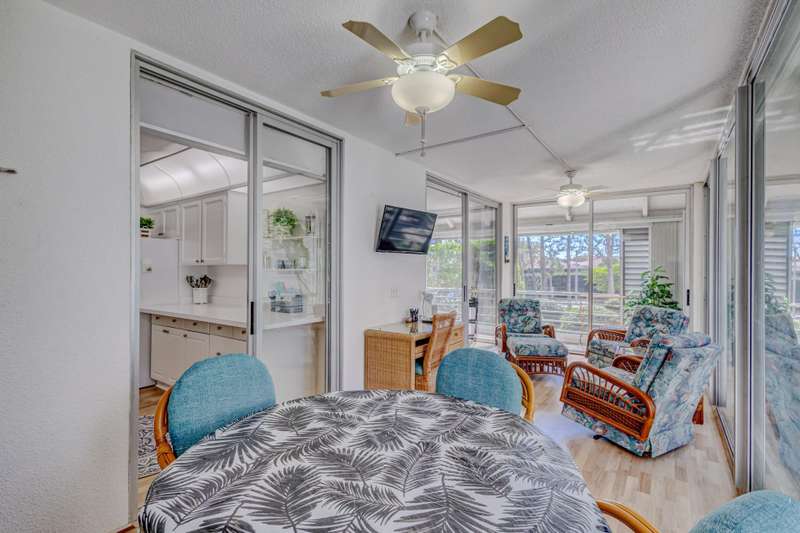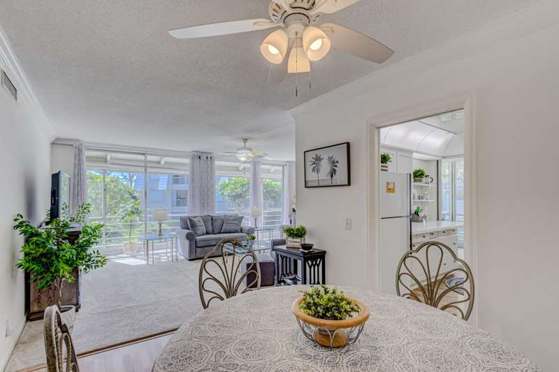 UNIT IS NOT AVAILABLE UNTIL MAY OF 2026. MUST BE 3 MONTHS OR MORE TO LEASE.NOT AVAULABLE FOR ANNUAL RENTAL 55* COMMUNITY. ALL NEW FURNITURE AND BOTH BATHS REMODLED. NO PETS!!! ACCESS TO BEACH FOR TENANTS. LAUNDRY FACILITY ON SAME FLOOR. VERY SERENE. QUIET AND LUSH TROPICAL SURROUNDINGS.DOCKS AVAILABLE FOR LEASE EXIT CLEANING $175. INCLUDES CABLE AND SUBCRIPTION