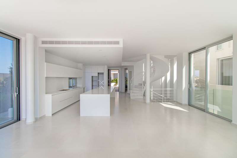 A five Bedroom beachfront villa is located in the most prestigious area of Paphos in a large plot area. This luxury villa consists of 5 bathrooms, underfloor heating, private gardens, marble flooring and upgraded finishes. A Residents Clubhouse, private pools and gardens, large verandas and patios, ample covered parking and superior interior finishes, are some of the villas features