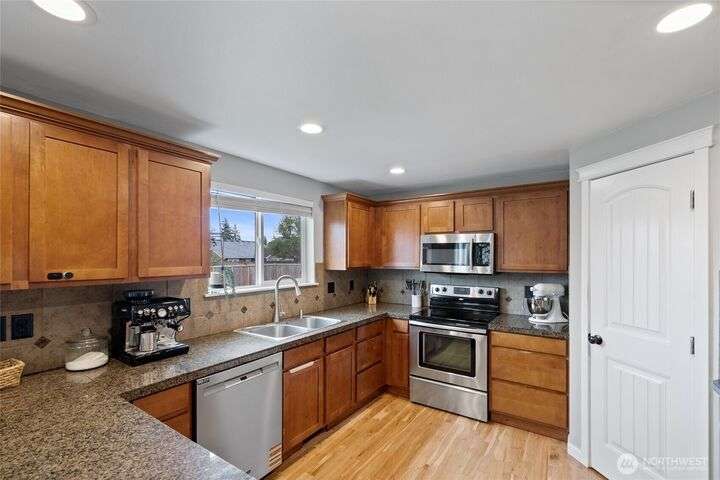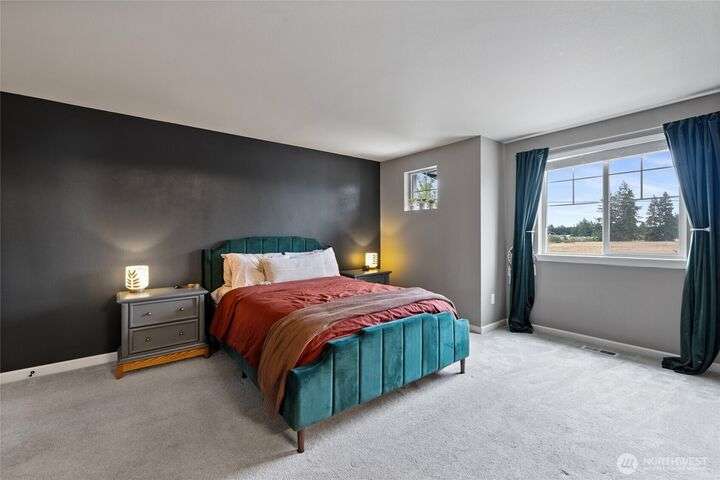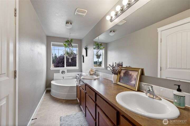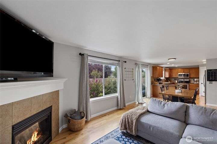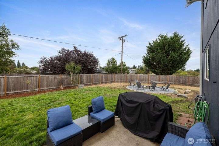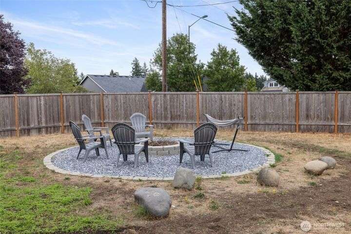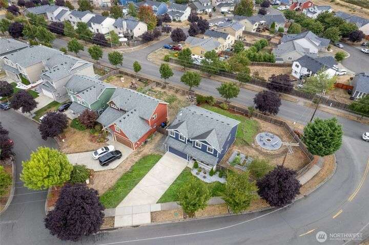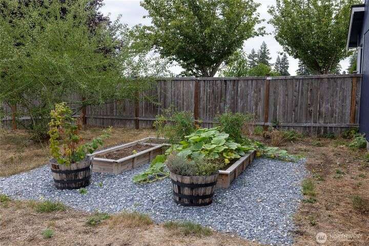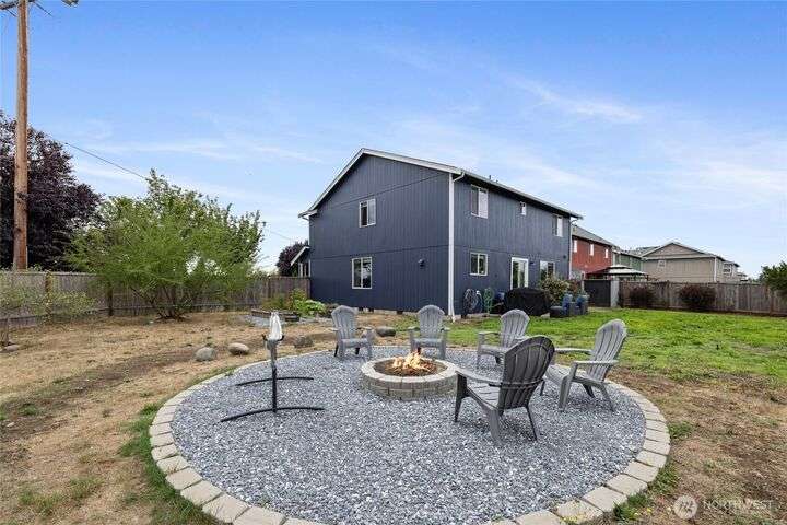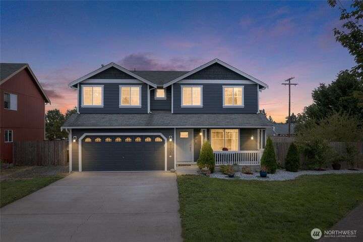 Fantastic 5-bedroom home on just under a ¼-acre corner lot with fresh exterior paint and Mount Rainier views from several rooms! Relax in the huge fully fenced backyard with firepit while eating juicy peaches from your very own peach tree. Kitchen offers plenty of counter space, storage, stainless steel appliances - all appliances included! The primary suite features French doors, a walk-in closet, and a 5-piece bath with water closet. Spend cool winter nights cozied up to the warmth from the gas fireplace. With the great location close to town, short commute to JBLM/Tacoma/Olympia, spacious layout, hardwood floors, oversized yard & mountain views, it's a must see to truly appreciate!