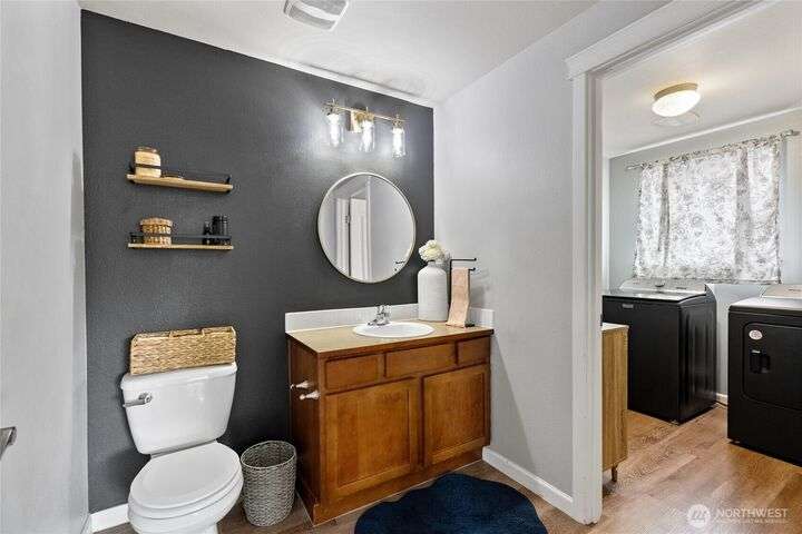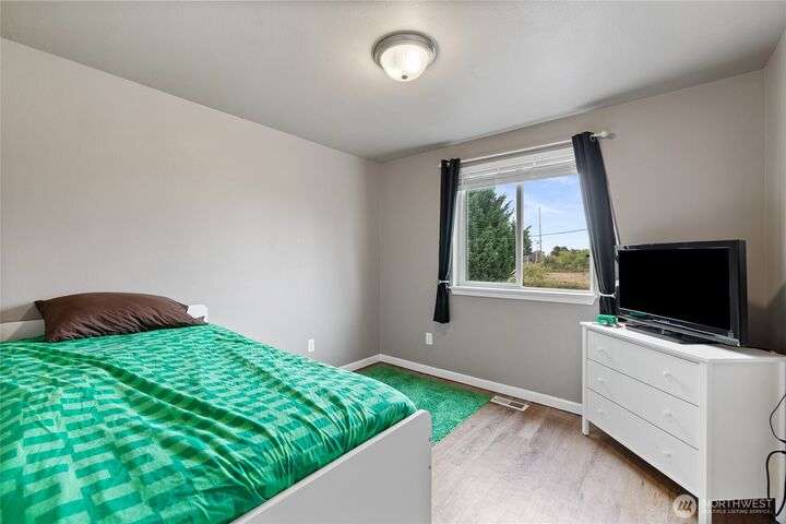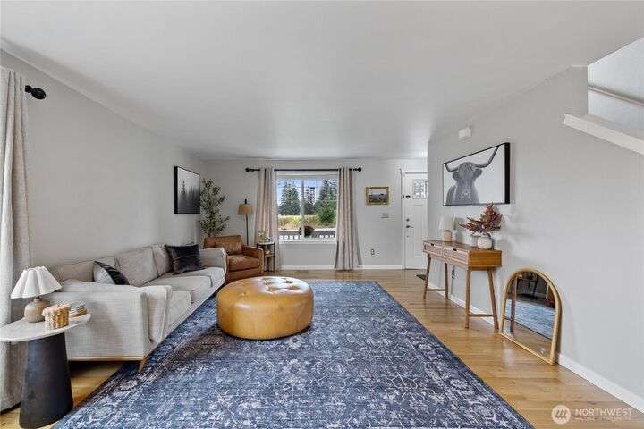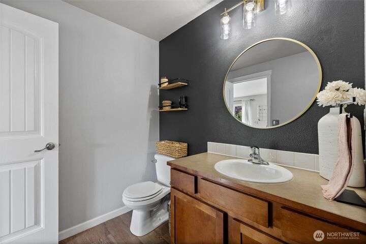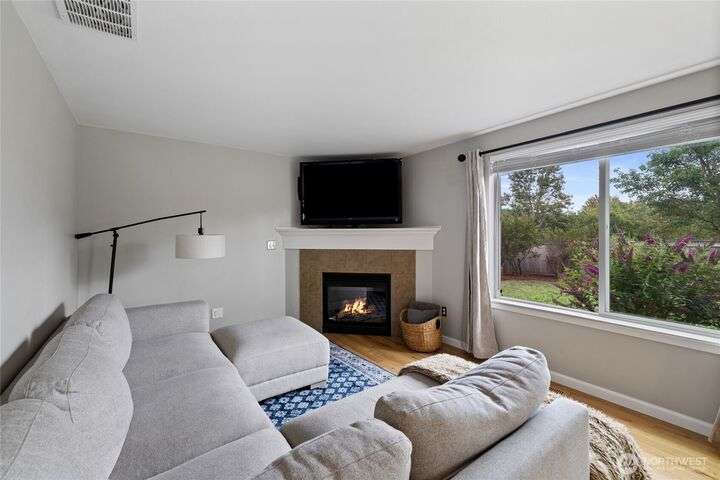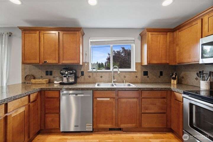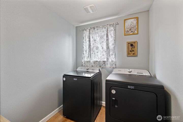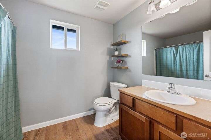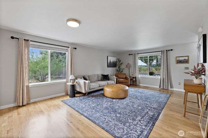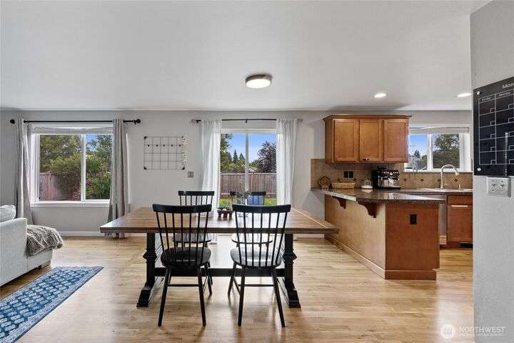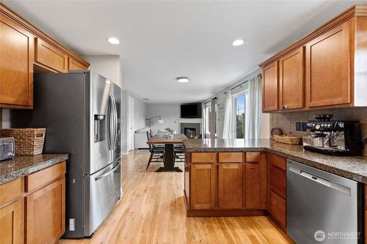 Fantastic 5-bedroom home on just under a ¼-acre corner lot with fresh exterior paint and Mount Rainier views from several rooms! Relax in the huge fully fenced backyard with firepit while eating juicy peaches from your very own peach tree. Kitchen offers plenty of counter space, storage, stainless steel appliances - all appliances included! The primary suite features French doors, a walk-in closet, and a 5-piece bath with water closet. Spend cool winter nights cozied up to the warmth from the gas fireplace. With the great location close to town, short commute to JBLM/Tacoma/Olympia, spacious layout, hardwood floors, oversized yard & mountain views, it's a must see to truly appreciate!