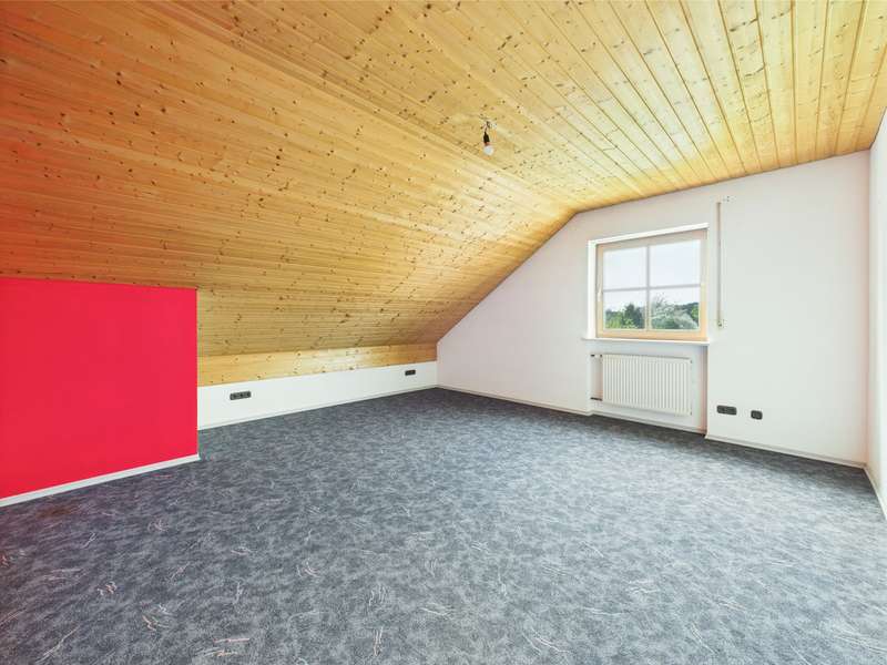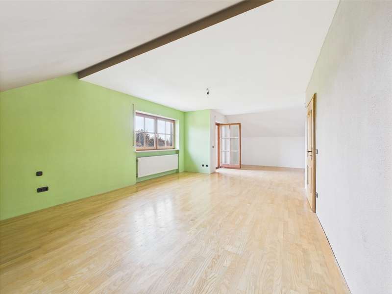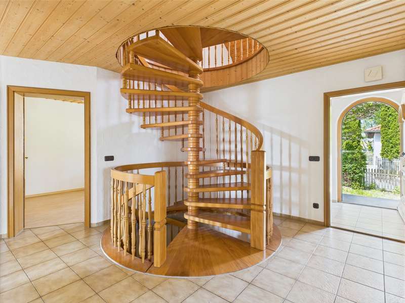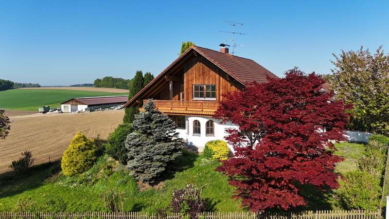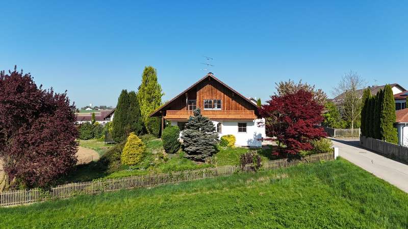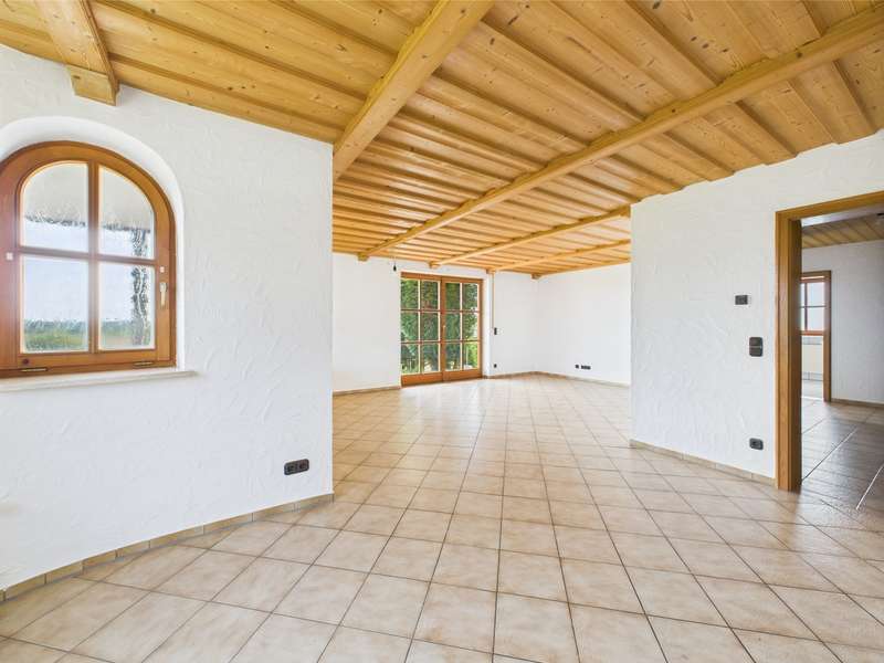 Charming detached house with alpine views in Kumhausen - Windten-Hachelstuhl This spacious detached house in an idyllic location in Kumhausen-Windten-Hachelstuhl impresses with its well thought-out architecture, open views over fields and meadows and enormous development potential. A living space of approx. 188 m², spread over two floors, awaits you on a 789 m² plot. Generous room layouts, lots of light and a particularly successful design ensure a pleasant living atmosphere. There is a modern shower room on the first floor and a further bathroom with bathtub on the upper floor - the bathroom and WC are separate here. The underfloor heating on the ground floor and in the bathroom on the upper floor provides cozy warmth, supplemented by a regularly maintained oil heating system. The house offers many details that underline its special charm: Real wood parquet flooring in the master bedroom, a wooden staircase made by a carpenter, exterior blinds, a balcony and a large double garage - one of the doors is electrically operated. Particularly noteworthy is the heated, spacious cellar with separate outside access and a practical utility room. The master bedroom offers the option of separating off another room - ideal for an office, dressing room or an additional children's room. The double-glazed wooden windows, the large garden and the unobstructed distant view with a view of the Alps in clear weather round off this offer. Some finishing work and repairs are still required, but this is precisely where the potential lies: design this charming house exactly as you wish and create a home with character. Click here for the 360° digital tour: https://tour.giraffe360.com/5b170bc862a24103b2c070729fca6f06/ See for yourself - this house deserves your attention. It's well worth a viewing!