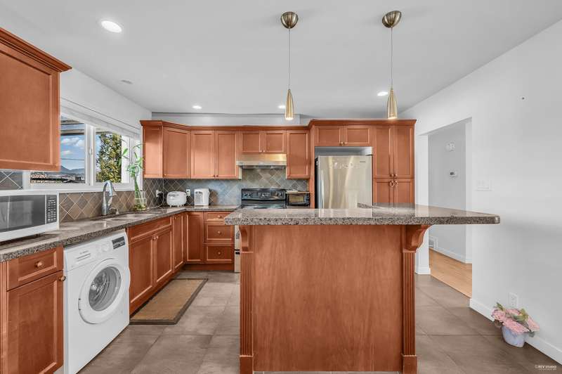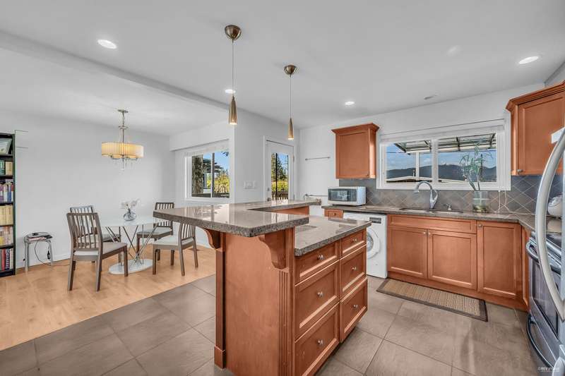 This well-maintained Chineside home offers stunning views of Burrard Inlet and the mountains. Features include an open kitchen with granite countertops, stainless steel appliances, a central island, and an updated main bath. The spacious basement includes a fireplace and secondary kitchen.Enjoy a large sundeck, fenced backyard, and convenient access to Mundy Park, shopping, transit, and Dr. Charles Best Secondary. Recent upgrades: new flooring, sundeck, washer/dryer (2021), and a brand-new furnace with central heating and A/C (2024),Cleaned all vents in March 2025, annual roof maintenance in place.