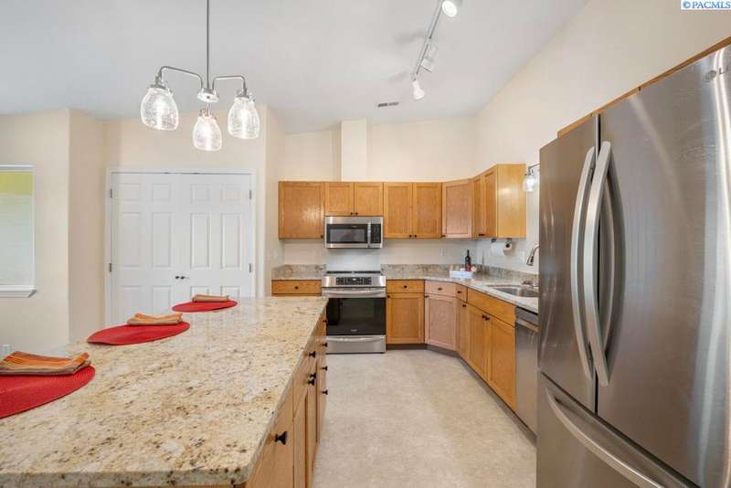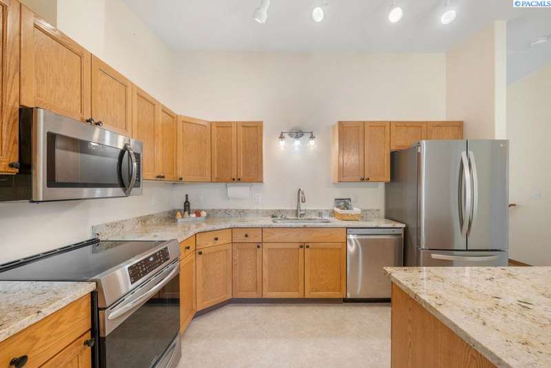 MLS# 285915 Nestled in a peaceful cul-de-sac with easy access to local shops, dining, and everyday conveniences, this beautifully updated 2-bedroom, 2.5-bath condo combines the feel of a cozy family home with the ease of low-maintenance living. Step inside to discover all-new interior paint, updated flooring throughout, and an inviting open-concept design. The main level features a spacious great room with rich oak floors, a modern kitchen adorned with granite countertops, stainless steel appliances, a breakfast bar, and soaring 9' ceilings. You will love the new induction cooktop and oven; stove top cooking becomes effortless and more energy efficient. The primary suite is on the main floor, and has two, double-door closets, and plenty of room for bedroom furniture. Also conveniently located on the main floor is the laundry area and a guest washroom. And from there, you also have easy access to your one-car garage, front patio, and back balcony. Downstairs, you'll find a second living space, another bedroom, with its own extra-large walk-in shower, bathroom —perfect for guests, football weekends, or a home office. The lower level also has a private exit. Additional features include custom blinds, luxury vinyl flooring, plush carpeting in the bedrooms, a high-efficiency gas furnace, central A/C, and a water softener. Whether you're entertaining or enjoying quiet moments at home, this thoughtfully updated condo offers comfort, functionality, and style in one perfect package. First 3 months of HOAs paid by seller with full price offer.