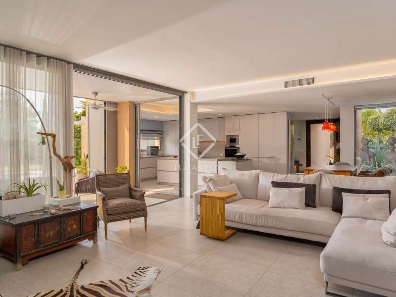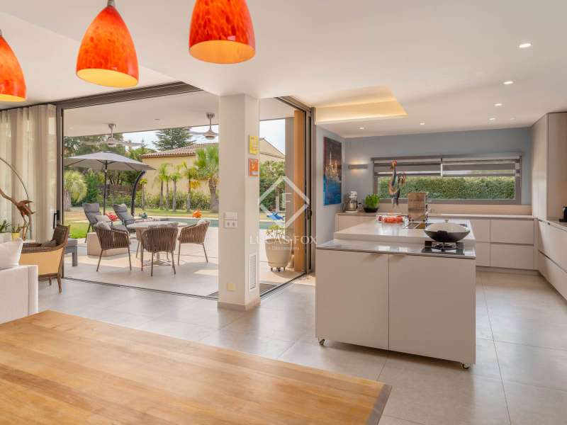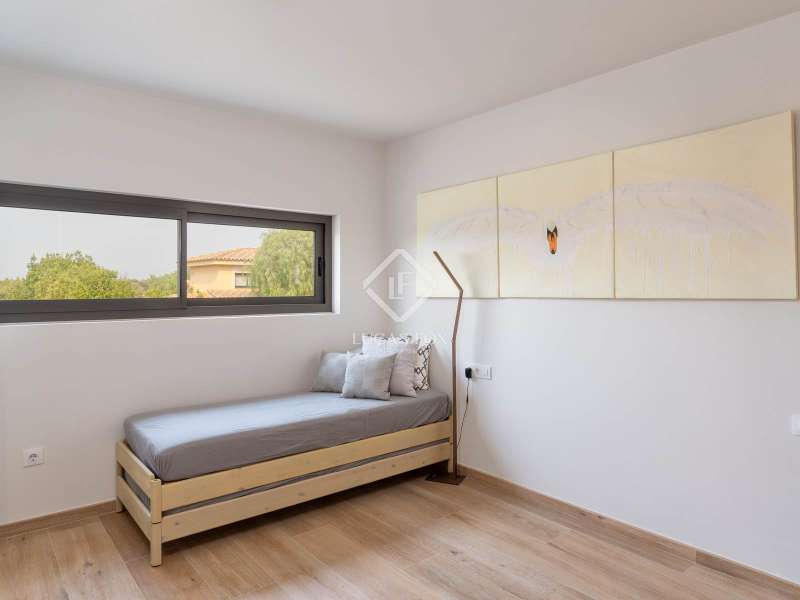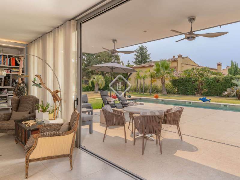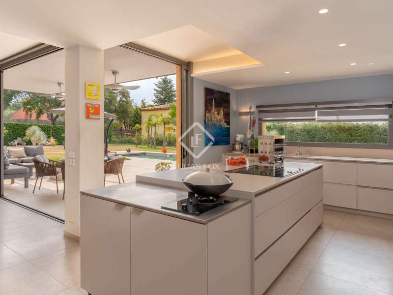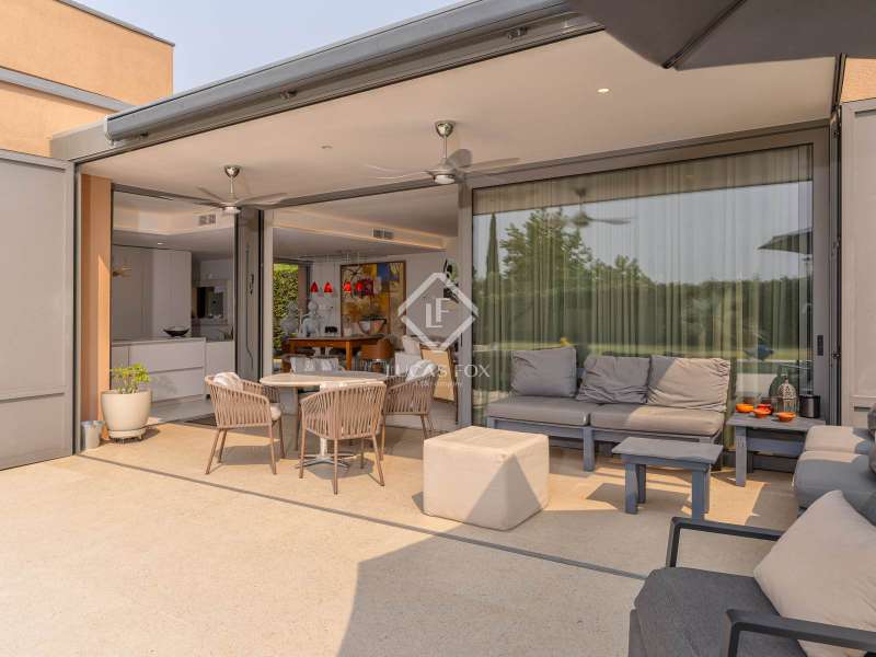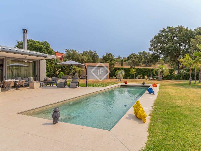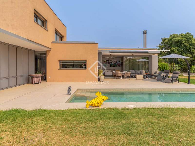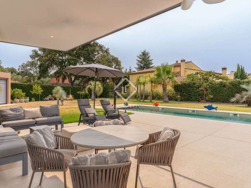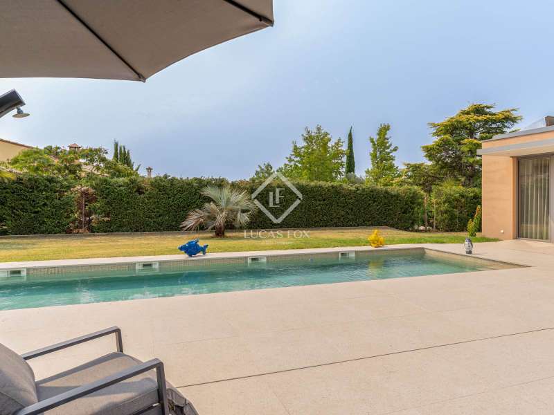 Discover this elegant contemporary villa located in the exclusive residential area of Golf Peralada, a privileged enclave surrounded by rolling hills and golf courses, ideal for those seeking a peaceful, natural setting. Spread over two floors, the property offers a functional and spacious layout . On the main floor , a bright lobby welcomes you and leads to the spacious dining room living room with a fireplace, perfect for relaxing moments or social gatherings. This space is integrated with a modern open kitchen, equipped with high-end appliances , creating a bright and welcoming atmosphere. The large windows allow in abundant natural light and connect directly to the garden, terrace, and heated pool, creating a perfect exterior area for relaxation and enjoyment. On this same floor is the generously sized master suite , which includes an elegant dressing room and a full bathroom with a designer shower. This level is completed by a guest toilet, a practical utility room , and a functional garage, designed to provide everyday comfort. The upper floor houses two double bedrooms, both with en suite bathroom . These rooms have large windows overlooking the garden and pool, providing a sense of light and spaciousness. The property's exterior has been carefully designed, with a landscaped garden , terraces, and a porch ideal for enjoying the natural surroundings. The heated pool, equipped with an automatic cover, and a storage shed complete this magnificent exterior space, ideal for both leisure and relaxation. The villa is distinguished by its high-quality finishes, modern design, and energy efficiency. It features an aerothermics pump and underfloor heating that provides heating and cooling throughout the property, ensuring year-round comfort and optimized energy consumption. In addition, the property offers the possibility of expansion, providing the opportunity to create a new, versatile space that suits your personal needs, whether as an office, wellness area, games room , or additional bedroom .