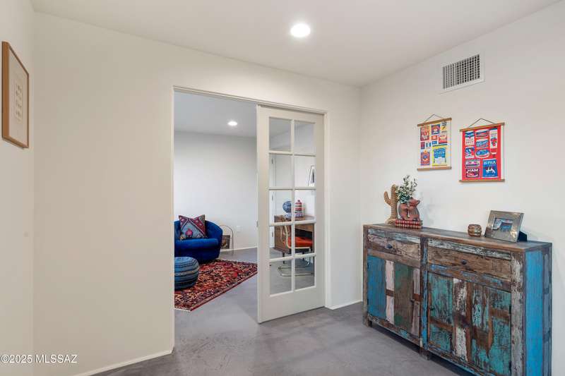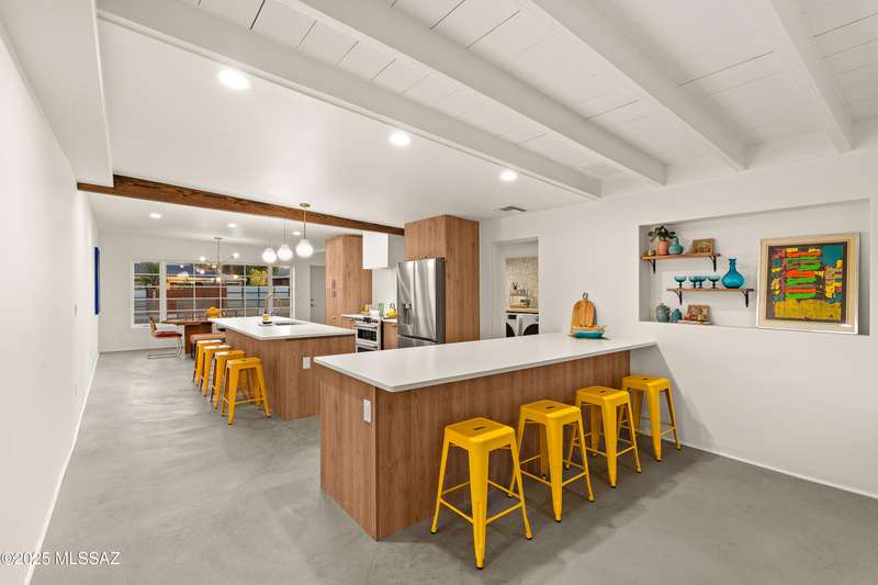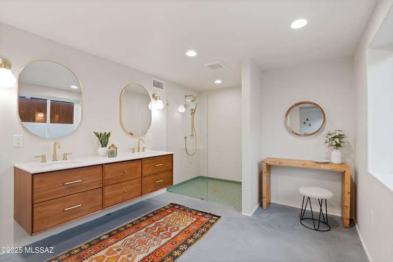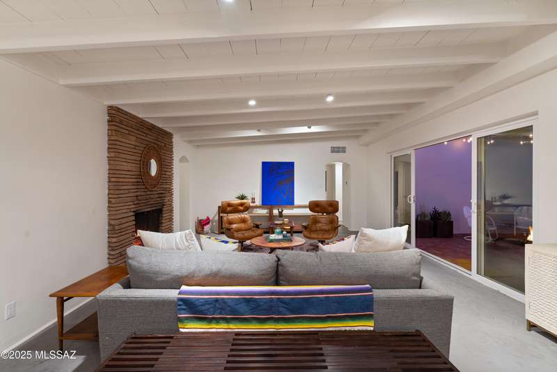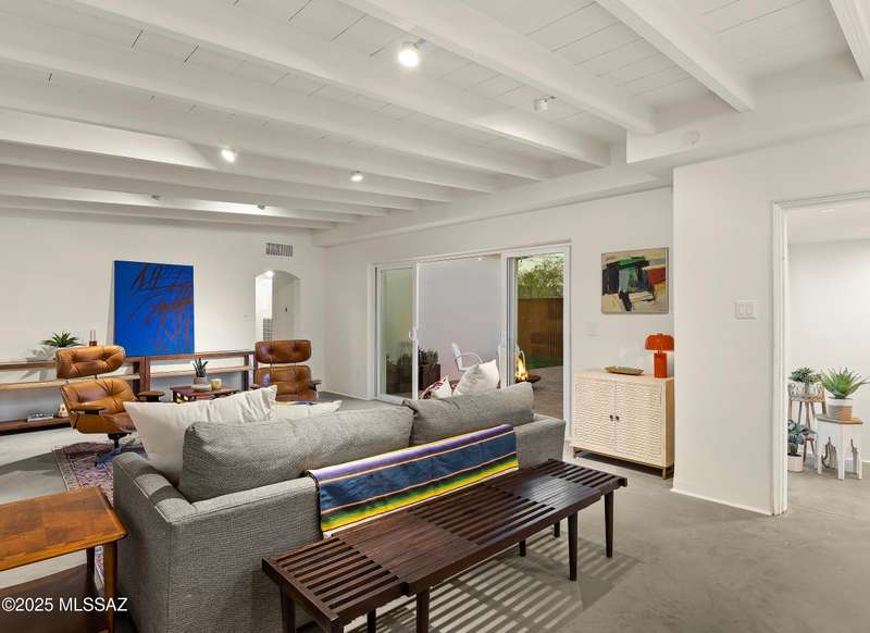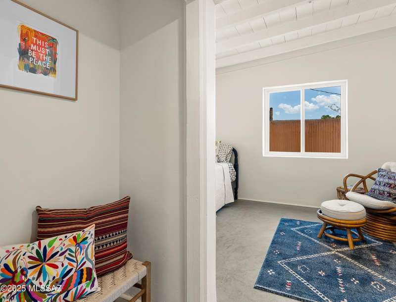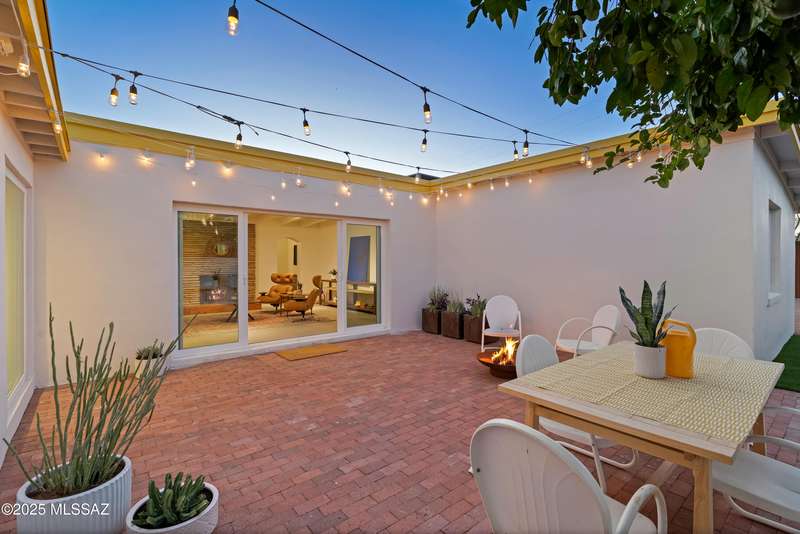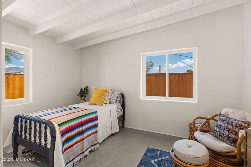 This stunningly reimagined home in the coveted historic Catalina Vista neighborhood exhibits a beautiful balance of its architectural roots and modern, functional amenities. Complete remodel includes new roof, plumbing, HVAC, and polished concrete floors. Custom Milgard windows and sliding glass doors provide extra efficiency and expansive natural light. The main home centers around a sleek, modern kitchen, providing ample seating for eight and equipped with high-end appliances. The primary suite includes two walk-in closets and a private patio. Artisanal Tadelakt waterproof plaster in the primary bath exudes a luxury, spa-like feel. The 5th bedroom/casita has a separate entrance and its own patio, providing endless possibilities - think private guest suite,