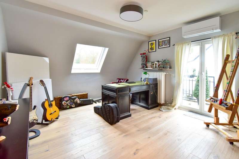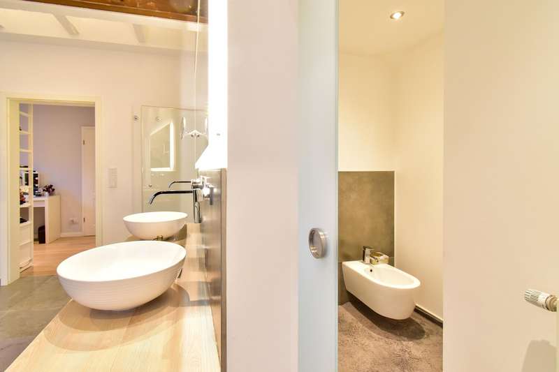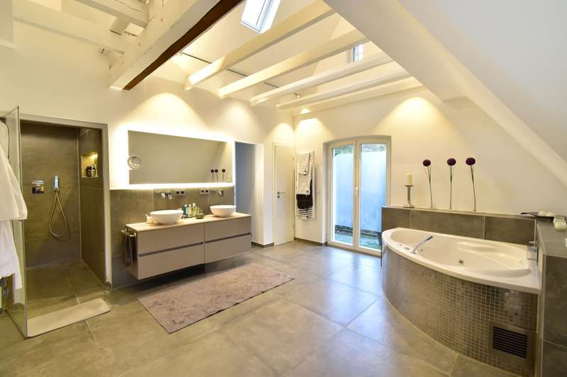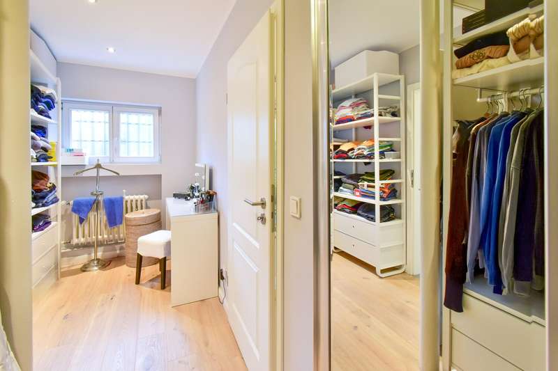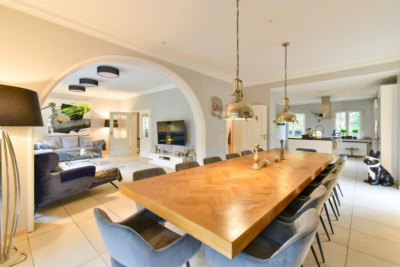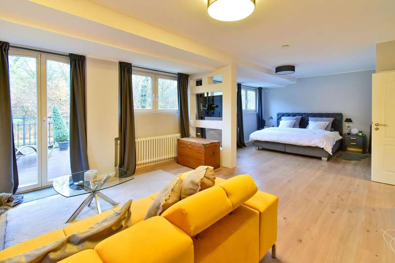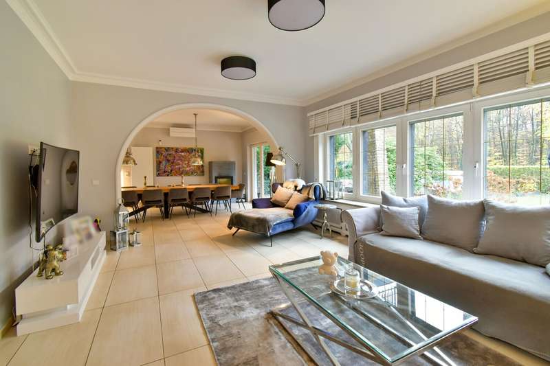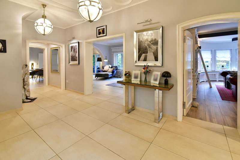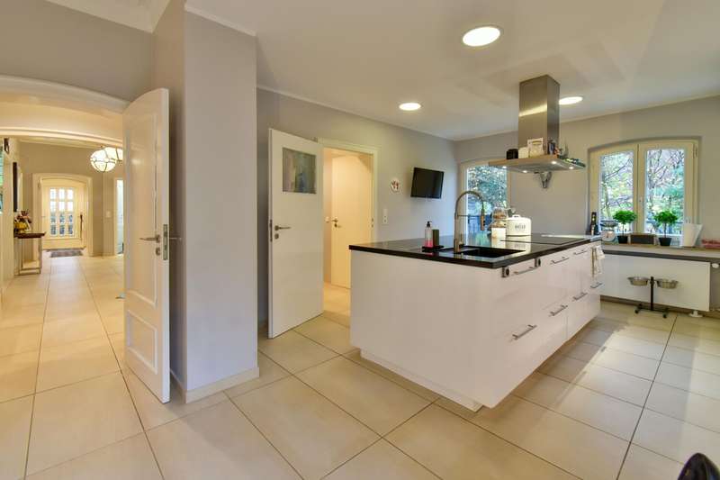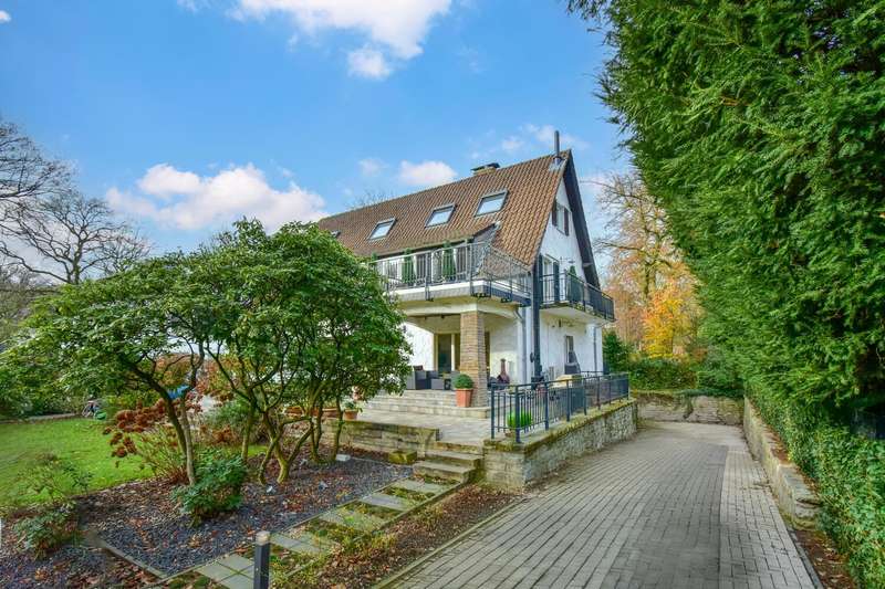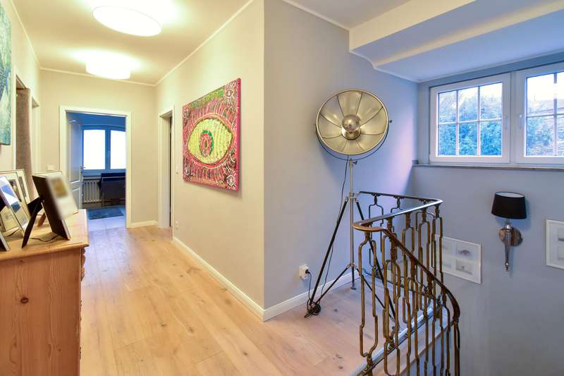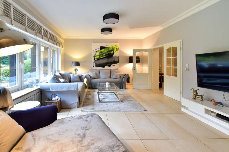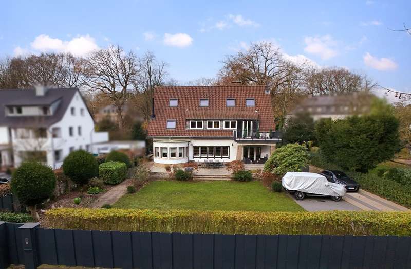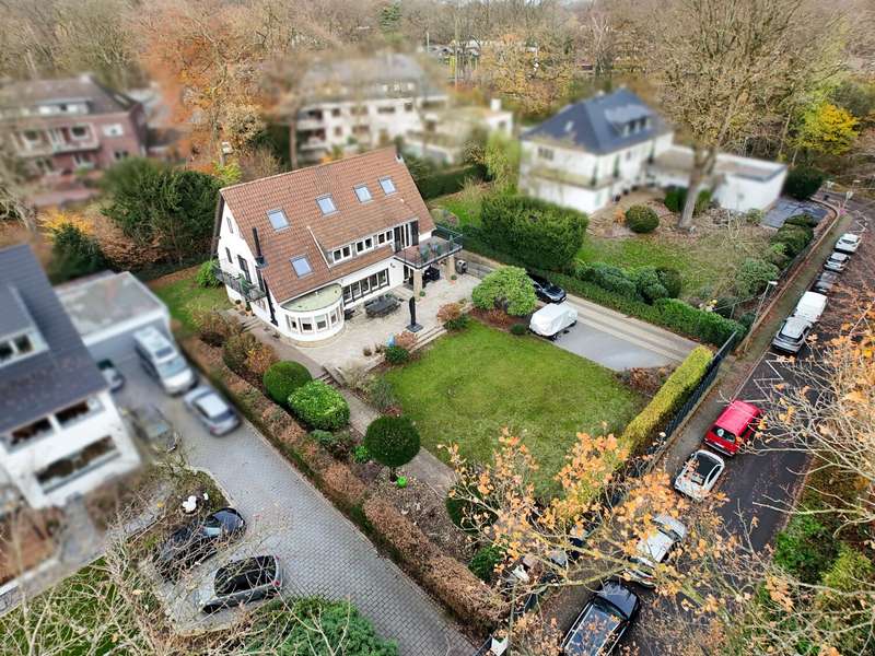 This appealing, modernized villa built in 1951 impressively combines the timeless charm of the original building with modern architecture and high-quality furnishings. With a generous living space of approx. 325 m² on a tastefully landscaped plot of approx. 1,200 m², this property presents itself as an attractive home for discerning buyers. The villa is located in a first-class neighborhood characterized by large, mature plots and stylish villas. A large driveway, which together with the plot is optimally protected by a security fence and a secure gate entrance, leads to the prestigious entrance area. The first floor impresses with flowing transitions between the light-flooded living area, the spacious dining area and the modern, large fitted kitchen. Floor-to-ceiling windows allow plenty of natural light into the house and create a pleasant living atmosphere. Particularly noteworthy are the stylish double doors that connect the entrance area with the living area and lend the room concept an open elegance. There are ten rooms in total, including seven bedrooms and three modern full bathrooms. One of the bathrooms is equipped with a high-quality steam bath/shower and, together with the exclusive parents' area including a walk-in closet and en suite bathroom, forms a comfortable retreat. All bathrooms have been fitted with modern fittings and selected materials. Two Jotul fireplaces ensure atmospheric evenings in the cozy fireplace room and other living areas, while the sophisticated building control system makes living particularly comfortable. The house is also air-conditioned and offers maximum living comfort at any time of year. Fitness enthusiasts have their own gym in the basement of the house. The basement also offers a variety of uses and plenty of storage space. Enjoy sunny days and relaxing evenings on two terraces and four balconies, which cater to a wide variety of needs and times of day. The spacious outdoor areas invite you to linger, while a groundwater pump enables cost-neutral irrigation of the garden. There are three outdoor parking spaces for vehicles on the property. The extensive modernization of the property took place between 2021 and 2025, using only high-quality materials with upscale fixtures and fittings. With energy efficiency class D, you benefit from a contemporary energy concept. This villa is characterized by its generous, modern space and the combination of distinctive architecture and first-class details. Arrange a viewing appointment and see for yourself the unique character and diverse possibilities of this property.