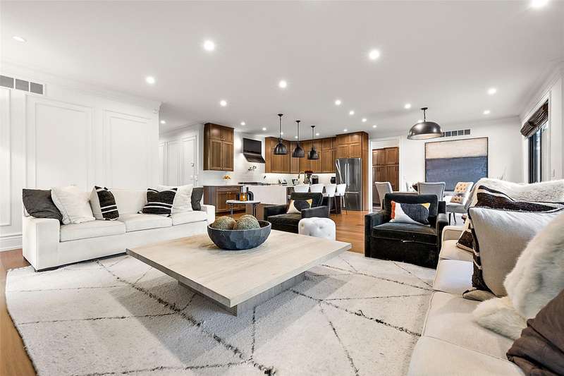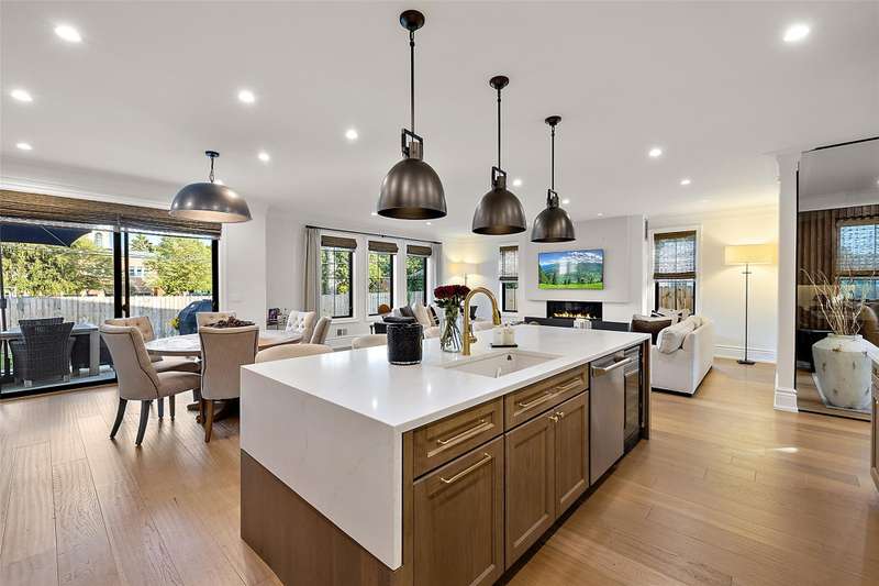 Welcome to this custom-built colonial, ideally situated near both Downtown Royal Oak and Downtown Birmingham. A rare offering, this home sets the standard for luxury living with timeless design and modern craftsmanship. The main floor opens with a bright foyer and private office framed by glass and custom wall treatments. The chef’s kitchen anchors the home with a massive quartz island, professional appliances, wine fridge, and floor-to-ceiling hickory cabinetry. It flows seamlessly into the dining area and great room, where a sleek fireplace sets the tone for gatherings. A custom mudroom with direct garage access keeps daily life organized, and a stylish half bath adds convenience. Step outside to a fully fenced backyard with privacy fencing and a spacious patio designed for dining and entertaining. Upstairs, four bedrooms each feature ensuite baths. The primary suite is a true retreat with tray ceiling detail, spa bath boasting dual vanities, oversized double shower, freestanding tub, and a generous walk-in closet. A second-floor landing with dramatic woodwork along the stairway wall creates a striking focal point, while the laundry room adds everyday ease. Junior suites provide flexibility for family or guests, each with thoughtfully finished bathrooms. The finished basement extends the living space with a large recreation area, egress window, full bath, and ample storage. Whether envisioned as a home theater, fitness room, or lounge, it’s designed to adapt to your lifestyle. Every finish reflects quality, 9-foot ceilings, 8-foot solid core doors, custom millwork, and wide-plank hardwood floors throughout. Professional landscaping, a two-car attached garage, and unmatched curb appeal complete this exceptional home.