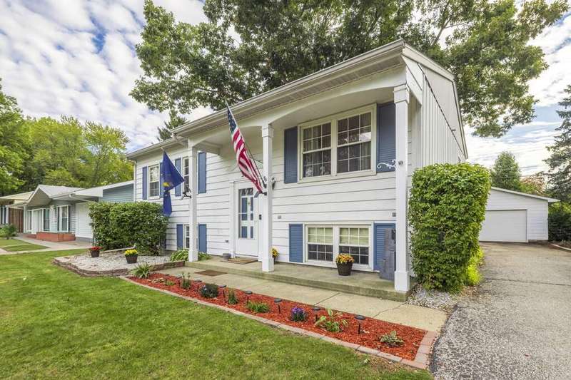 A well-maintained property conveniently situated in Michigan City's Southwood neighborhood offers a 4-bed, 2-bath home, fenced-in backyard with large deck, detached 2-car garage, and plenty of parking. The split-level home features an eat-in kitchen, living room and 3 bedrooms upstairs, while the finished lower level offers a large primary suite with 3 closets (1 walk-in) and electric fireplace, a rec room with bar and gas fireplace, a designated laundry room, and a full bathroom with jetted tub. Most of the home features new vinyl plank flooring. Upgrades include tankless water heater installed about 5 years ago, furnace and AC installed in 2014, new drain line from kitchen to main line, and 1-year-old roof on home.