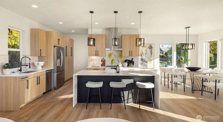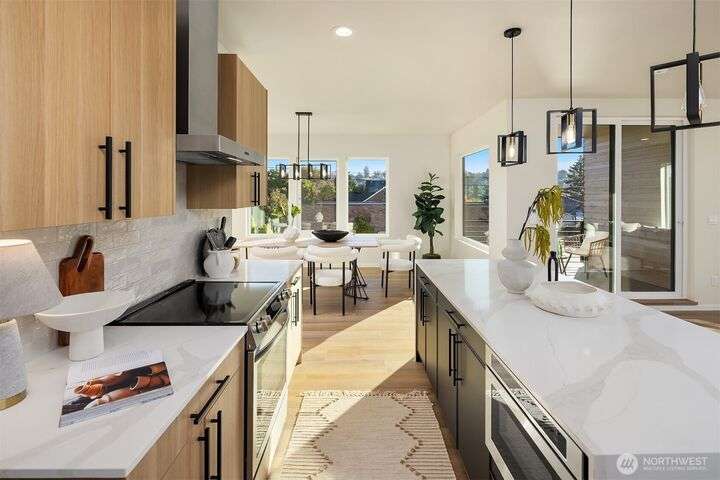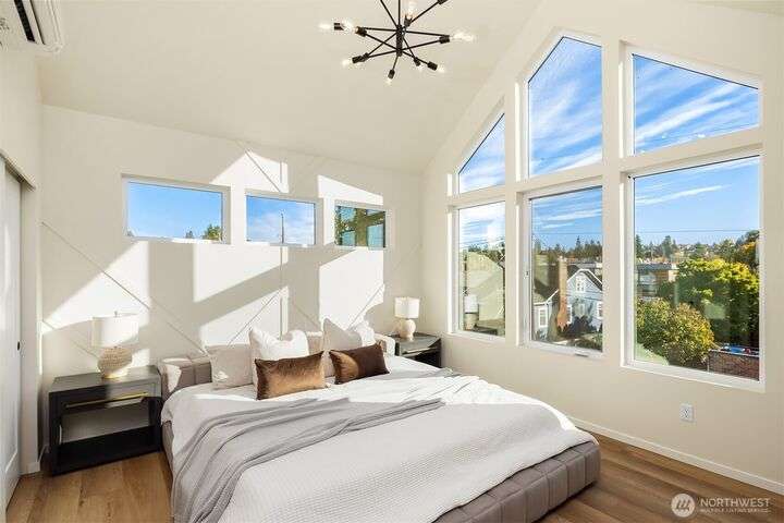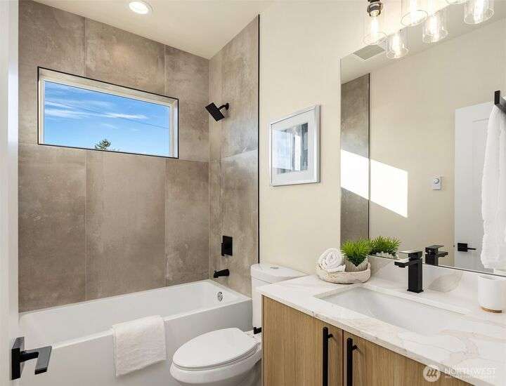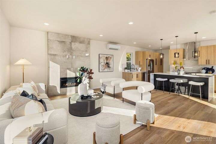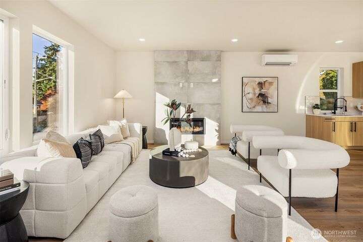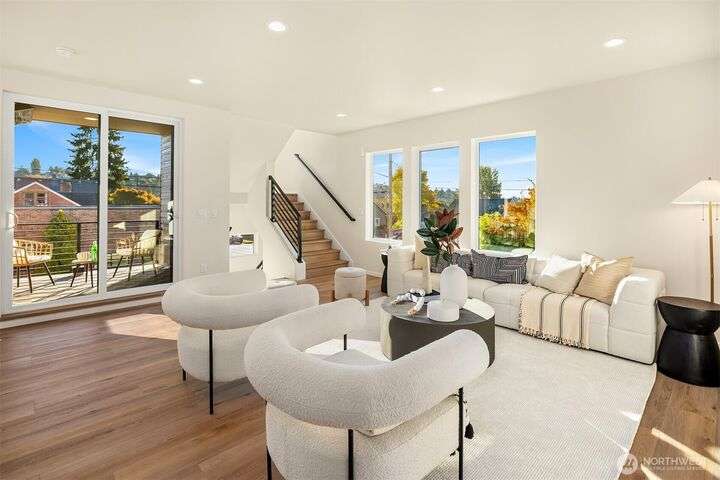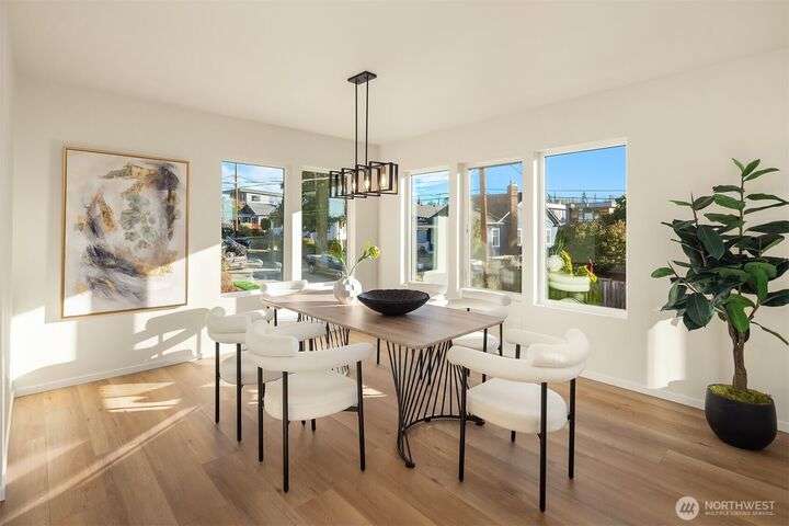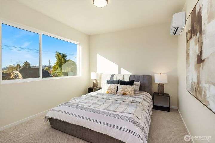Welcome to this brand new 4 bedroom home by local builder New City Homes. On your main floor, a light-filled, spacious kitchen, dining, and living area opens to a private balcony. Upstairs, find three bedrooms, including a spacious primary suite with a walk-in closet and elegant bath. Continue up to the rooftop deck to take in sweeping views of the Olympic Mountains and downtown skyline. A lower-level guest suite with its own bath offers flexibility, while a convenient mudroom connects to the attached one-car garage for easy everyday living. Enjoy proximity to great restaurants, shopping and recreation in Ballard and Phinney Ridge & Green Lake.