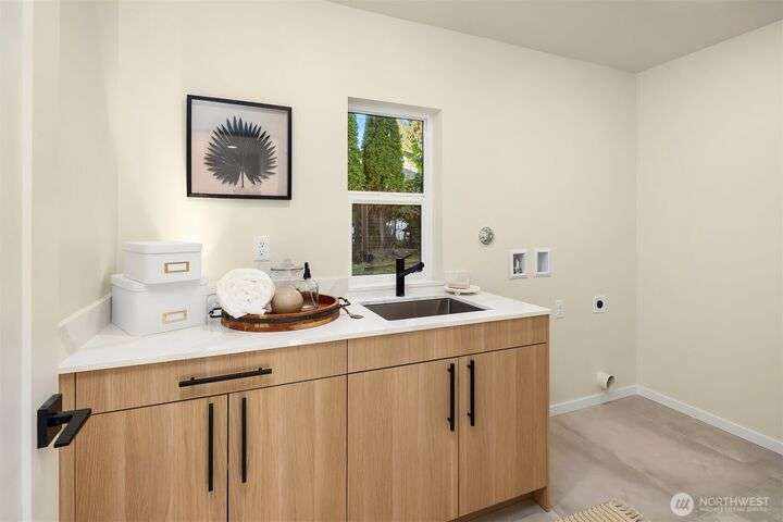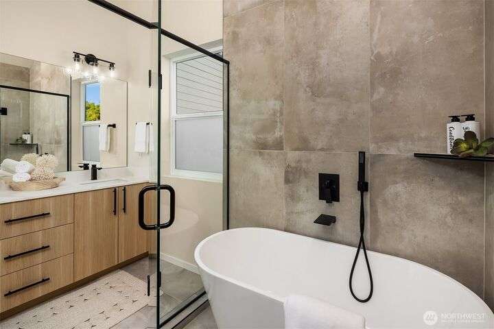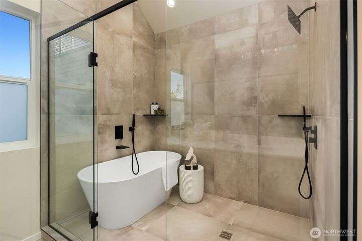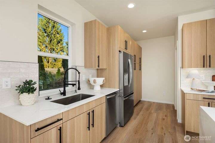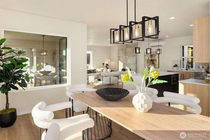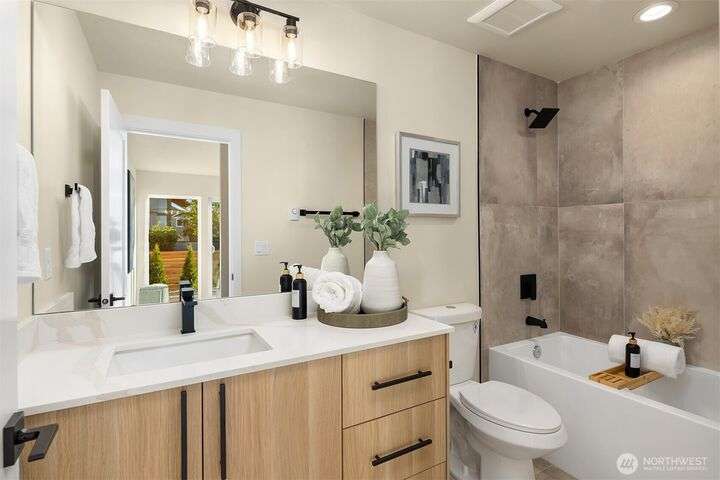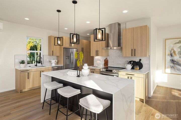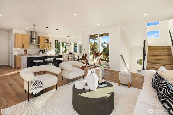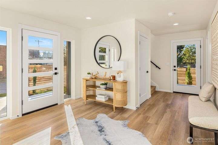 Welcome to this brand new 4 bedroom home by local builder New City Homes. On your main floor, a light-filled, spacious kitchen, dining, and living area opens to a private balcony. Upstairs, find three bedrooms, including a spacious primary suite with a walk-in closet and elegant bath. Continue up to the rooftop deck to take in sweeping views of the Olympic Mountains and downtown skyline. A lower-level guest suite with its own bath offers flexibility, while a convenient mudroom connects to the attached one-car garage for easy everyday living. Enjoy proximity to great restaurants, shopping and recreation in Ballard and Phinney Ridge & Green Lake.