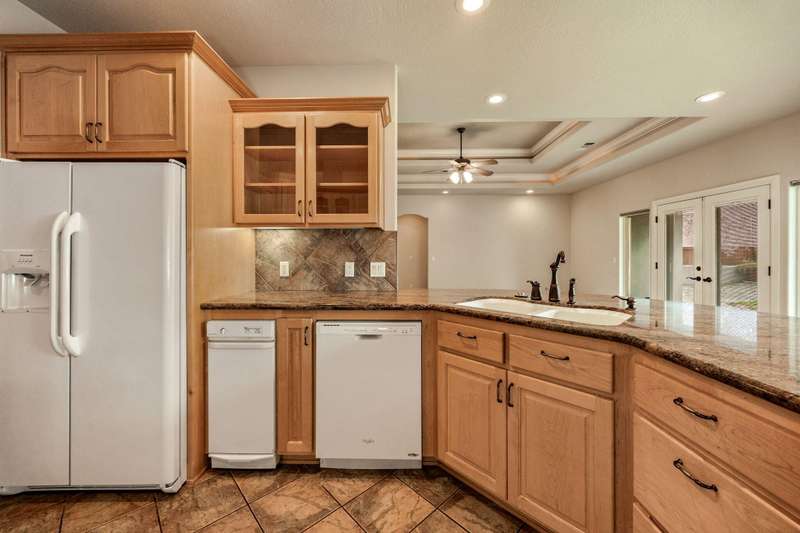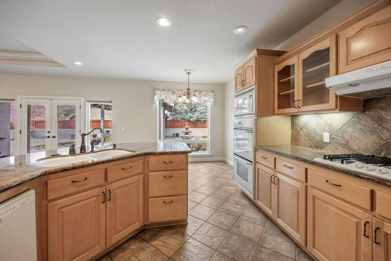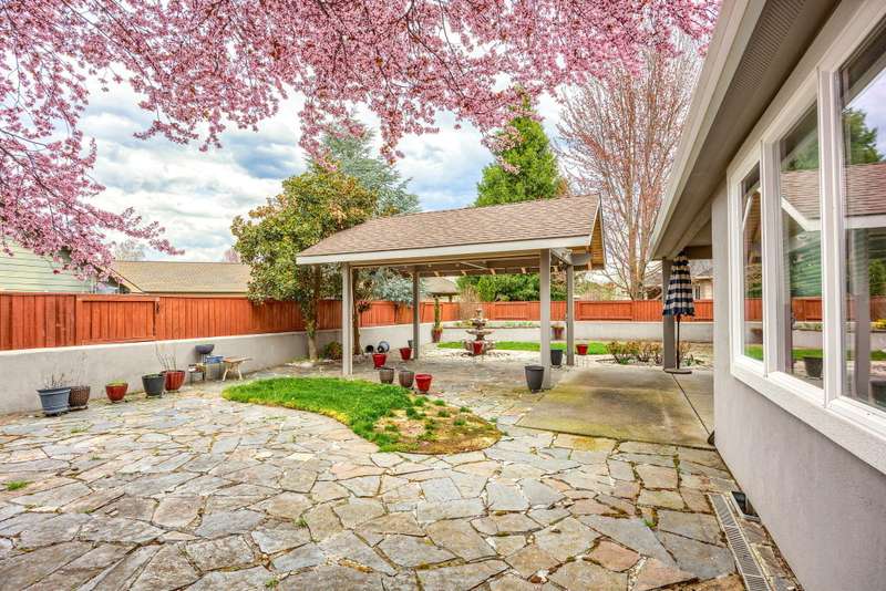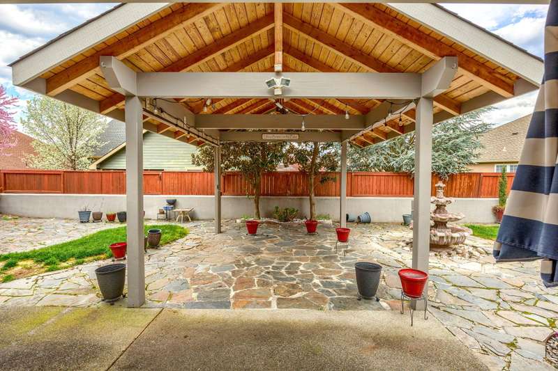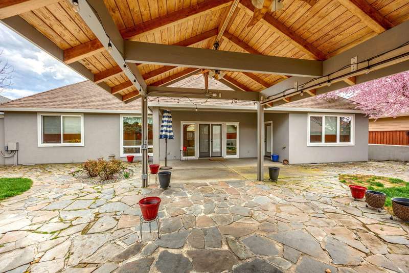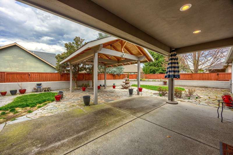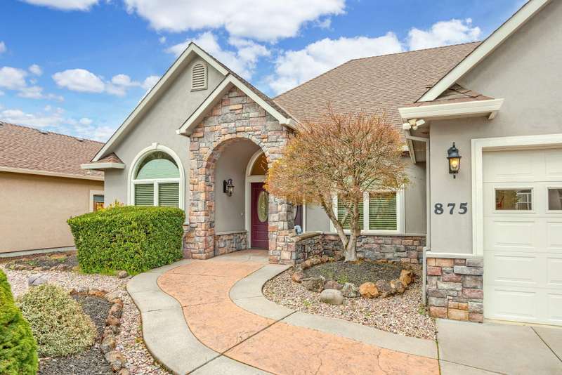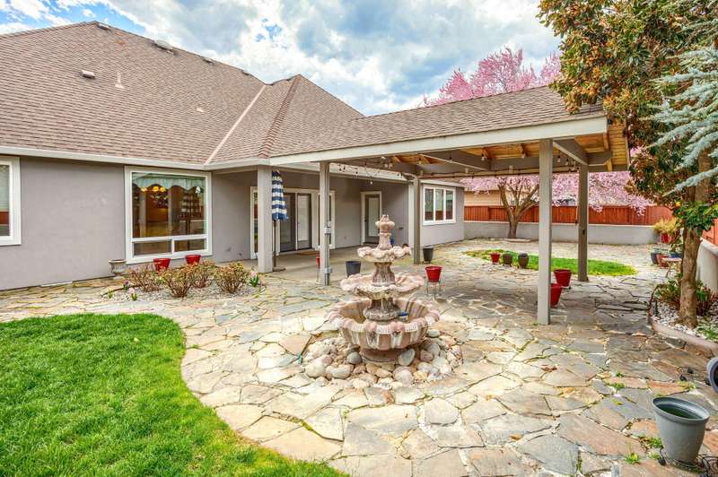 There is much to love about this home. Originally constructed by a builder as his personal residence, the quality, design and features continue to shine. This great location in the Eagle Point Golf Course community sets the stage for quiet & classy living. Current and past owners have had multiple generations living under the same roof, each with distinct separate living spaces. Inside includes a formal dining room, office, and large living room open to the kitchen and eating area. Many of the rooms enjoy a vaulted or coffered ceiling. The main-floor large primary suite features a big walk-in closet, jetted soaking tub and dual sinks. The guest 'wing' offers additional bedrooms, while upstairs is yet another living room, bedroom and full bath. Outdoors the backyard provides privacy and a covered pergola with fan, lights and shade screens to extend outdoor living opportunities. All combined, this beautiful home offers location, quality and finishes that are ready for you to call home.
