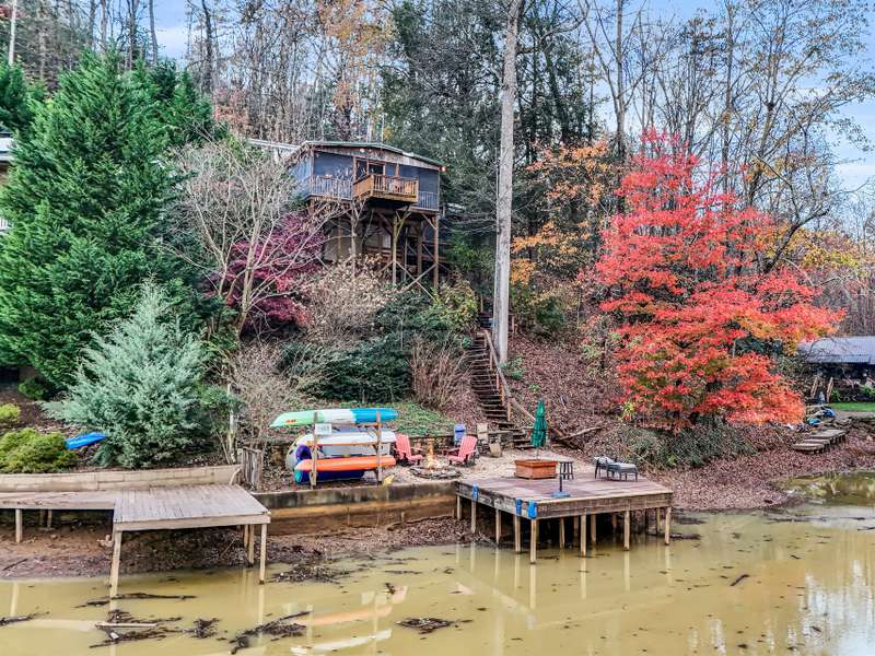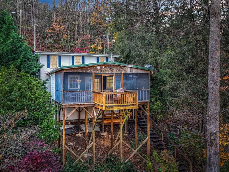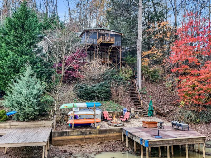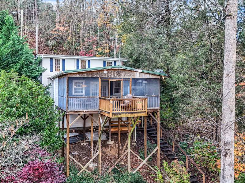 This delightfully updated 1950s cottage offers prime lakefront living on Lake Lure. Located in Tryon Bay, a large protected ?no-wake? zone, complete with a private dock and ample space for your boat & water toys. Perfect for entertaining, the home boasts expansive decks and a spacious screened porch that provides stunning lake views. A generous parking area accommodates multiple vehicles. Inside, the home features a blend of hardwood floors, tile, and charming wainscoting, creating a cozy yet open atmosphere. Stylish finishes throughout, add to the home's timeless appeal. Convenient location and close to everything. Make an appointment today to see what makes this such a special place on Lake Lure!