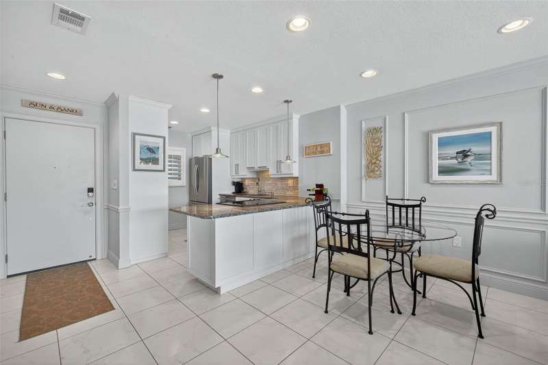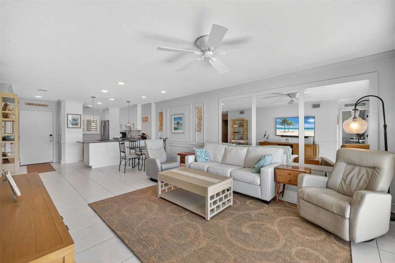 Experience waterfront living at its finest in this totally renovated, first-floor 2BR/2BA condo in highly sought-after Clearwater Island Estates, with spectacular, unobstructed water views. This is a rare opportunity to own the nicest unit in the community, perfect as both a year-round residence or a coastal getaway. Thoughtfully redesigned with a simple, open, and efficient floorplan, this residence lives much larger than its 1,005 sq. ft. of light-filled space. Every detail has been tastefully updated, creating a fresh, modern coastal retreat. There is literally nothing to do, but move in. You can even buy it fully furnished! Renovations and updates of more than 60K include fresh paint throughout, a chef’s kitchen featuring high-end cabinetry, sleek granite countertops, glass backsplash, and premium stainless appliances, tastefully remodeled bathrooms, shaker-style doors, impact windows and sliders, motorized roller window shades, flooring, laundry room with full-size W/D, custom closets, chair railings and crown molding, A/C, and water heater. But, it is ultimately about the lifestyle. Enjoy breathtaking sunsets each evening from your private patio overlooking the tranquil Intracoastal, and frequent visits from dolphins, manatees, otters, pelicans, egrets, herons, and other coastal wildlife. This condo is only a short walk or bike ride away from world-famous beaches, restaurants, bike trails, the Clearwater Marine Aquarium, Publix, banks, and more, in or near the coveted Island Estates neighborhood. Your waterfront coastal paradise awaits!