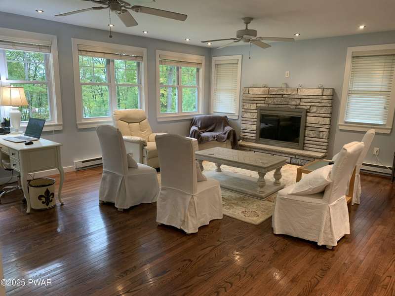 Pristine well maintained home, completely renovated. All new windows, new sheetrock and insulation, new hardwood floors, new electric, new plumbing, new tiles, etc. Main level has 2 bedrooms, new updated kitchen, living room with fireplace, laundry room, 1.5 baths full bath has a jetted tub and a sunroom. The garage which you could eat off of the floor has two bonus rooms above it. The lower level has a daylight bedroom with sliders to outdoors and also a large basement storage area. There is a carport and large outdoor decking. This is a wonderful home for a family or a private getaway. This home has a 2 minute walk to 90 acre Walker Lake and swimming beach area.
