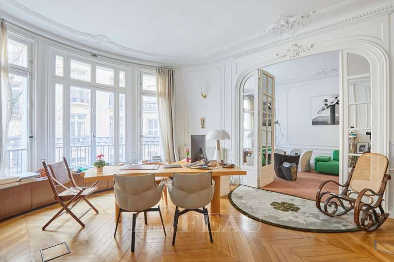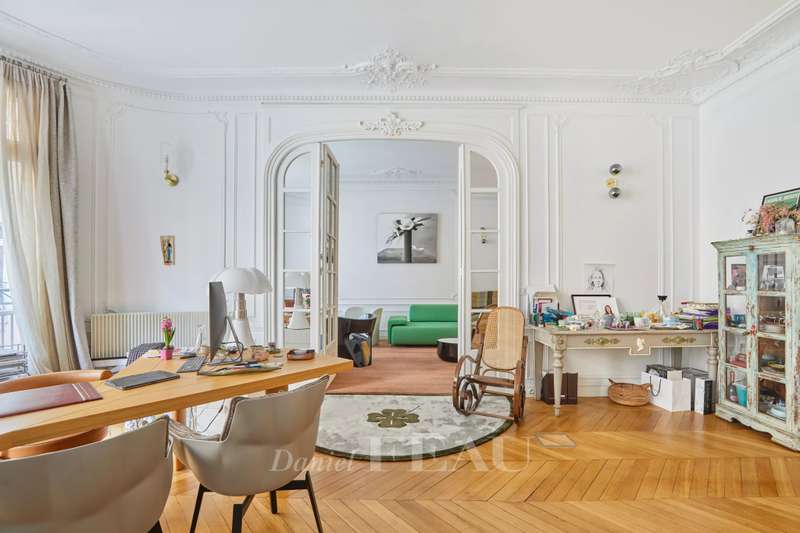 Rue Ampère. This magnificent 300 sqm apartment is on the 2nd floor of a luxurious early 20th century freestone building with exceptional common areas. Overlooking a courtyard, it includes an entrance hall, a living/reception room featuring 3.40 metre high ceilings, a drawing room, a study, a fully equipped kitchen with a pantry, a dining room, a guest wc, a master bedroom with a bathroom and wc, three further bedrooms, a study, and a shower room with a wc. With a cellar. Carnot catchment area.