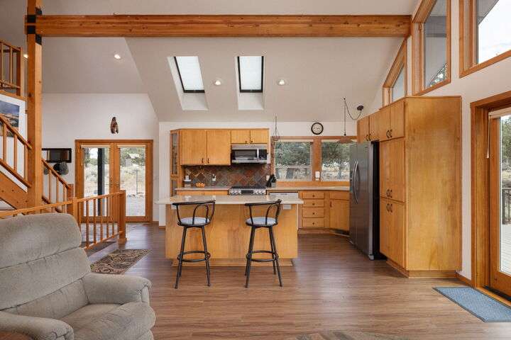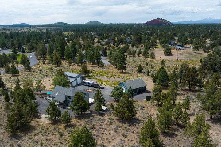 Located in the Sundance community, this 3.29 acre property offers privacy, functionality, and sweeping Cascade mountain views. The 3 bedroom, 2.5 bath home captures impressive vistas from the main living area and primary bedroom. Outside, two separate shops provide versatility: Shop One is 1,280sf, and Shop Two is 1,344sf - ideal for projects, storage, or recreational equipment. The property could easily be modified to accommodate horses. Multiple full RV hookup sites are in place, making this an excellent setup for RVs, guests, or extra storage needs. The fully fenced lot includes an electric gate with remote access. A hillside hot tub offers a quiet retreat with its own view, while community access to adjacent BLM land makes exploring the outdoors easy. With space for hobbies, toys, and outdoor living, this property blends acreage, views, and shop space in a convenient location near Bend.
