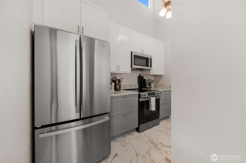 6 MONTHS OF SELLER PAID HOA DUES and *BUYER INCENTIVE 1% TEMP RATE BUY DOWN AND APPRAISAL CREDIT* Welcome to Village By The Lake- a hidden gem in a peaceful setting. This beautifully remodeled top floor unit boasts 20ft vaulted ceilings, abundant natural light, private deck, in unit laundry and wonderful updates throughout. Enjoy the stylish kitchen w/new cabinets, quartz counters & new stainless steel appliances. The open concept design features lg. living/dining areas, 2 lg. bedrooms including the primary bedroom w/large closet & private en-suite bath. Steps from private Beverly Lake, the community pool, clubhouse & sport court, amazing amenities for you to enjoy! Close to shopping/dining w/great freeway access for commuters.