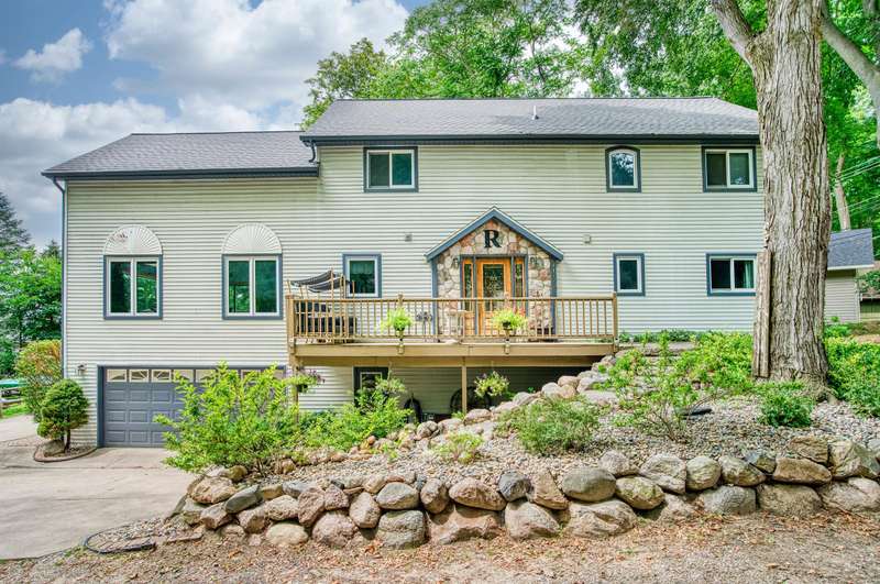 Run, don't walk, to this stunning home that perfectly combines modern luxury with serene lakeside living! Lake privileges and deeded docking on Baseline Lake - this property offers everything you need for a year-round escape. Step inside to discover an open floor plan highlighted by a grand two-story family room featuring expansive windows that flood the space with natural light. The gourmet kitchen is a chef's dream, complete with a spacious granite island, Corian countertops, premium maple cabinets, and exquisite hardwood floors that flow seamlessly into the dining area. Enjoy effortless indoor-outdoor living with a door wall that leads from the kitchen to a large deck, ideal for entertaining or relaxing while soaking in the picturesque lake views. The main floor also includes two generously sized bedrooms and a full bath, along with a large mudroom that adds convenience to your daily routine. Venture upstairs to find a luxurious primary suite featuring a massive walk-in custom closet and an updated bath designed for ultimate relaxation. Additionally, a versatile open flex room (23x30) awaits, offering the potential for extra bedrooms or baths to suit your needs. The finished walkout basement adds even more value, featuring an additional bedroom (please note it does not have an egress window) or office space and an extra family room for gatherings or quiet evenings. This home has been meticulously maintained with numerous updates, including a new roof, well pump, pressure tank water softener, a rock wall leading to the home, new decks, a renovated primary bathroom, a custom closet, and a whole-house generator. Don't miss out on this incredible opportunity to own a slice of paradise with stunning views and exceptional amenities. Schedule your showing today!