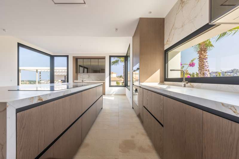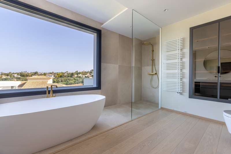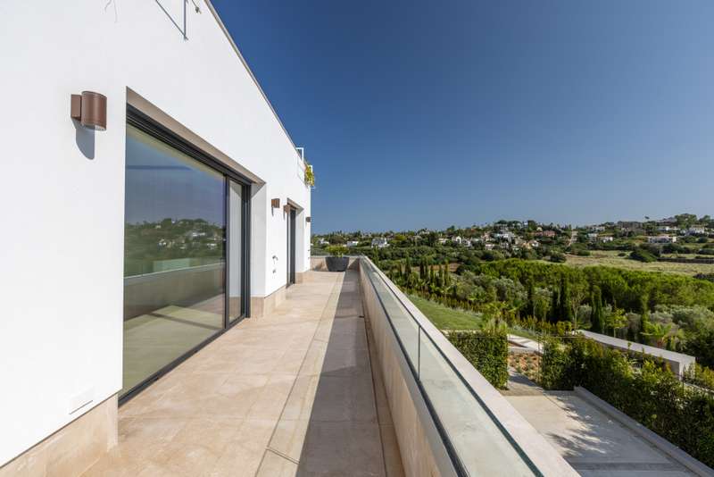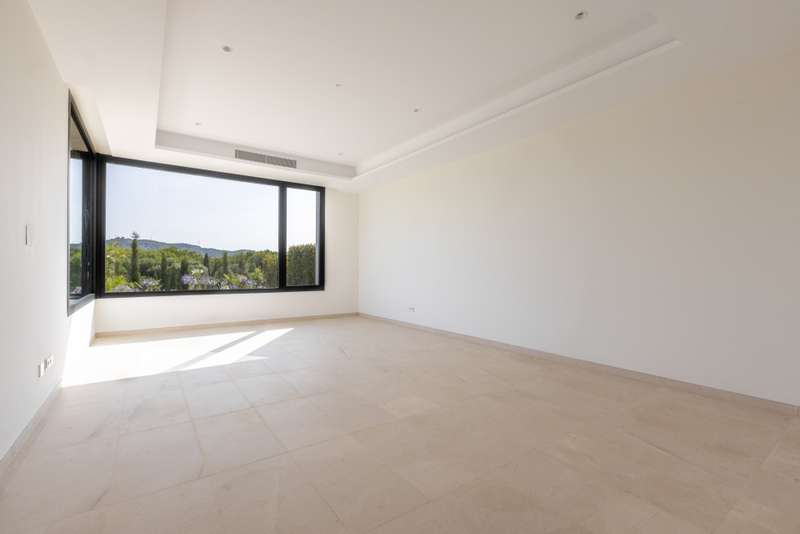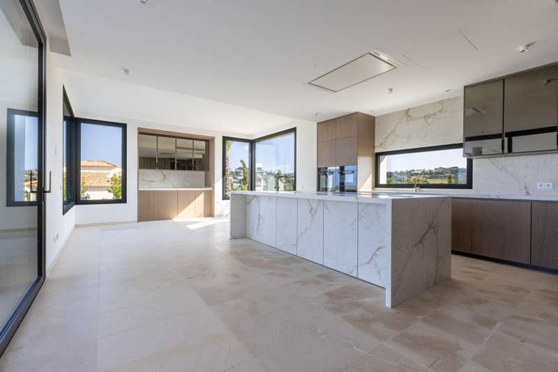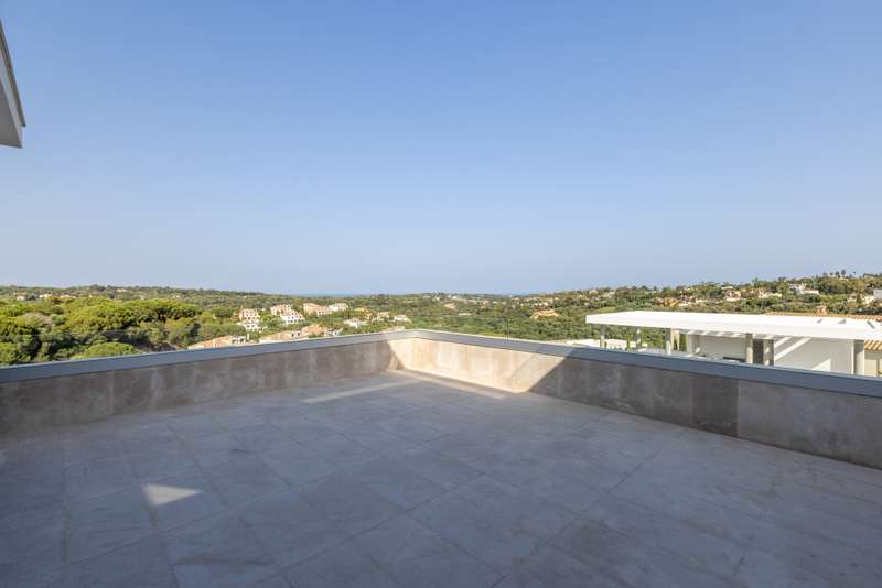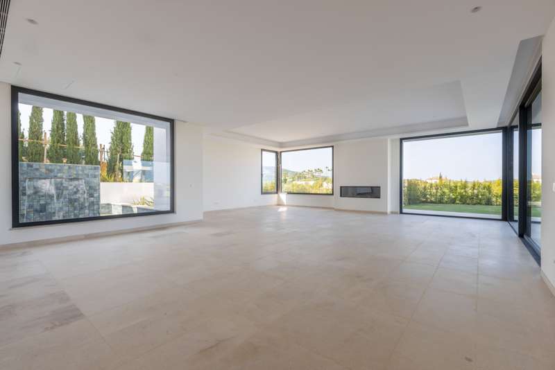 This incredible, recently built villa, located in a highly sought-after area, stands out for its spacious interiors, modern design, and spectacular panoramic views of the golf course, sea, and mountains. The villa sits on a generous 3,765 m² plot, offering a built area of 1,326 m² and an interior space of 920 m², complemented by a total of 308 m² of terraces and porches. The property features six bedrooms, seven full bathrooms, and an additional guest toilet, ensuring maximum comfort and privacy. Each room has been designed to provide brightness and spaciousness, and the property includes features such as underfloor heating throughout, air conditioning, central heating, smart home automation systems, and aerothermal technology. The layout also comprises a guest apartment, office, dressing room, main living room with fireplace, and several terraces (both covered and uncovered), including a solarium with breathtaking views. The exterior captivates with a meticulously maintained private garden, automatic irrigation system, and an impressive infinity pool that blends seamlessly with the landscape. The outdoor kitchen, fully equipped under a pergola, is ideal for enjoying barbecues and outdoor gatherings. The villa, located in a gated community with 24-hour security service, also boasts a private garage, storage room, elevator, accessible entrance for people with reduced mobility, and high-end finishes such as wooden floors and electric blinds. Thanks to its proximity to golf courses, the sea, marina, shops, schools, and all the amenities of Sotogrande, this villa represents a unique opportunity for those seeking exclusivity, privacy, and unparalleled views in one of the best residential areas of the Costa del Sol. Do not miss this opportunity and contact us for more information.
