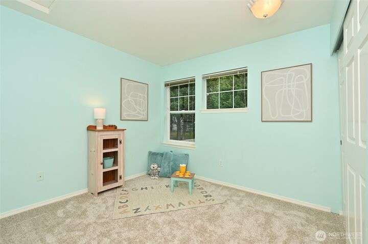 Live the Silver Lake lifestyle in this spacious end-unit condominium 1 block from the lake! This 3 bedroom, 2.5 bath home offers over 1,500 sq ft of light-filled living with vaulted ceilings, skylights, a cozy gas fireplace, and an open main floor. Enjoy new SS appliances, new flooring, fresh paint, an eat-in kitchen bar, dining area, and bonus den/office perfect for remote work. Upstairs features a roomy primary w/ensuite, a full guest bath with new vanity, plus 2 additional bedrooms. Private patio, laundry area with brand new W/D, and RARE 2-car garage with 2 extra parking spots (4 total!). Close to parks, trails, Mill Creek T.C., transit, and easy I-5 access. Move-in ready for you!