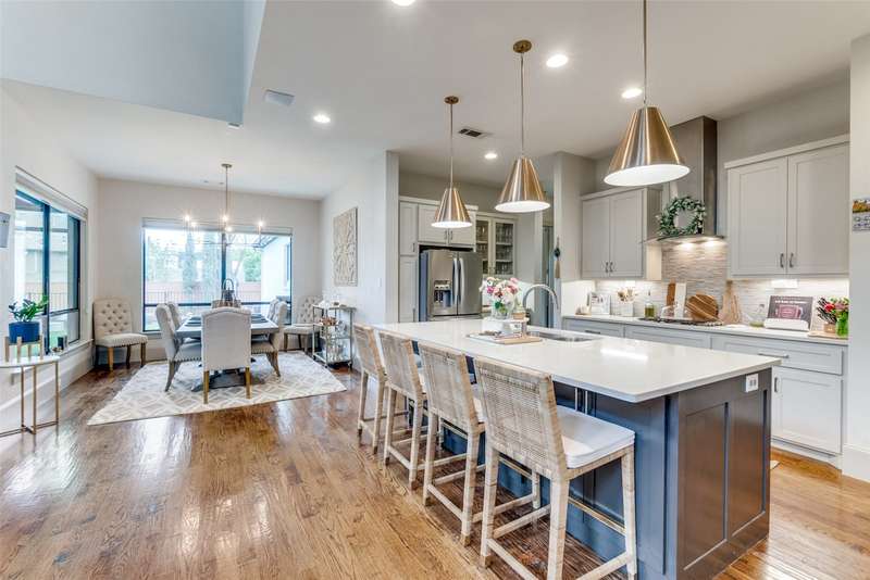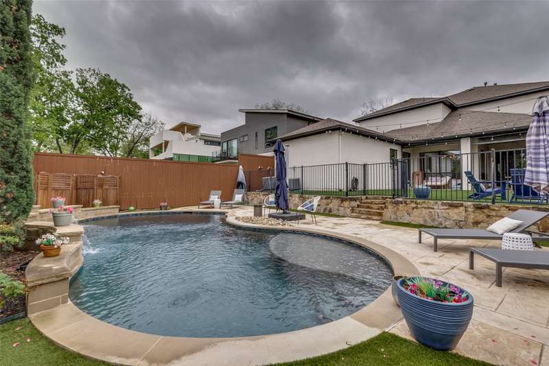 Stunning newer construction in prime location near Henderson and Lower Greenville! This beautifully designed home offers 5 bedrooms, 3.5 bathrooms, a first-floor primary suite, a second bedroom on the first floor that could also function as an office, two spacious living areas, and an open floor plan ideal for everyday living and entertaining. Enjoy a chefs kitchen featuring double ovens, a gas cooktop, walk-in pantry, bar area with wine fridge, and elegant hardwood flooring throughout. The expansive main living room boasts soaring two-story ceilings and abundant natural light, creating a warm and inviting space. The first-floor primary suite includes tall ceilings, custom wall paneling, a luxurious ensuite bath with jetted tub, separate shower, and access to an oversized walk-in closet. Upstairs, you'll find three generously sized secondary bedrooms and a second living areaperfect for families, guests, or roommates. Step outside to a covered patio with fireplace, a large turfed backyard, and a gated private poolideal for entertaining year-round. Additional highlights include a tankless water heater, oversized garage, designer finishes throughout, and unbeatable walkability to shops, dining, and nightlife. Located in a highly sought-after area with convenient access to new development and city amenities. This home truly has it allschedule your showing today! For additional photos, walkthrough video, or floor plan, please inquire.