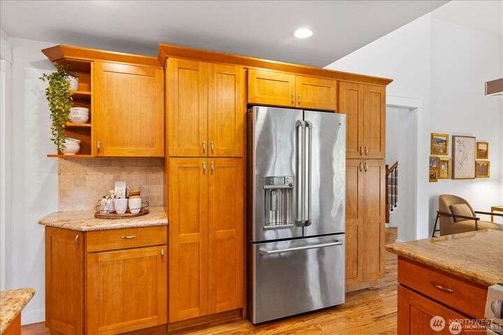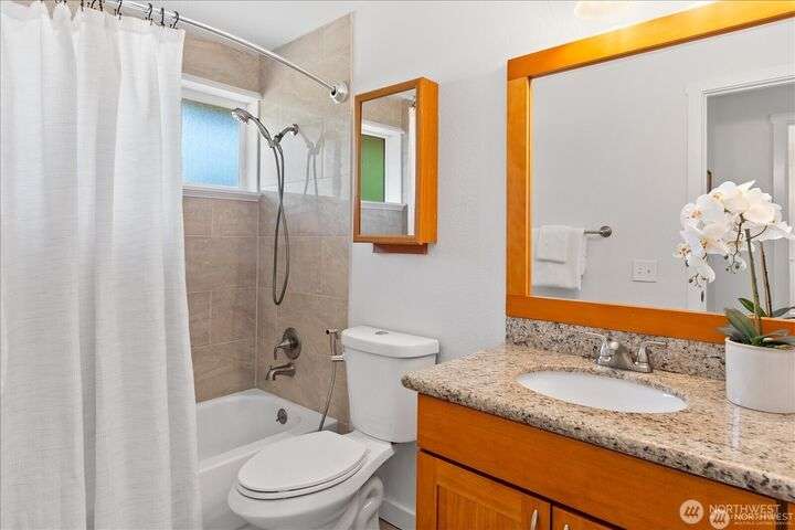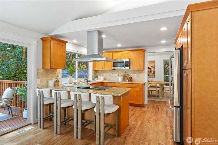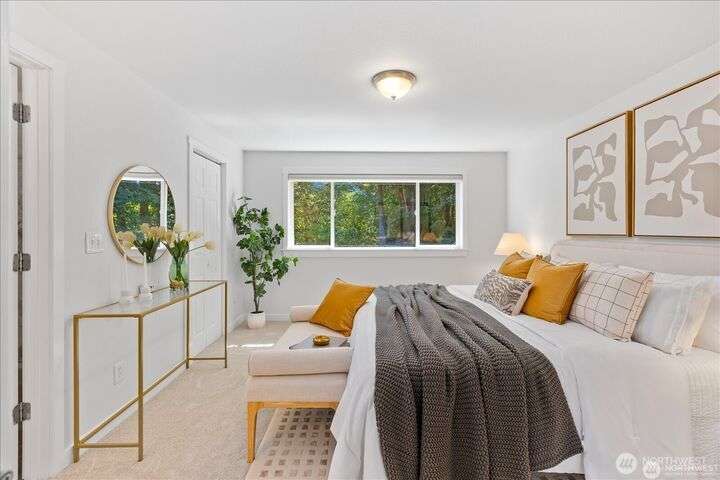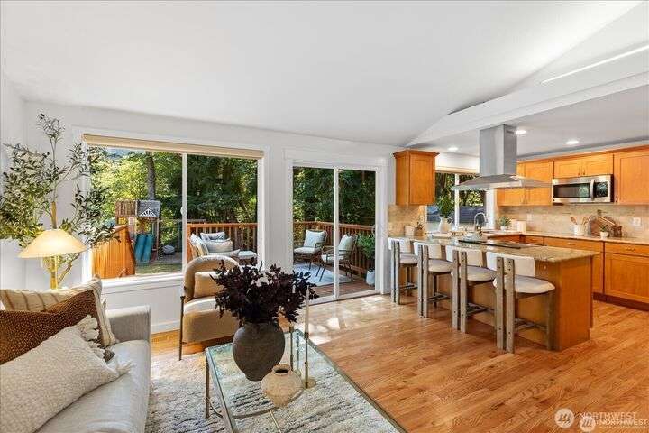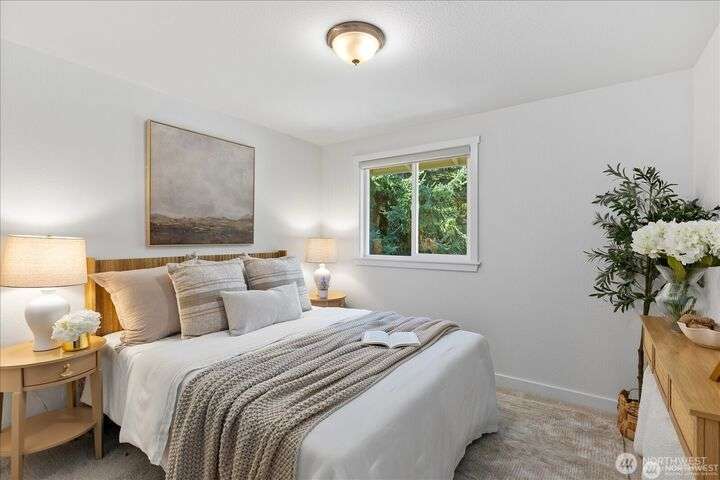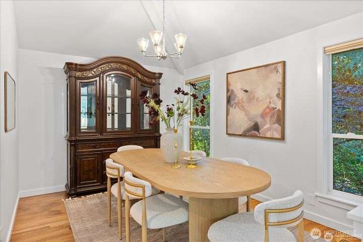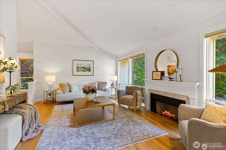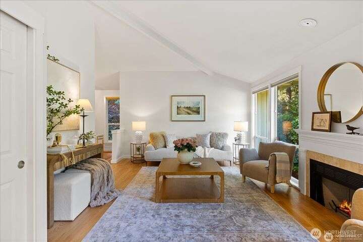 Private & peaceful, this tranquil Innis Arden residence is situated up a secluded driveway nestled amidst lush greenery. Offering a serene, wooded setting, open floor plan, soaring entry ceilings, level fenced back yard & exclusive beach access right outside your gate! Recent upgrades enhance its appeal, w/ a thoughtful remodel in 2014, a powder room addition in 2021 & recently replaced appliances. Beautiful hardwood floors, new carpet & paint, elegant primary suite & wifi enabled sprinkler systems. Discover a retreat tailored for every season. Enjoy quiet evenings at home or take a short stroll to the beach or Boeing Creek park. Friendly neighborhood with clubhouse, pool, trails, courts & community park. Come fall in love with your future!