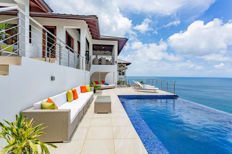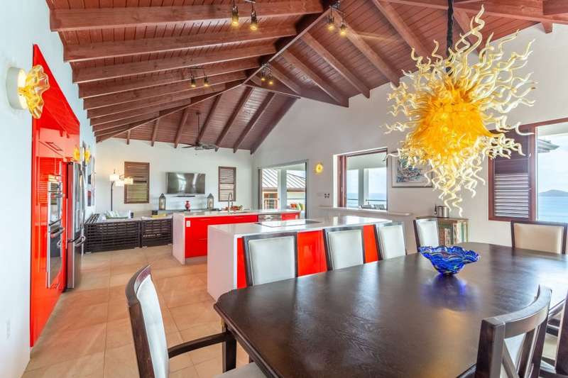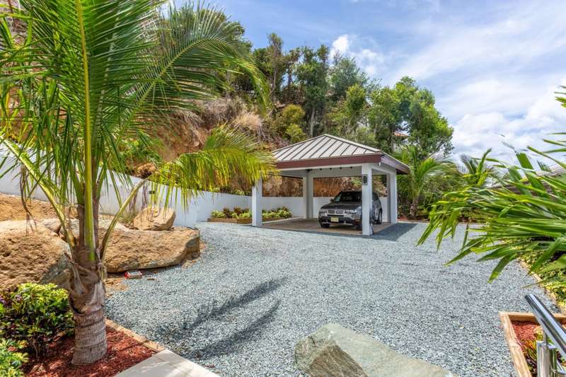 Located in exclusive Parker's Estate above stunning Trunk Bay - this is the Caribbean dream! Aptly named Villa Kai ('Sea' in Hawaiian), is situated on a 1 acre plot above the the beach. Designed purposefully with vacation rentals in mind, the villa can comfortably accommodate 10 guests in its 5 ensuite bedrooms. The bedrooms are uniquely decorated, each with their own acid colour palate for decor adding some pop to the white walls and floors. The ensuite bathrooms have picture windows, which have to be seen to be believed, offering sensation views of the sea and neighbouring islands. Indoor and outdoor living spaces blend seamlessly together offering comfortable sit down dining for 10. Industrial style kitchen is fully equipped, just waiting for your private chef to create masterful dining experiences. The living room has a 72" television and sectional sofas for lounging around after a day in the sun, with doors opening directly onto a covered deck. Deck has a BBQ set up and additional dining area. The infinity pool has unrestricted views and plenty of space for recliners. Meanwhile, the beach can be accessed via a private walkway that takes you down 200 steps to the sea. Such close proximity to a beach is a rare find in the BVI and particularly in Tortola. Property also benefits from a covered car porch, plenty of parking space, ac throughout and a generator. Villa Kai is a fabulous short term rental property or vacation home. Modern, stylish and practical with a truly enviable location.