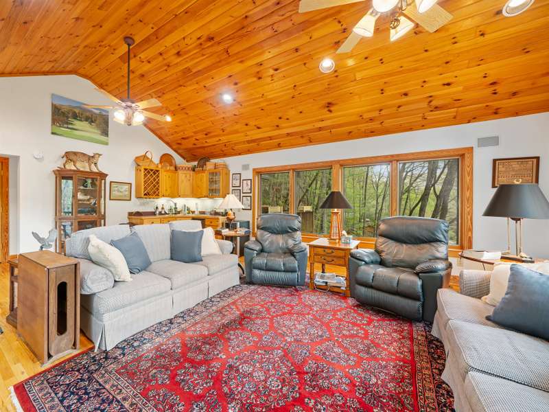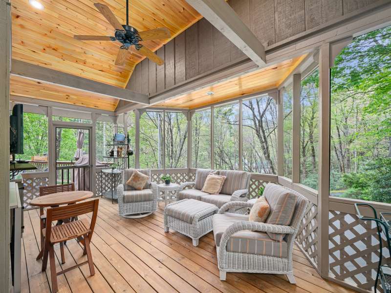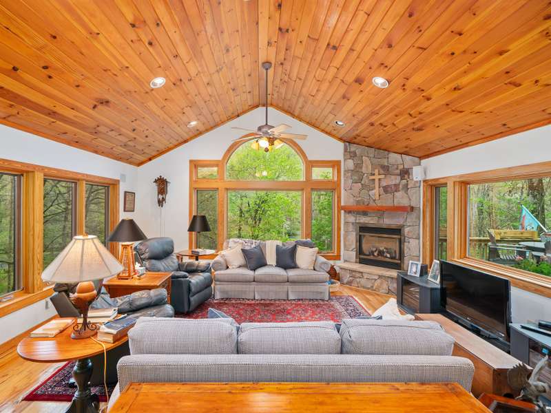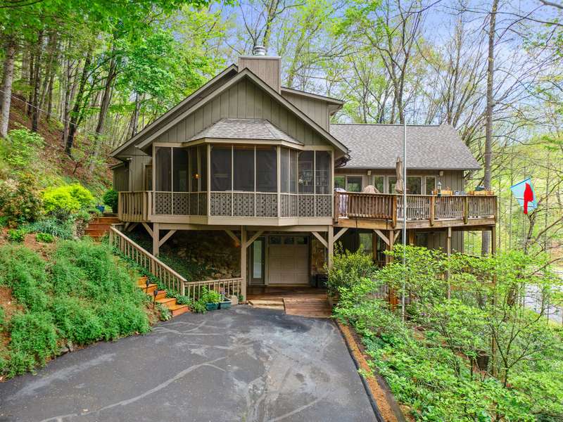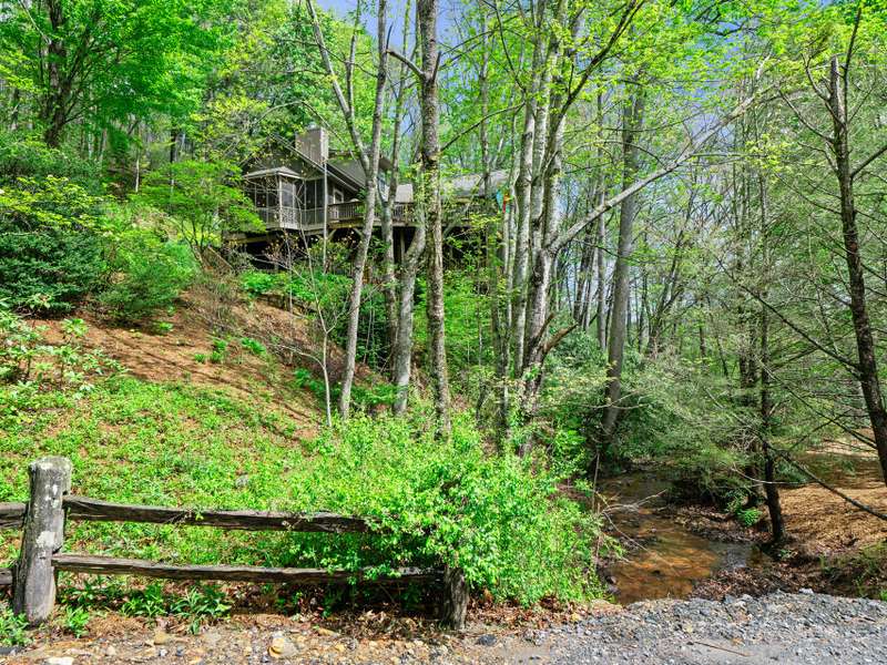 Beautifully renovated home on a double lot positioned strategically on a hill above a babbling brook creating a peaceful home retreat. Property has perfect wooded surroundings and carefully planned landscaping woven along the driveway and cleared paths which complements the home in order to keep it natural and to eliminate any need to mow. Several outdoor spaces surround the home including a exterior hot tub with privacy fencing, screened porch with built in tv screen and open deck for grilling and covered decking outside of the basement level recreation room. The home has had many renovation projects including an addition added of large great room overlooking creekside, totally renovated kitchen and new roof and other recent renovation to basement area. Current owner has purchased the lot to the rear of the property in order to secure privacy and will be including that with the sale of the home. This lot has plenty of room to build additional structures or a guest house.
