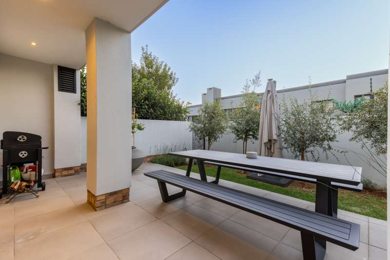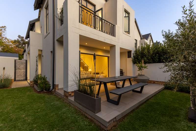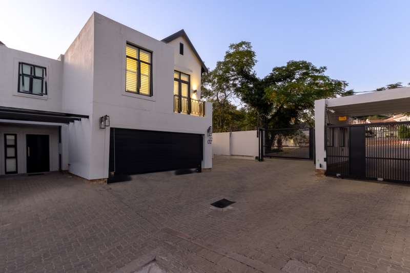 An Exceptional Residence of Style, Sophistication, and Seamless Convenience in Bryanston Presenting an immaculate 3-bedroom, 2-bathroom duplex, exquisitely positioned on the prestigious Bryanston Drive. Tailored for discerning professionals, this refined residence offers unrivalled proximity to Sandton’s commercial epicentre and immediate access to major arterial routes—ensuring a lifestyle of effortless connectivity and ease. Upon entry, be welcomed into a spacious, open-concept living environment where the kitchen, dining, and lounge areas harmoniously converge. This sophisticated space extends onto an enclosed patio via foldable glass doors, creating a seamless transition to a manicured, Mediterranean-style private garden. Perfectly suited for both elegant entertaining and serene relaxation, this versatile indoor-outdoor haven epitomises contemporary living. The upper level reveals three generously proportioned bedrooms, each thoughtfully designed with modern built-in cabinetry. The master suite is a tranquil retreat, complete with a sumptuous en-suite bathroom featuring both a soaking tub and a walk-in shower. A second full bathroom, equally well-appointed, services the additional bedrooms with refined functionality. Features Include: • Solar power system with backup battery for uninterrupted energy supply • High-speed Wi-Fi mesh network providing seamless coverage throughout • Air-conditioning in the master suite for year-round comfort • Custom American shutters offering both elegance and privacy • Additional secure storage within the garage • Access-controlled complex with robust security infrastructure Whether you are a high-performing executive seeking a sophisticated urban sanctuary or a dynamic family in pursuit of a secure and centrally located home, this exceptional property offers an uncompromising blend of security, sustainability, and modern elegance—just moments from Sandton’s corporate heart.