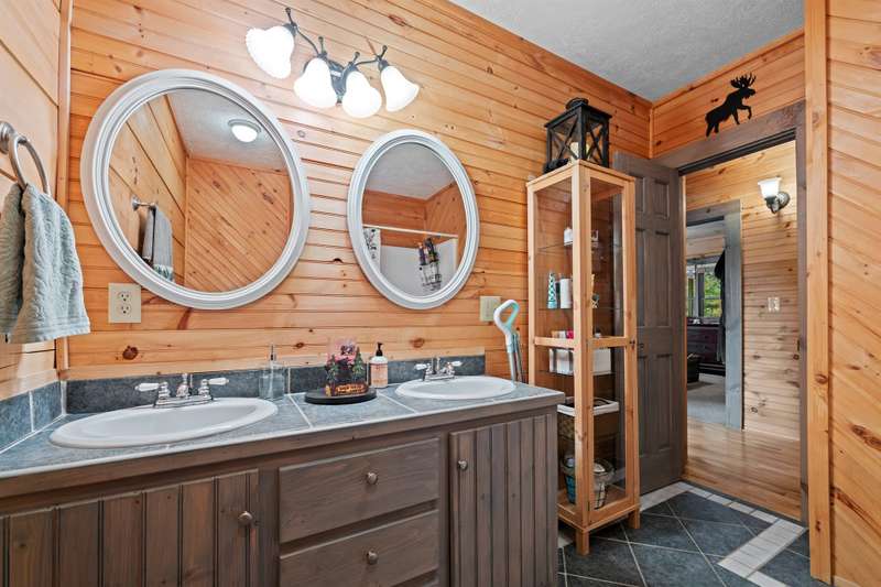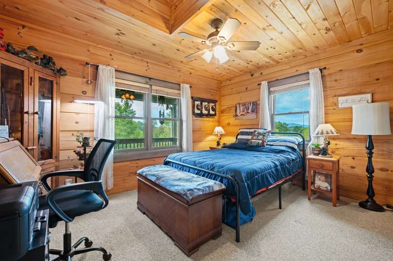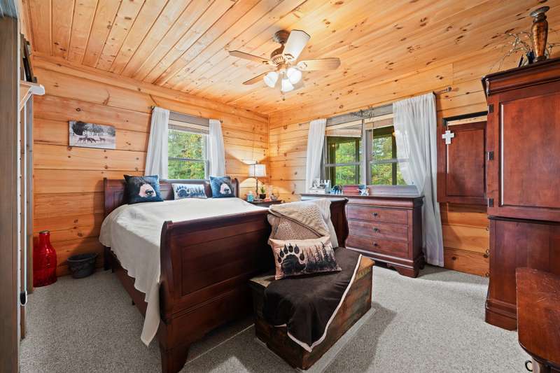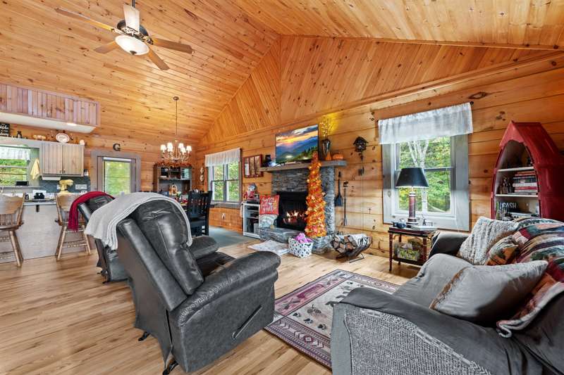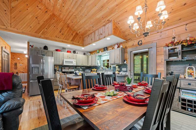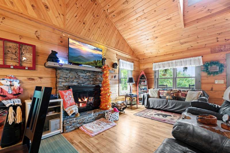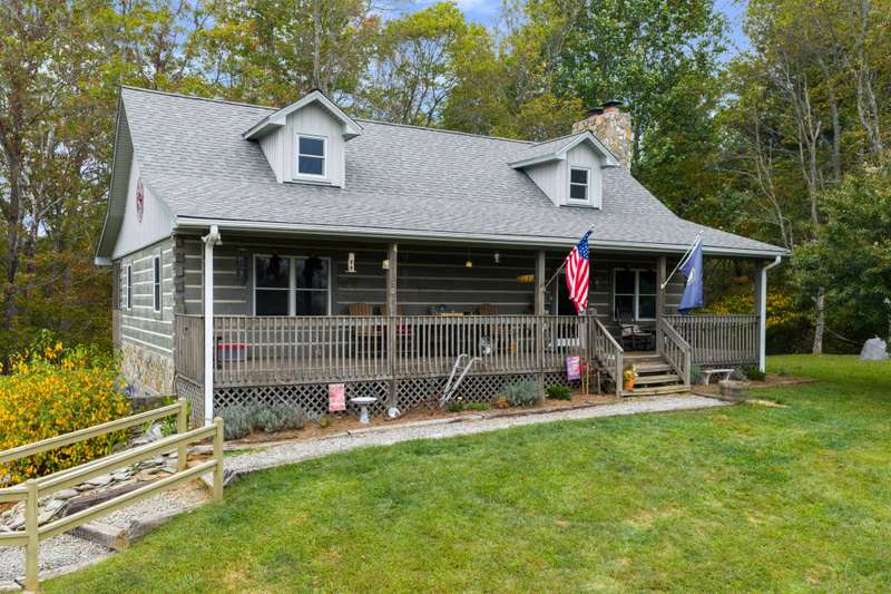 This charming log cabin, situated on 0.98 acres, is nestled on the North Carolina and Virginia border. It features a covered rocking chair front porch, perfect for enjoying the beautiful, changing mountain seasons and pastoral views. Inside, you'll find an open-concept floor plan with wood flooring and tongue-and-groove accents on most walls and ceilings. A beautiful, stacked-stone, Propane fireplace enhances the log cabin ambiance and provides warmth. This property offers over 1,700 square feet of living space, with a main-floor laundry, two bedrooms, and two full bathrooms, including an en-suite primary bath. The lower level provides a spacious den with a wood-burning fireplace and a propane wall unit heater. There is also an oversized one-car basement garage that can accommodate both a vehicle and an ATV. A screened-in porch spans the back of the house, offering wooded views and opportunities to observe wildlife. It's an ideal setting for gathering with friends and family or relaxing to the sounds of nature. Approximately 20 minutes to Jefferson. Both short-term and long-term rentals are permitted. **NEW** New American Standard heat pump installed in 2020, whole house generator 10/24, New kitchen refrigerator 6/25, 2 new commodes, new primary walk in shower, new tankless water heater, and new gutter leaf guards.** Please note that this property is owner-occupied, so we kindly request a minimum of one hour's notice for all appointments.