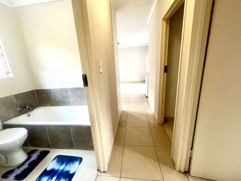 Welcome home; to a child-friendly secure estate , in the perfect location! This beautiful home is located in a quite suburb in an estate, and it's suitable for a small family. It boasts an open plan lounge with an open plan kitchen. The kitchen cupboards are in good condition and are spacious. There are 3 bedrooms all fitted with built-in cupboards. There's a bathroom with a bath tub and a toilet. At the back of the house is the small garden where you can chill outdoors. There's 1 open parking and the visitors parking. The complex is close to schools, public transport (and Gautrain bus station), shopping centres (including Mall of Africa), and is 5minutes away from the N1 highway. The property is in a very good condition! Book a viewing appointment now!