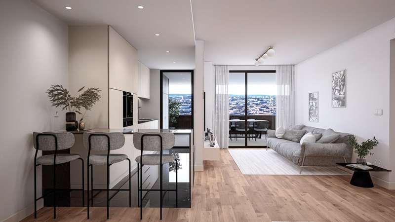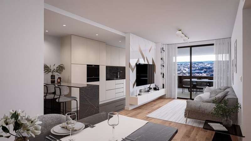 Elegant and refined two-bedroom apartment with generous balcony and private pool, for sale in Vila Nova de Gaia, Portugal. Set in the Douro Nobilis - River View II development, this apartment has high quality finishes that add elements of sophistication and well-being, such as aluminum frames and double glazing with sun protectionand well-being, acoustic reduction and thermally insulated blinds, which guarantee maximum privacy. The multi-layer oak floors, lacquered carpentry and A energy rating provide a pleasant environment, ensuring maximum comfort. The kitchen is equipped with Smeg appliances and the bathrooms with Geberit suspended sanitary ware and Grohe taps. Several of the apartments also have a private swimming pool and all have parking. The location of the Douro Nobilis - River View II development is attractive due to several aspects, including its proximity to the future Rubi metro line and the wide variety of restaurants, stores and entertainment, offering a unique experience for its residents and visitors. CHARACTERISTICS:Area: 88 m2 | 948 sq ft Bedrooms: 2 Bathrooms: 3 Garage: 1 Energy efficiency: A FEATURES: One suite; 46.01 m2 balcony; Swimming pool.