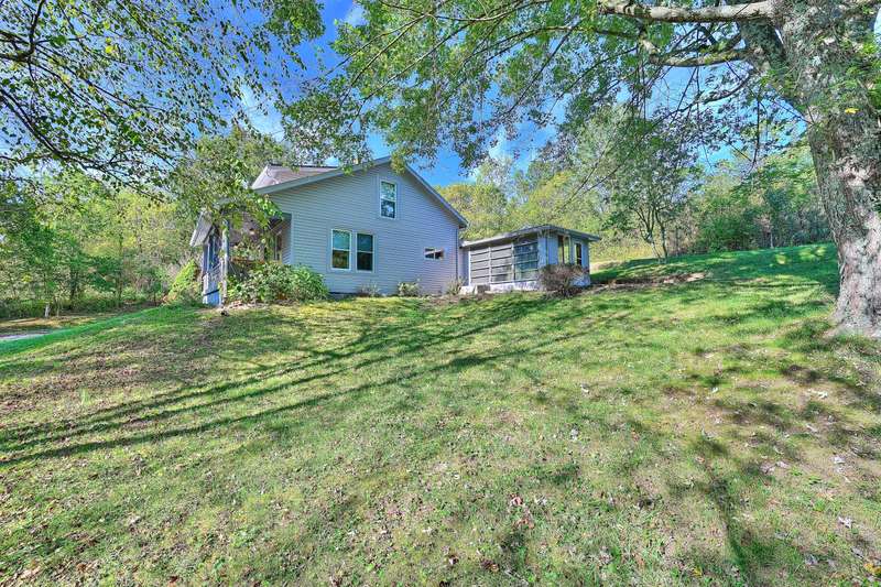 Welcome home to a storybook setting on nearly 5 rolling acres private, but still close to town. For generations, this property has offered a peaceful escape from the hustle and bustle, and now it's your turn to create its next chapter. This inviting 3-bedroom home features a light-filled sunroom that connects indoor living with the beautiful outdoors. The spacious layout includes a study, offering the perfect space for a home office or library. Beyond the main home, you'll find an oversized detached garage w/possible 2nd living space above begging to be finished and a 30 x 36 metal barn, providing ample storage or a workspace. This is a property where character and convenience coexist beautifully!