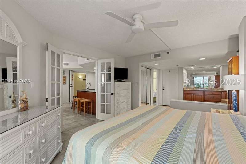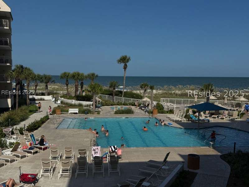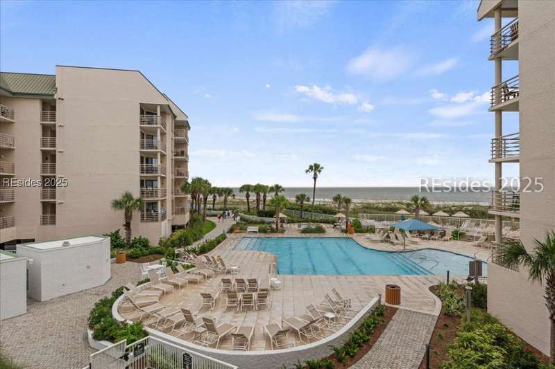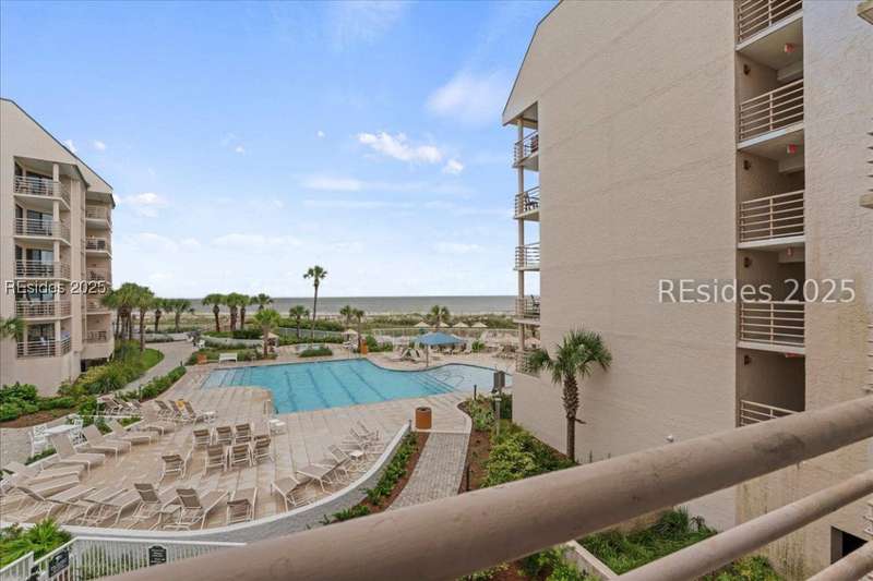 One of the best views in all of Villamare. Look across the main pool to huge views of the Atlantic and the beautiful dunes. Upgraded unit with granite kitchen and baths. New separate tile shower in the primary bath. Tile floors throughout. 2 Balconies to enjoy the view of the ocean and listen to the waves. Tons of natural light. Newer HVAC and hot water heater. Villamare has two new outdoor pools (one adults only) plus an indoor pool which is part of the fitness center. Patio area with grills and a firepit. Villamare has everything you want in a resort complex plus all that Palmetto Dunes has to offer golf, tennis, pickleball, restaurants, bike and kayak rental and the General Store. Do not miss this once in a lifetime view unit.