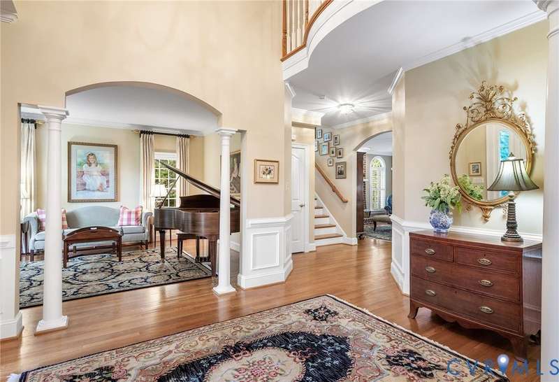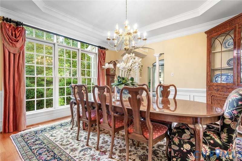 STUNNING FRENCH PROVINCIAL HOME CUSTOM BUILT BY RICH NAPIER, ONE OF RICHMOND'S MOST RESPECTED BUILDERS. Nestled amid lovely landscaping on a private cul-de-sac lot on one of Salisbury's premier streets, this home offers three levels of space with numerous options for comfortable daily living and gracious entertaining. Handsome millwork, gleaming hardwood floors and oversized windows enhance the quality construction to please the most discerning buyer. A welcoming two story foyer opens to formal living and dining rooms through arched doorways. The family room with masonry fireplace and built-ins opens to the large kitchen and morning room and adjoining screened porch with stone fireplace. A spacious owners' retreat with gas fireplace, sitting area, two walk-in closets and spa bath is located on the second floor along with four additional bedrooms, two full baths and utility room. The third level features a wonderful rec room with wet bar and space for a home theatre and game room. Grand Manor roof, 3 Zone HVAC system, 3 car garage, paved driveway, irrigation system and aggregate patio. Exterior painted and new oversized gutters with guards installed in 2025. WELCOME HOME!
