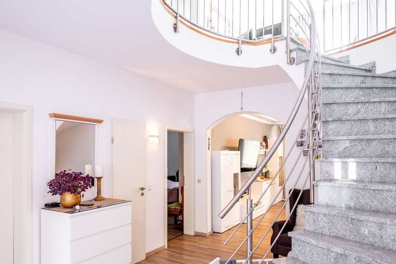 This spacious detached house offers you living comfort on a living space of approx. 194 m² and impresses with its well thought-out room layout and high-quality furnishings that meet the needs of a family. The house has a total of six rooms, including five comfortable bedrooms, which can be used flexibly for different needs. The room layout is spacious and functional to encourage both private retreats and communal living. Two modern bathrooms offer plenty of space for the whole family, A key highlight of this home is the underfloor heating, which provides cozy warmth in all rooms and contributes to a pleasant living atmosphere. The floor coverings and materials have been carefully selected and harmonize perfectly with the contemporary style of the furnishings. The spacious living area is flooded with light and offers direct access to the outdoor area. This invites you to spend relaxing hours outdoors or enjoy garden activities. With plenty of space for play and leisure, the garden is ideal for families with children or gardening enthusiasts. The detached house is located in a quiet residential area with an excellent infrastructure. Schools, shopping facilities and public transport are all within easy reach, making it easy to meet daily needs. The location also offers good connections to larger cities, making it an attractive option for commuters. This property combines modern living comfort with functional design and thus offers the ideal basis for individual living and well-being. Discover the possibilities that this detached house has to offer and let yourself be convinced by the quality and feel-good atmosphere that this home has to offer. For further information or to arrange a viewing appointment, please do not hesitate to contact us.